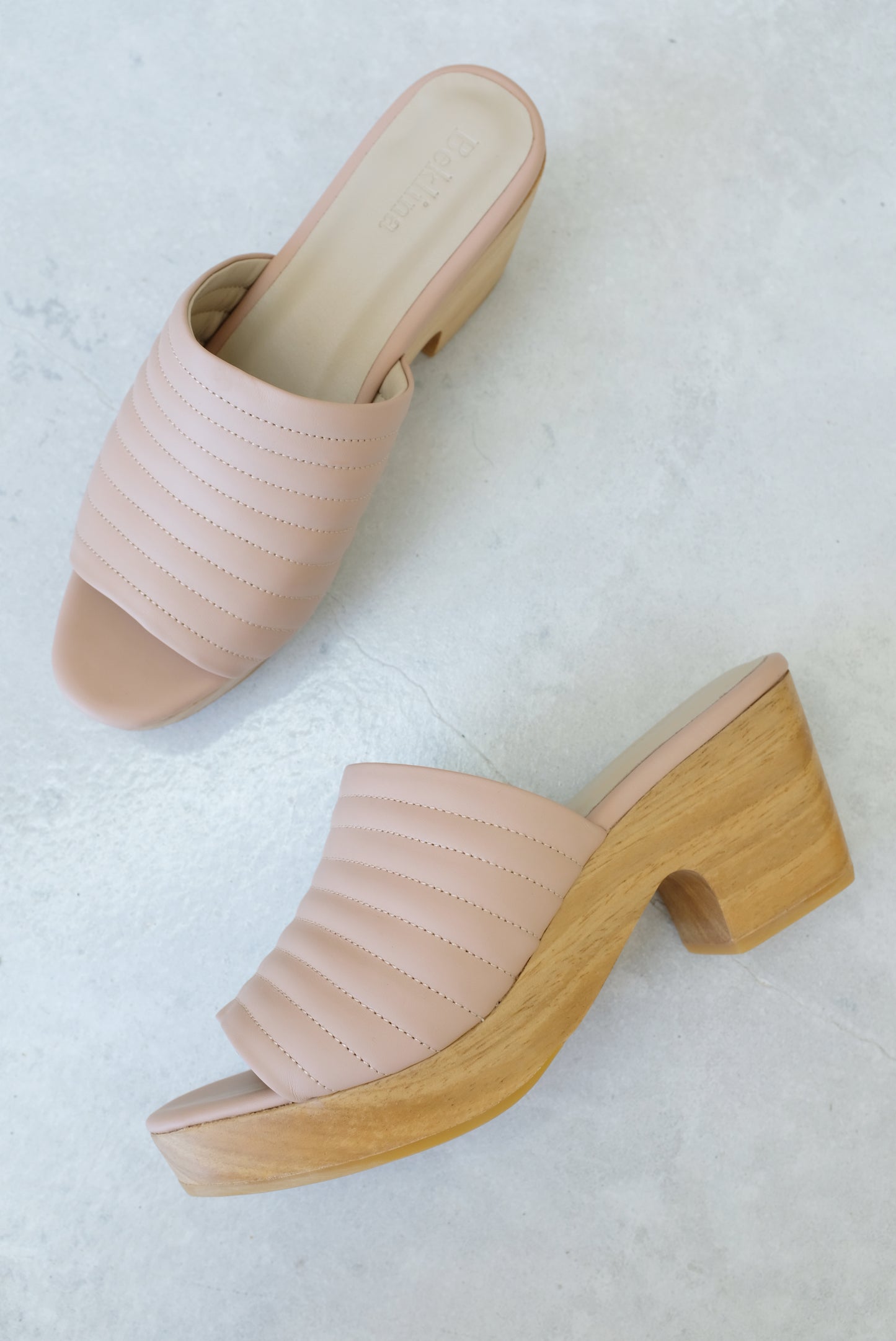 Hand carved wooden platform heel, 100% Italian leather uppers and leather lined. 2 1/2" heel. Ultra comfortable, all-day-wearable, wood wedge clogs! Free of staples.