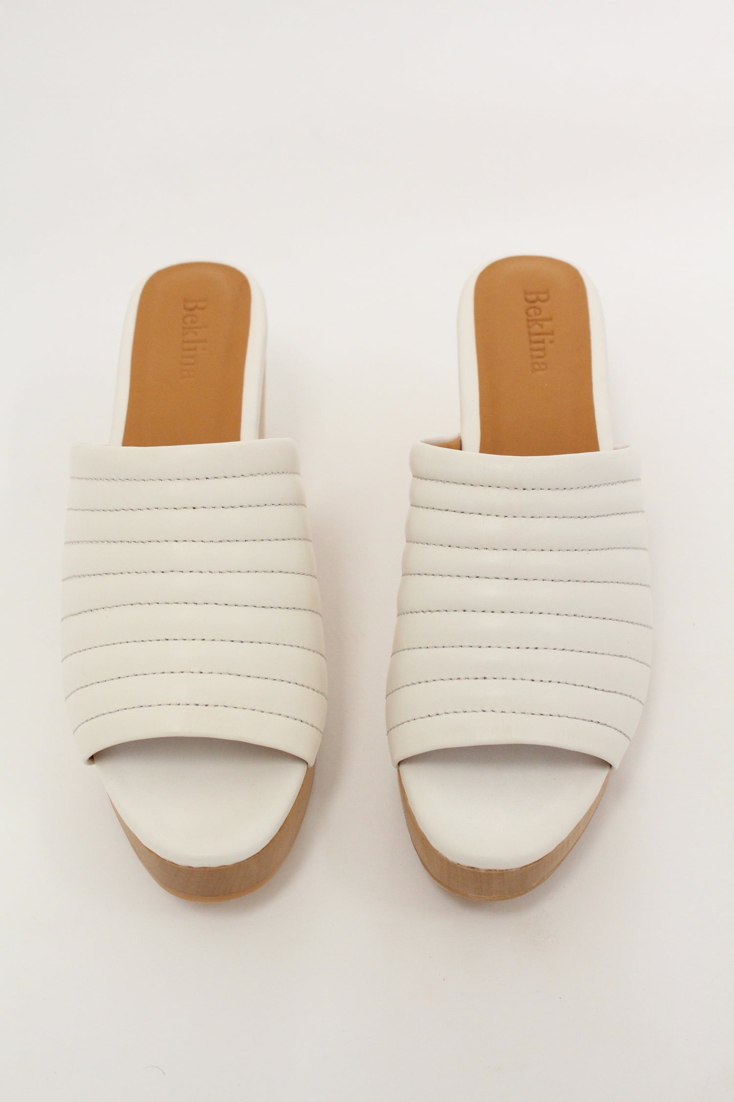 Hand carved wooden platform heel, 100% Italian leather uppers and leather lined. 2 1/2" heel. Ultra comfortable, all-day-wearable, wood wedge clogs! Free of staples.