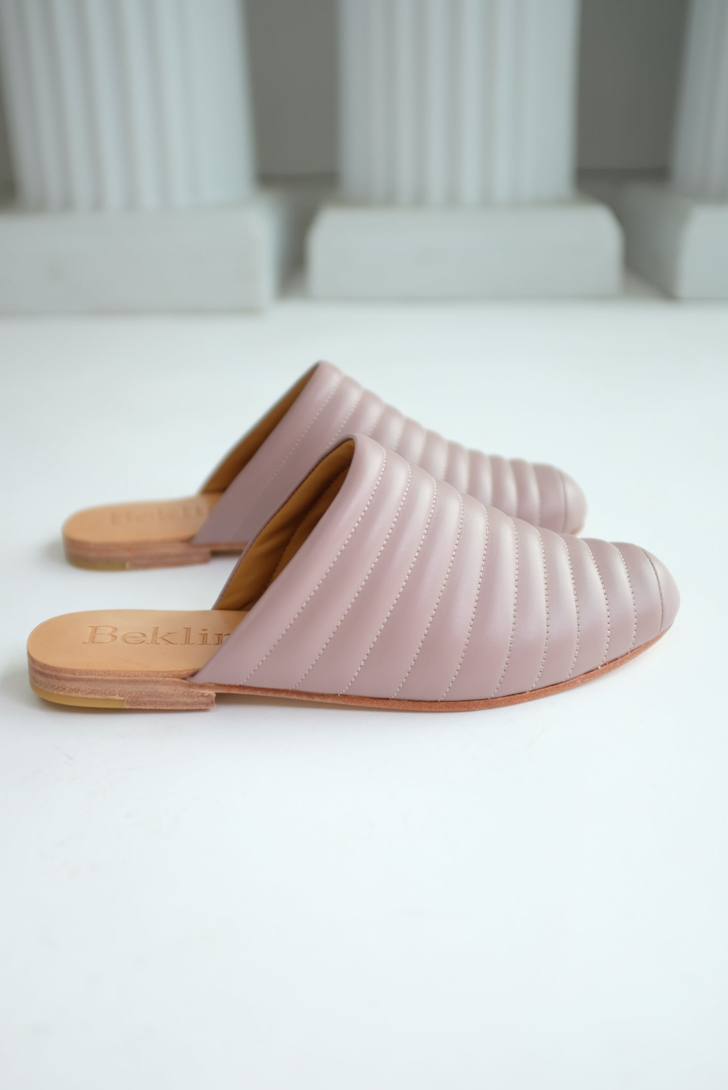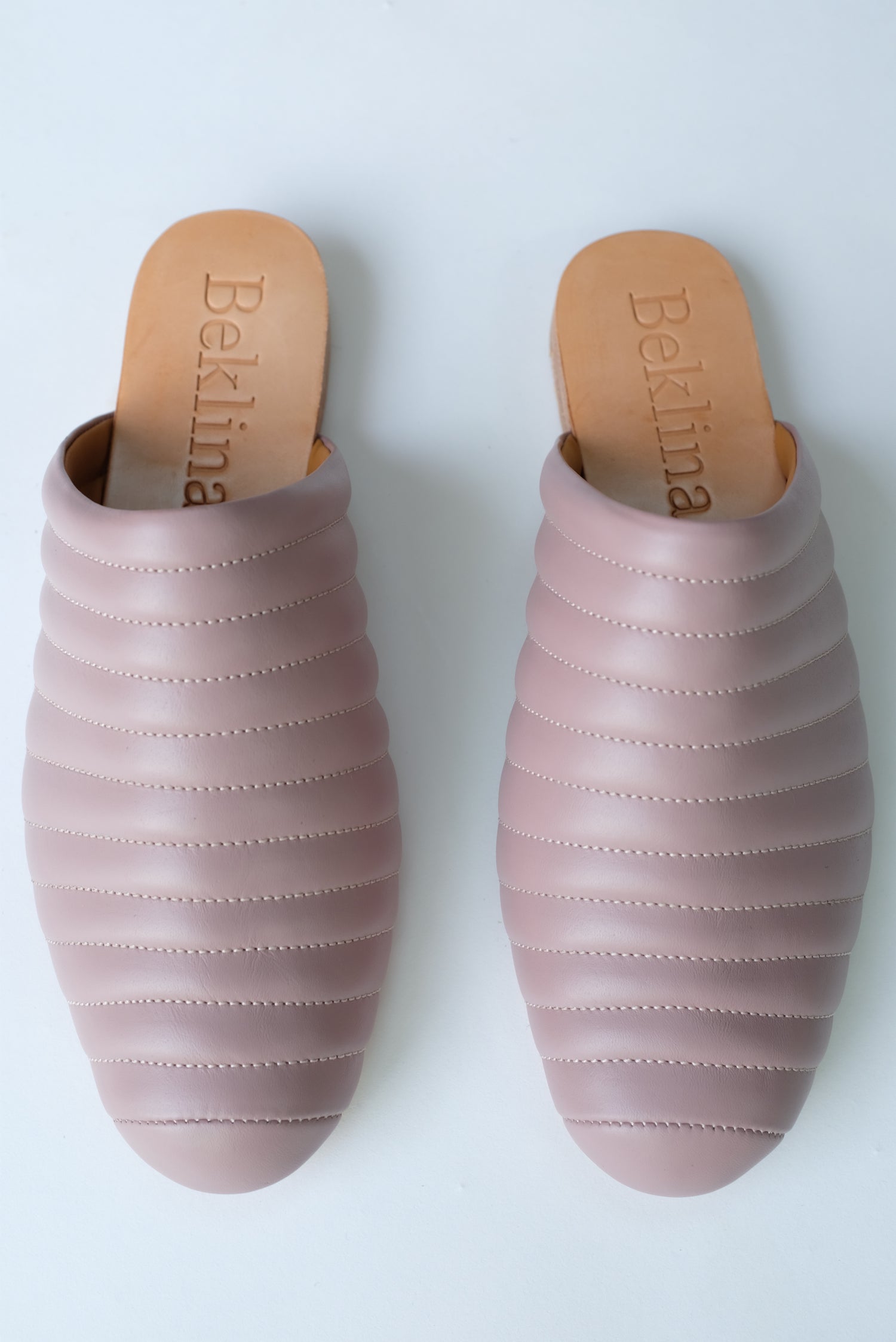 Ultra comfortable, easy all-day-wearable flat slides. Luxurious soft ribbed leather. Running true to size. 100% leather and leather lined.