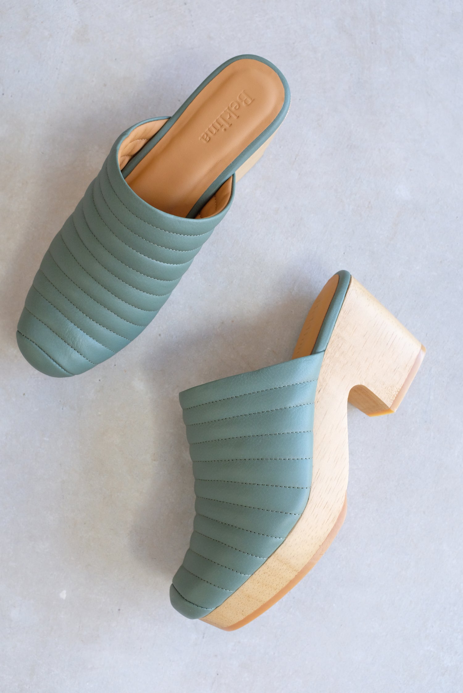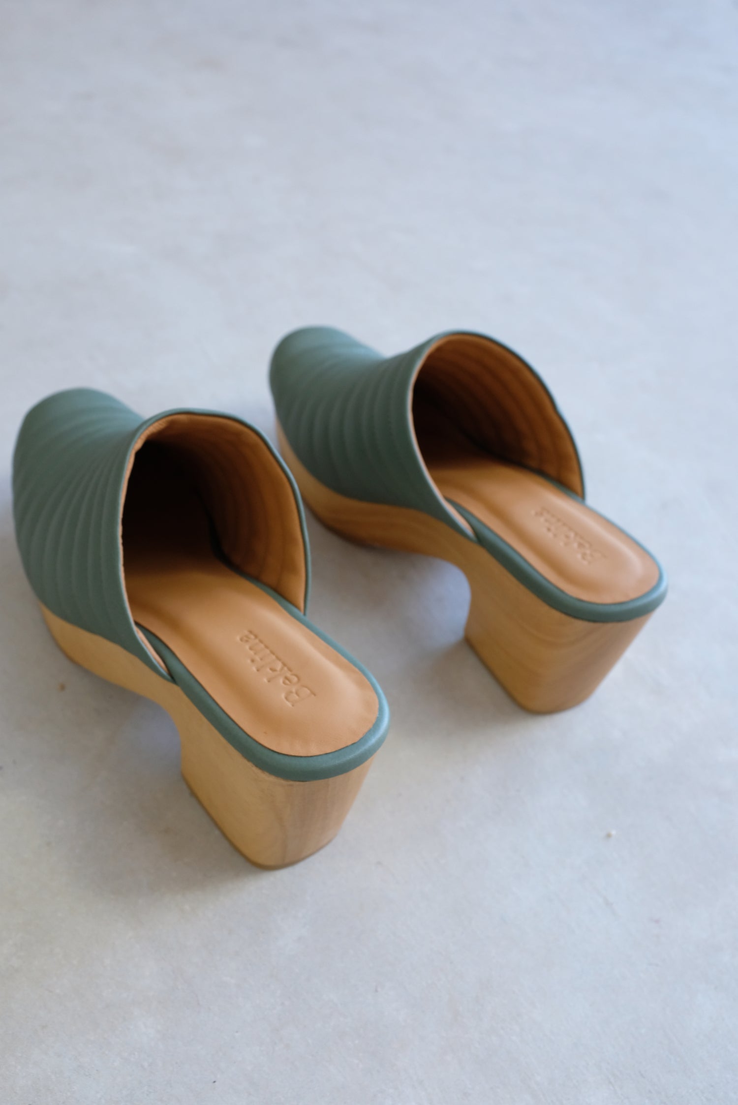 Hand carved wooden platform heel, 100% Italian leather uppers and leather lined. 2 1/2" heel. Ultra comfortable, all-day-wearable, wood wedge clogs! Free of staples. Running true to size. If between sizes we suggest going up.