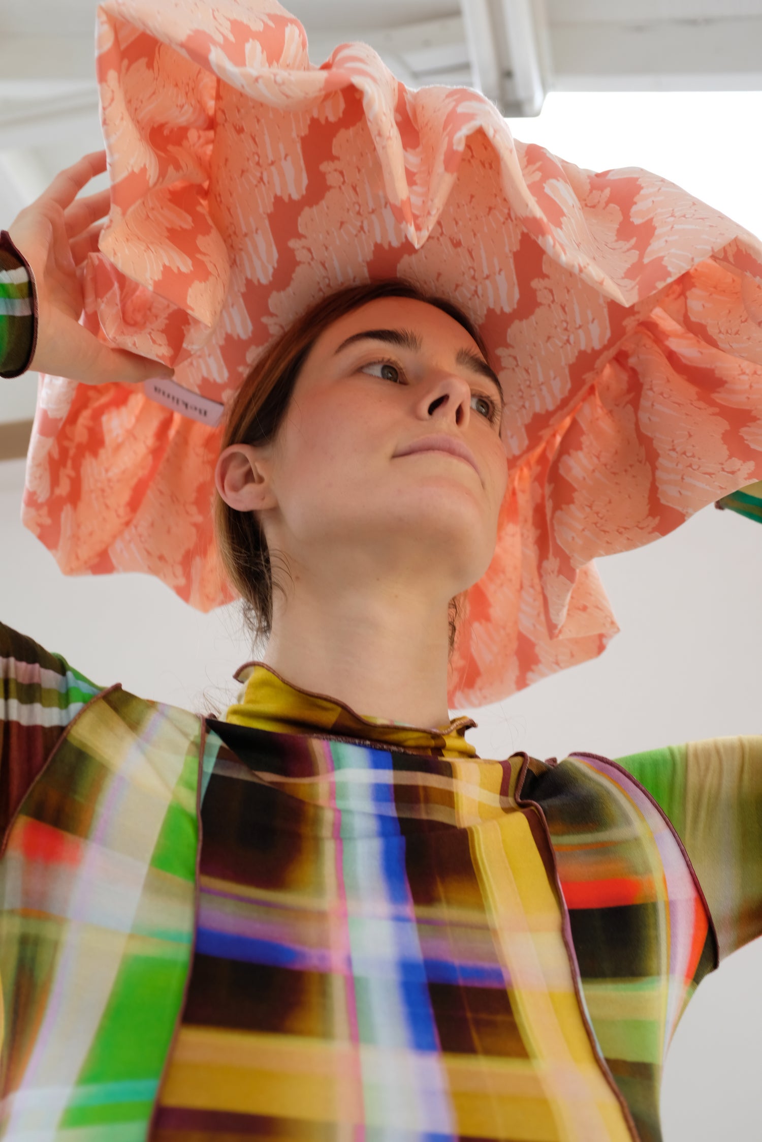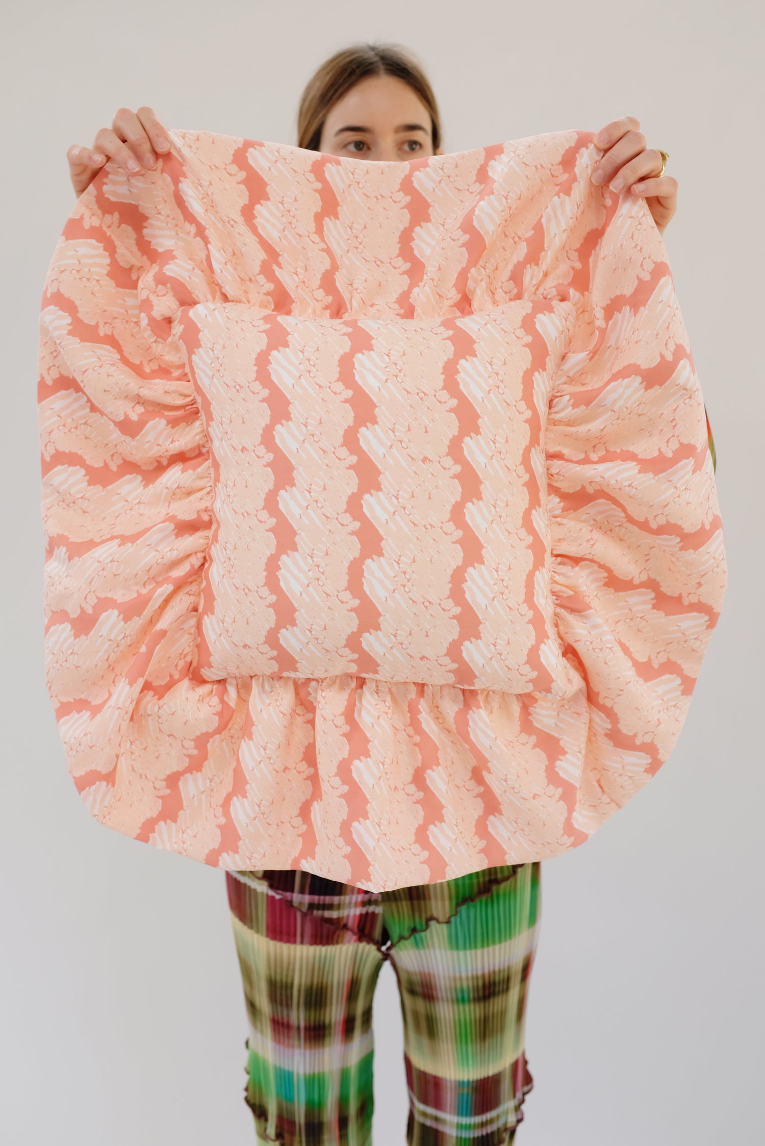 Beklina Ruffle Pillow French Ribbon Flamingo Glow