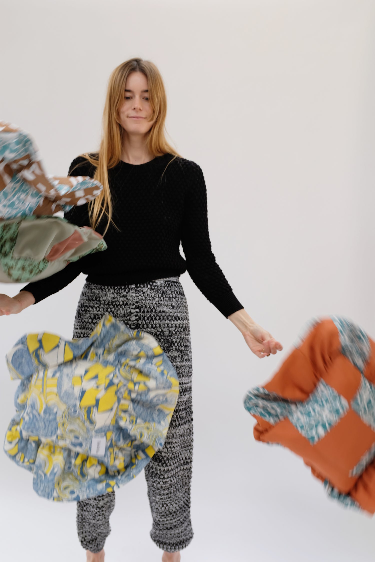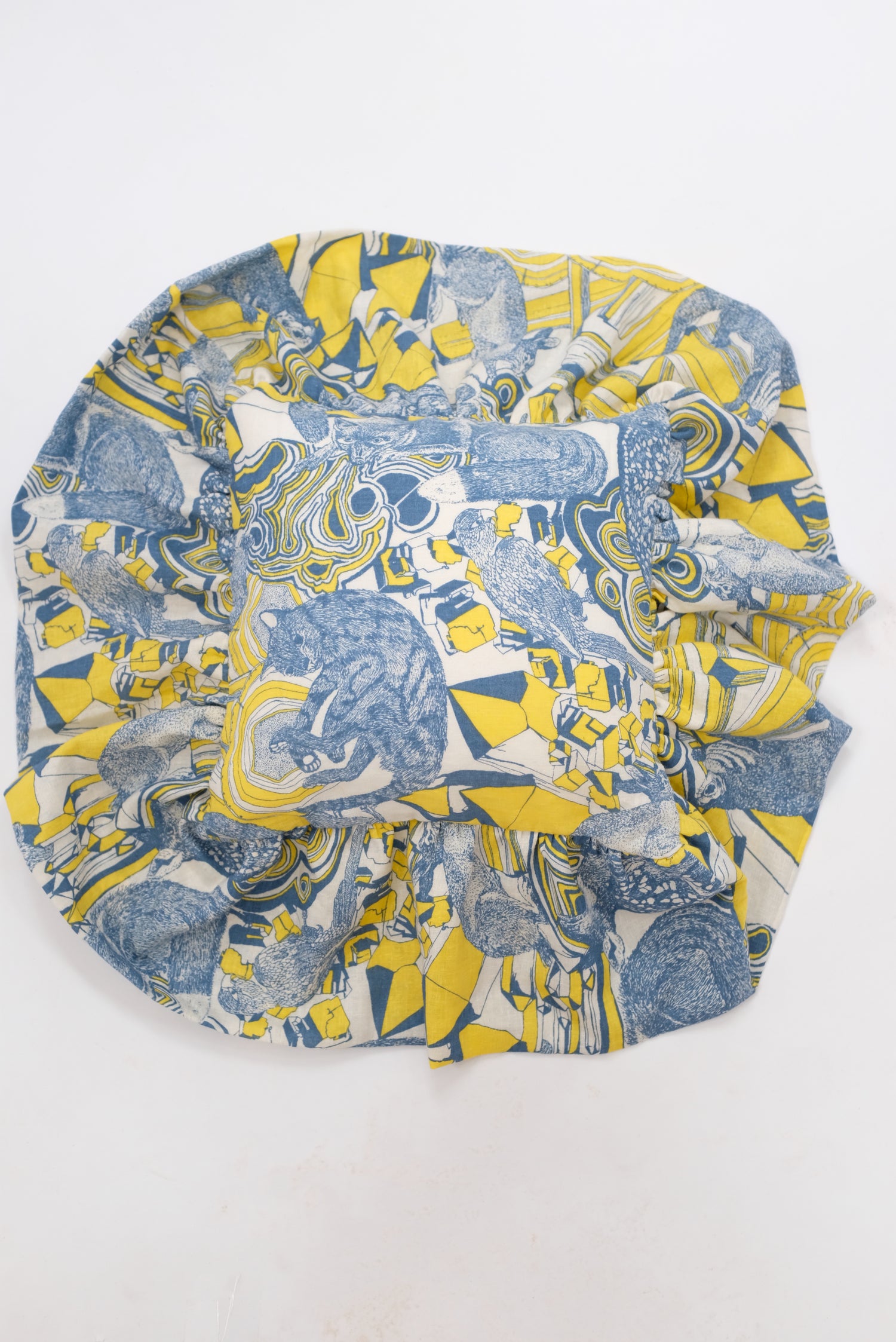 100% Cotton accent pillow. Oersized ruffle, insert included. Rare vintage Mociun fabric.