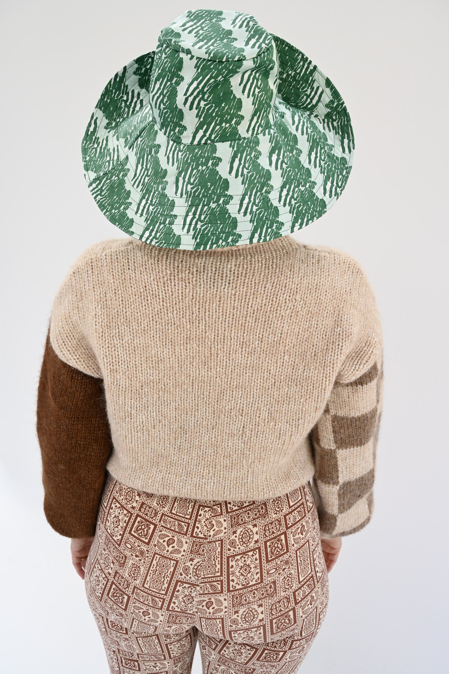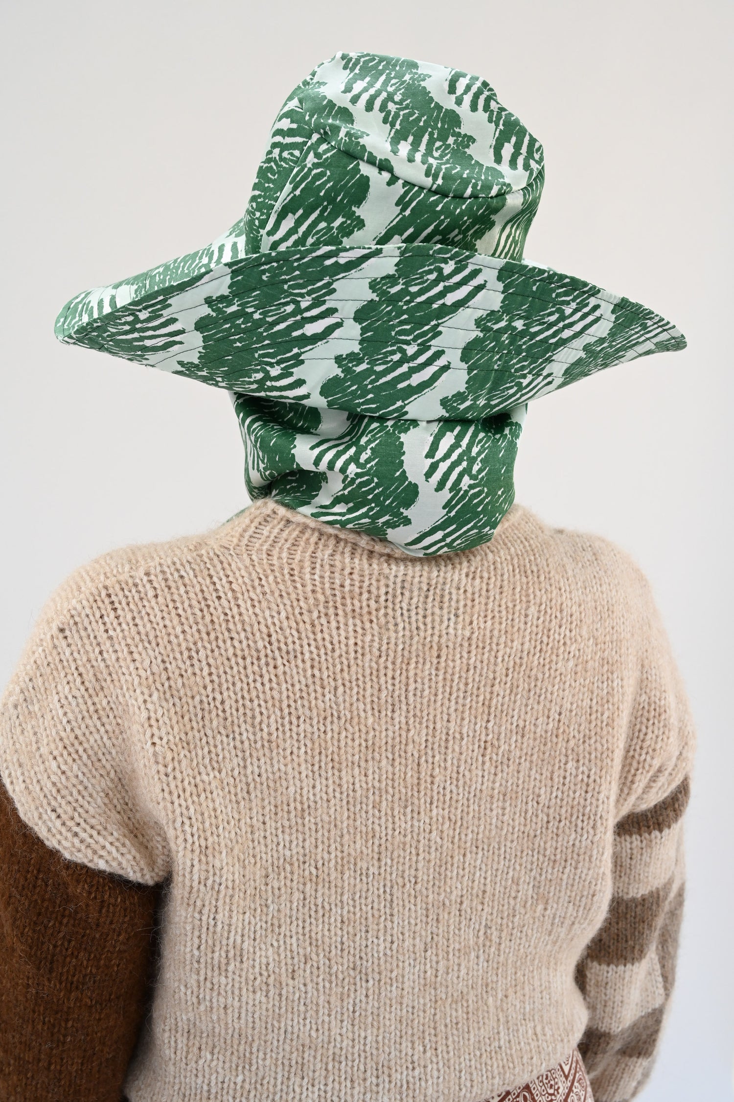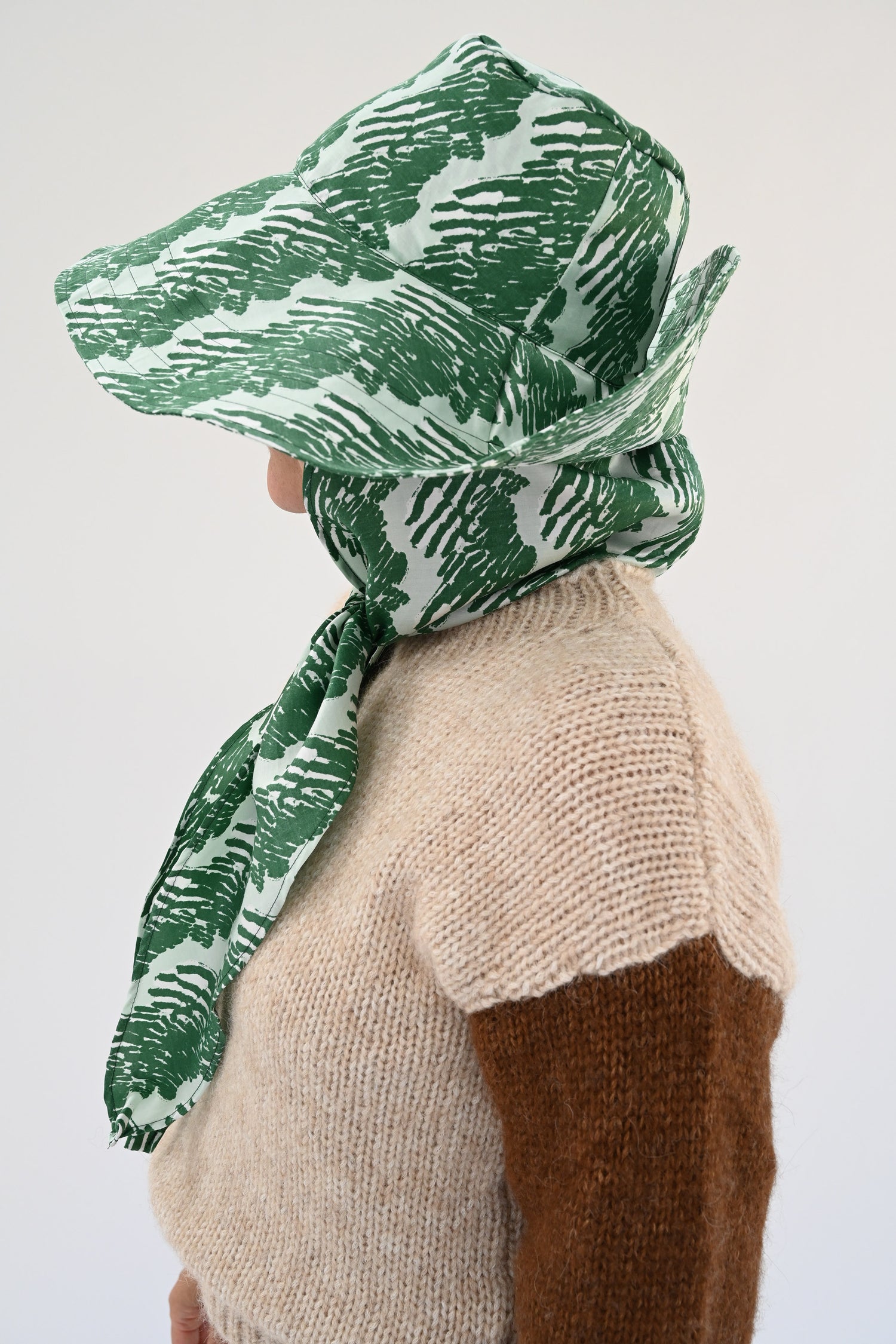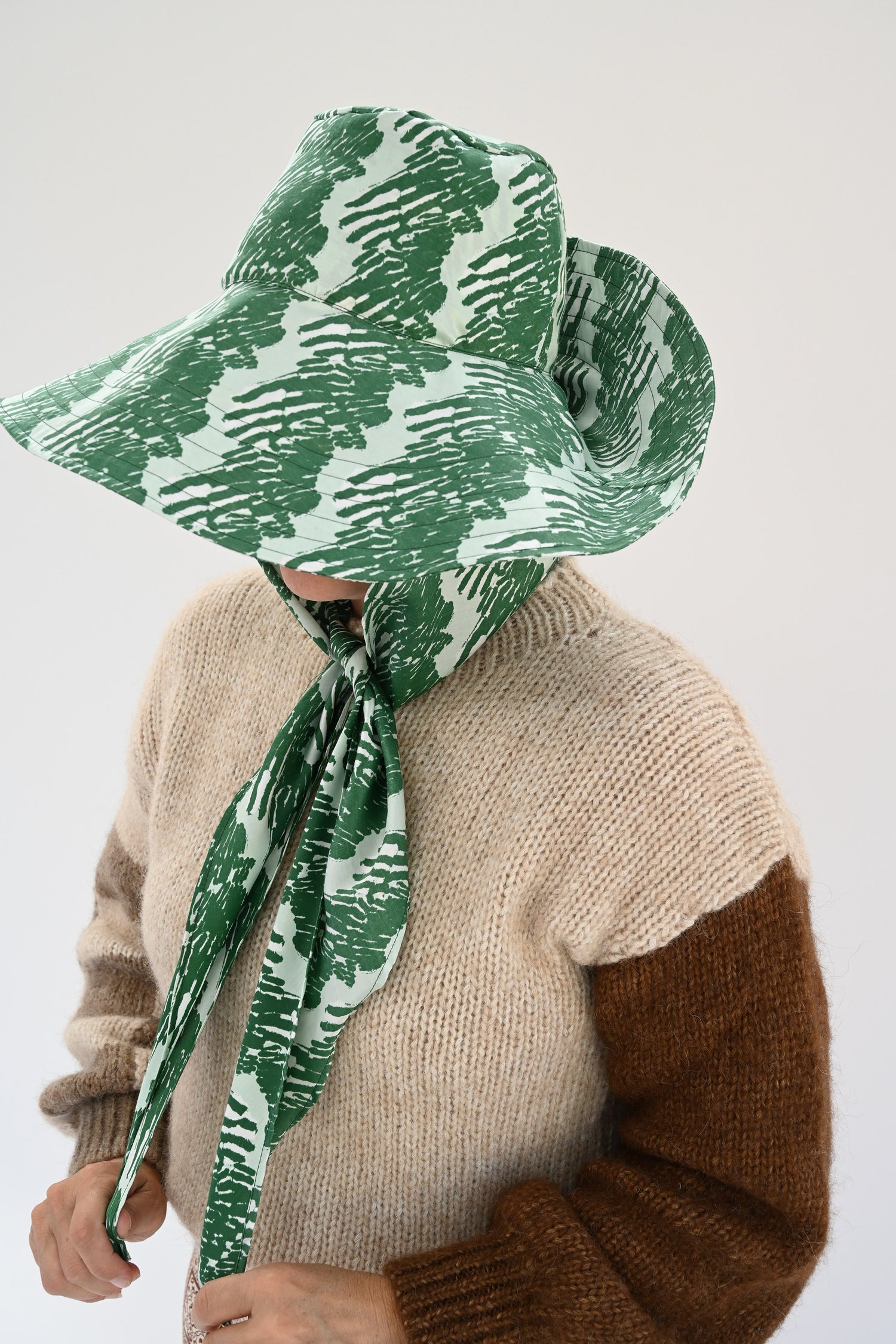 Our best hat yet; we love this style so much! Cotton silk blend woven in our exclusive limited edition French Ribbon Flora print. A sunhat that provides great shade for face, one size fits most, self scarf tie for windy weather, chill, or privacy, wear tied or untied.