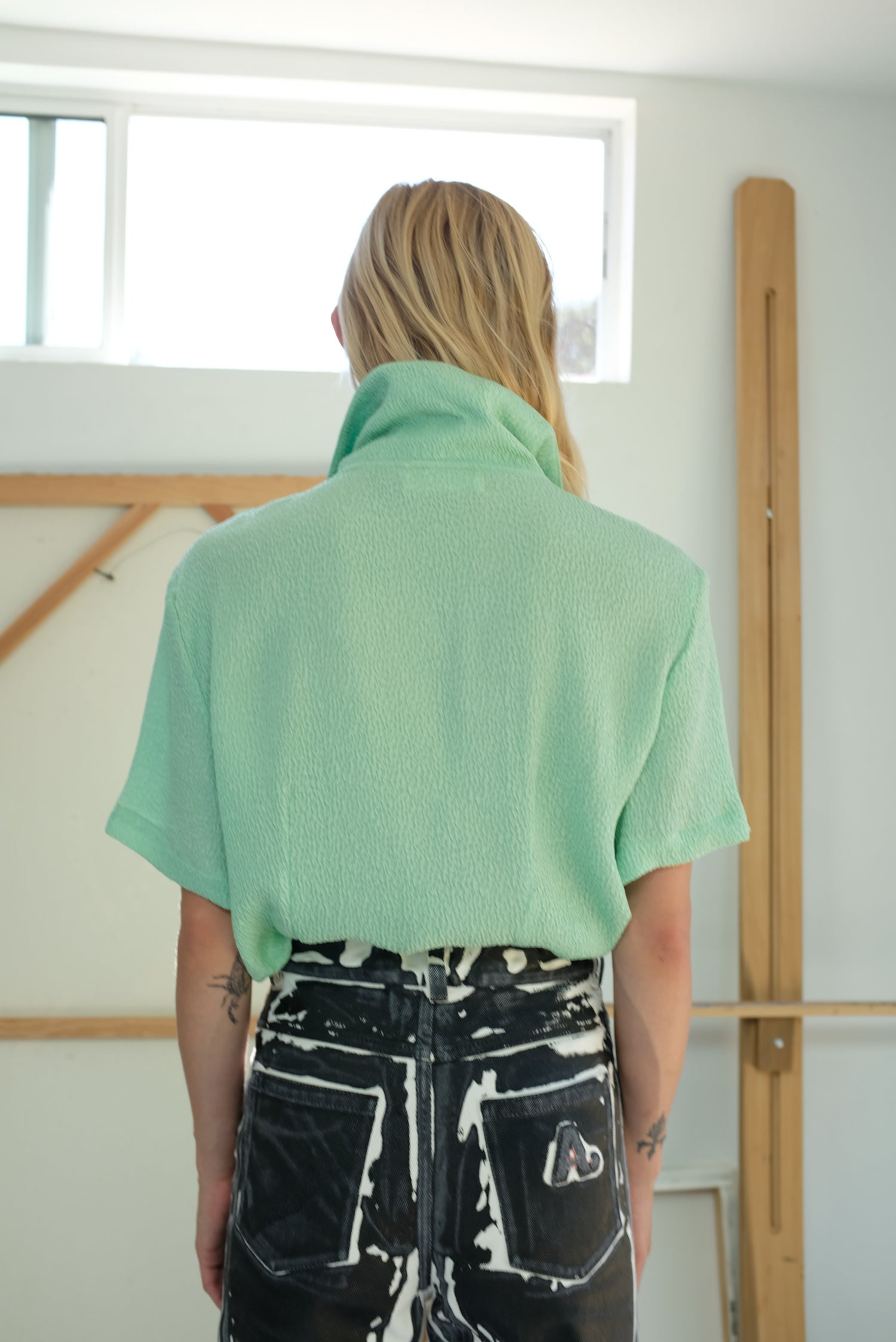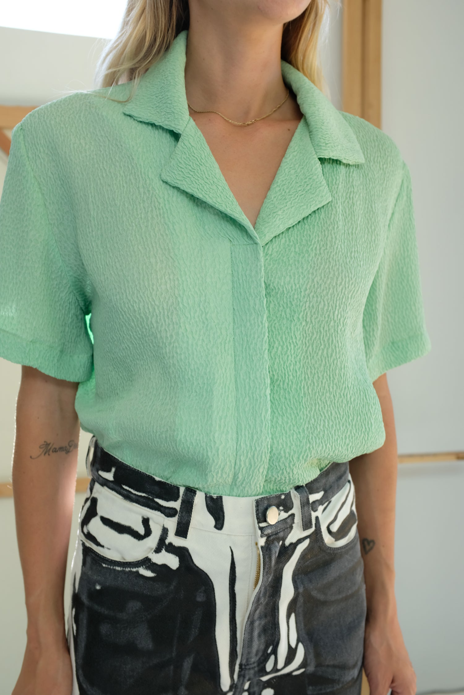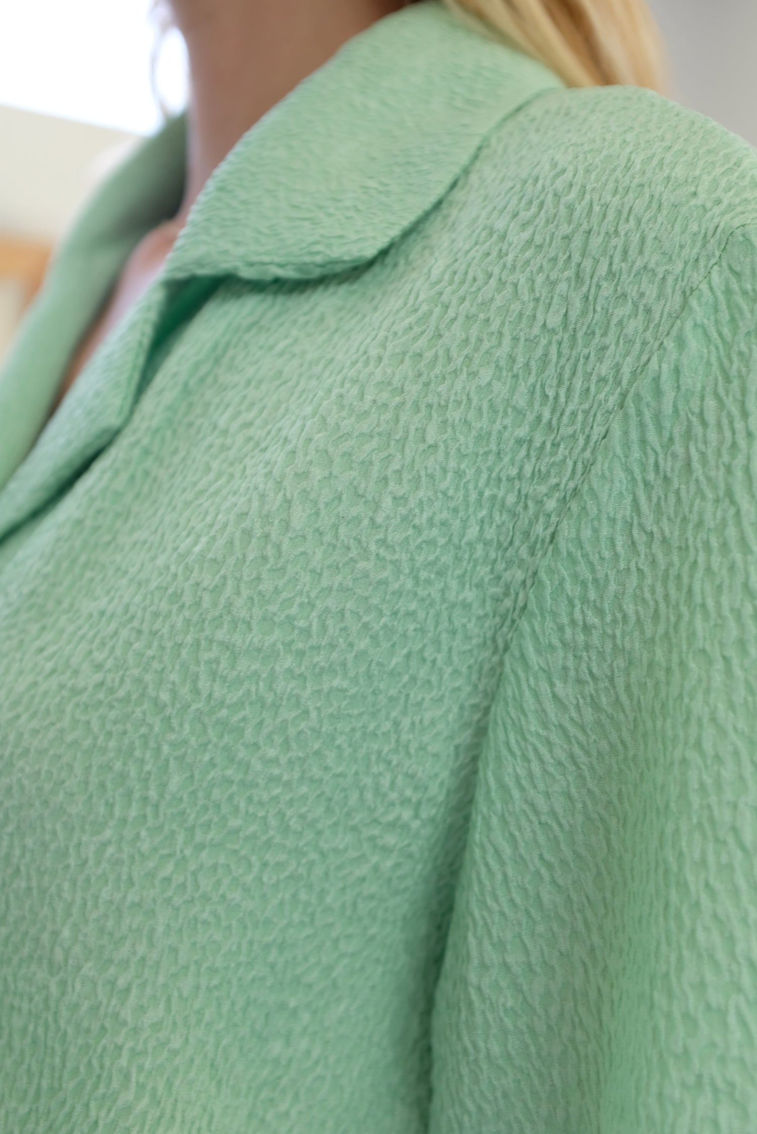 Gorgeous textured silk blouse, tailored fit with enclosed French seams, buttons down front, covered front placket. Pre-washed and hand dyed in Los Angeles. 100% Textured Silk. A shop favorite for the fit and color; they glow.