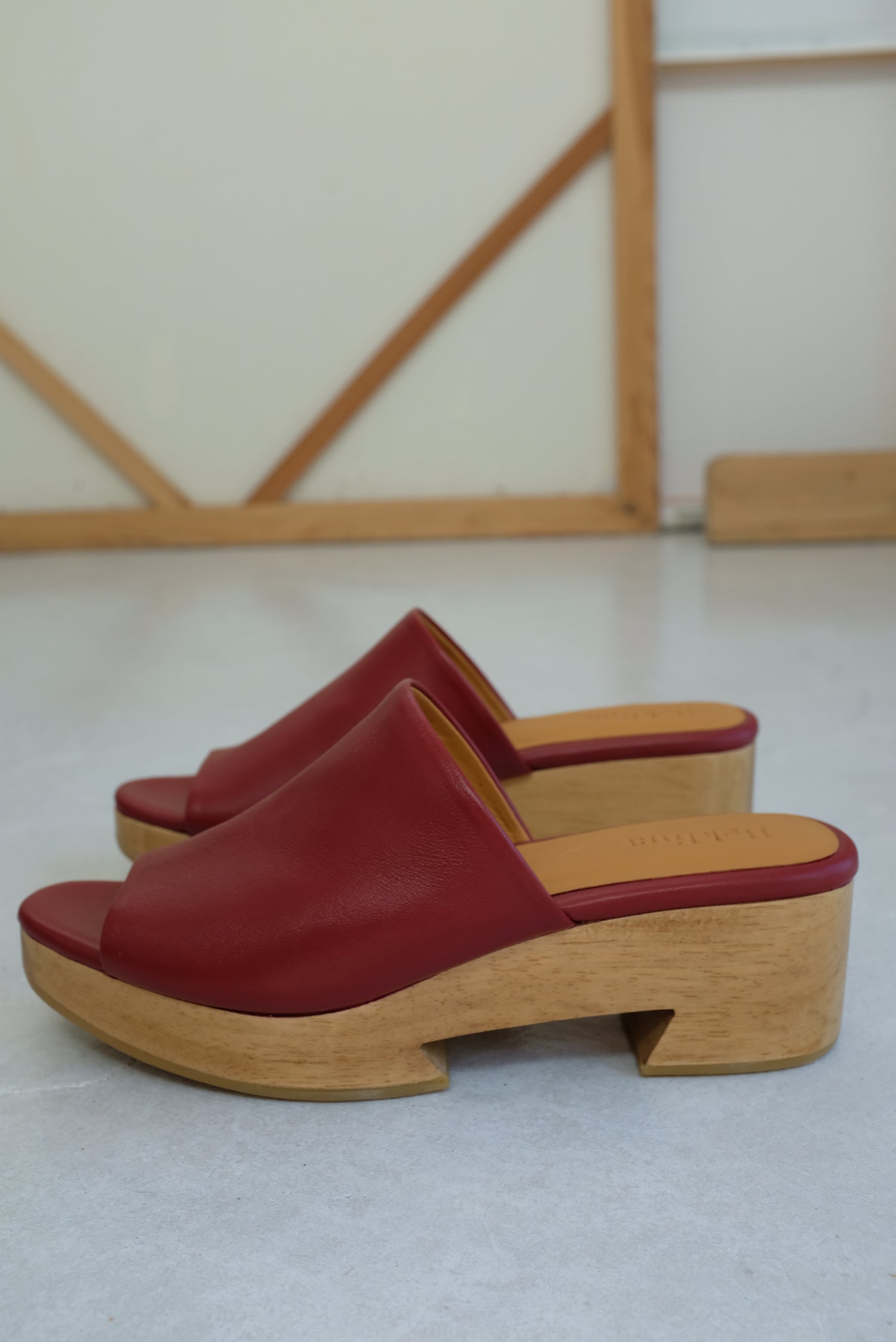 Hand carved architectural clog heel with cut out detail. Lower heel than our classic ribbed clog, also extremely comfortable. 2" heel height. 100% Leather.