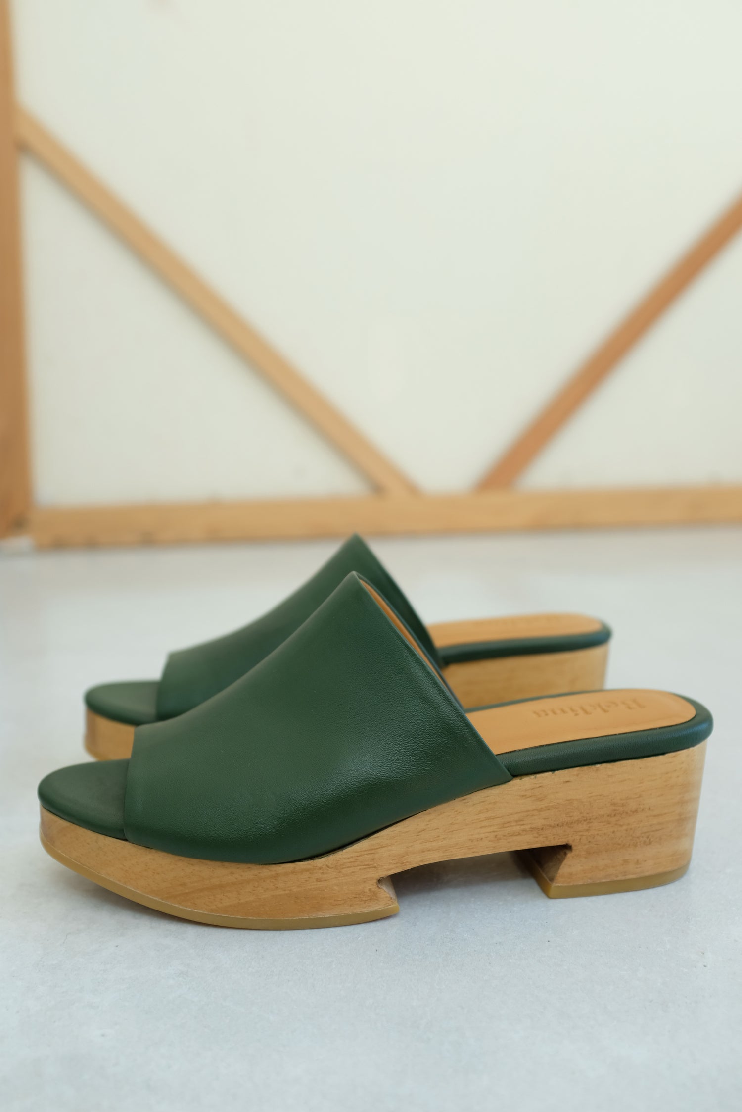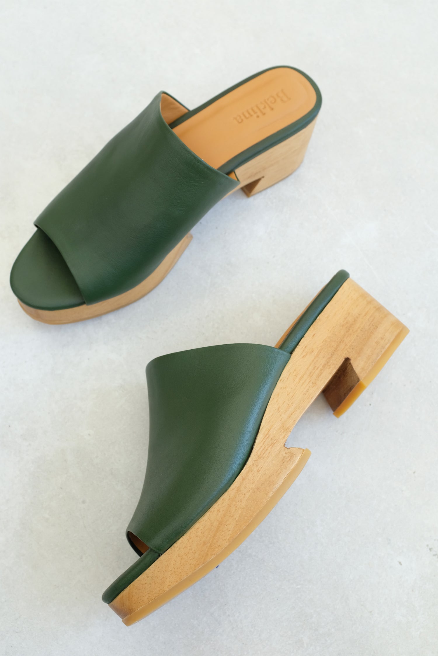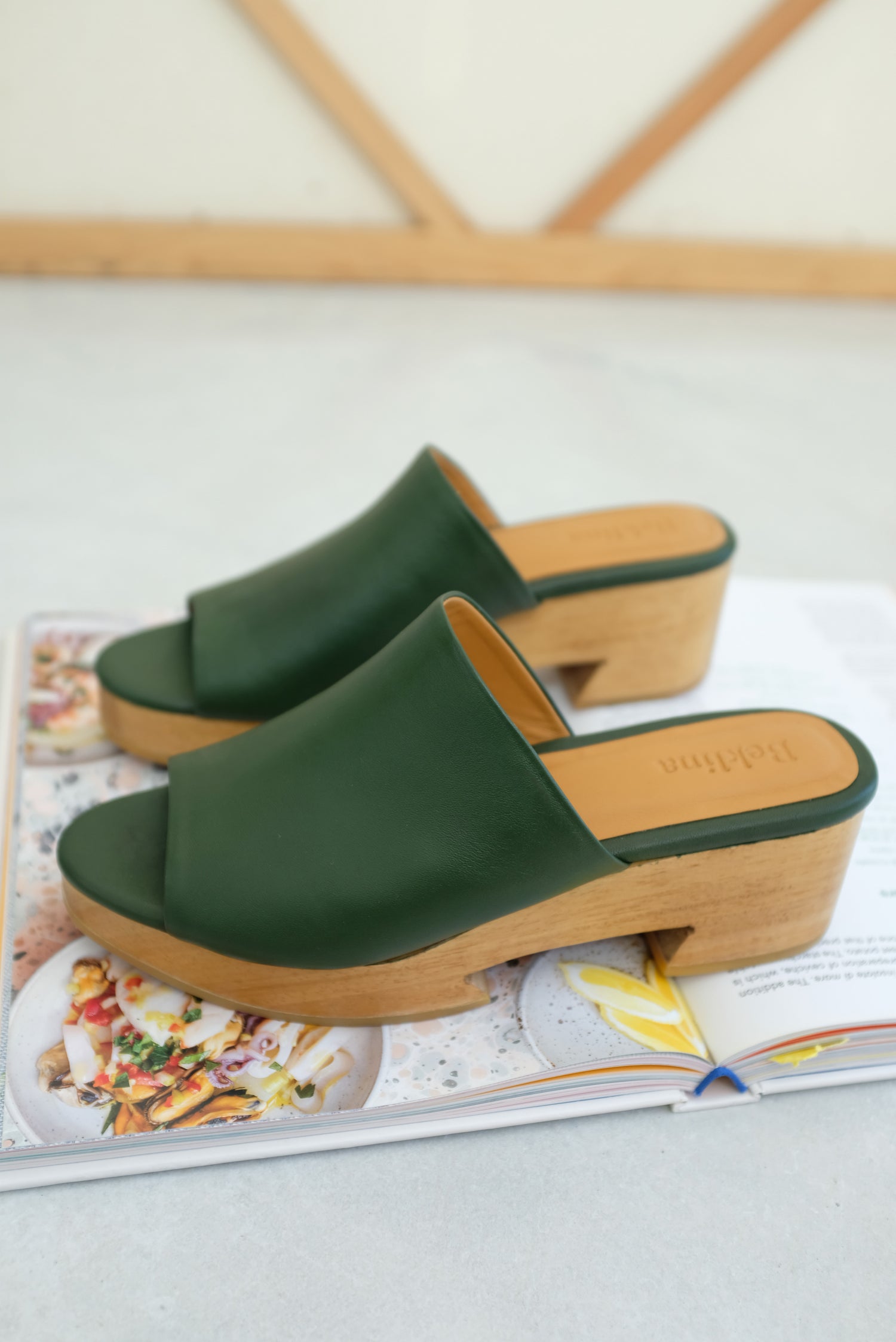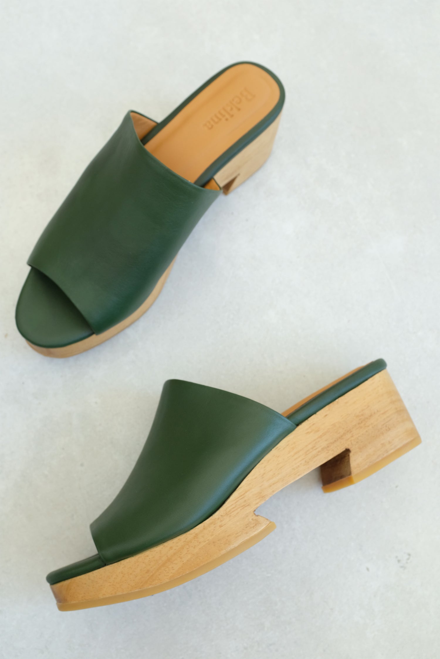 Hand carved architectural clog heel with cut out detail. Lower heel than our classic ribbed clog, also extremely comfortable. 2" heel height. 100% Leather.