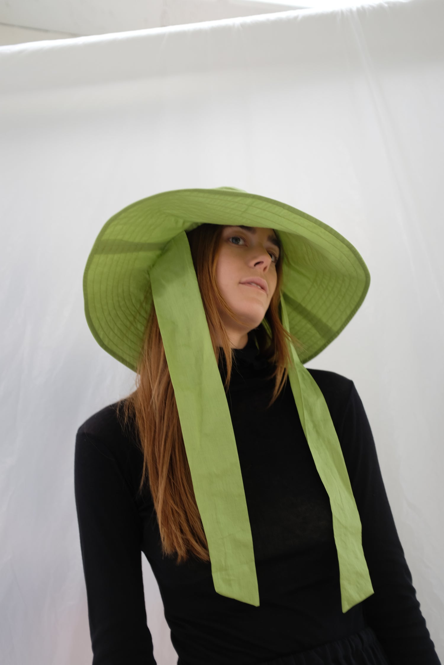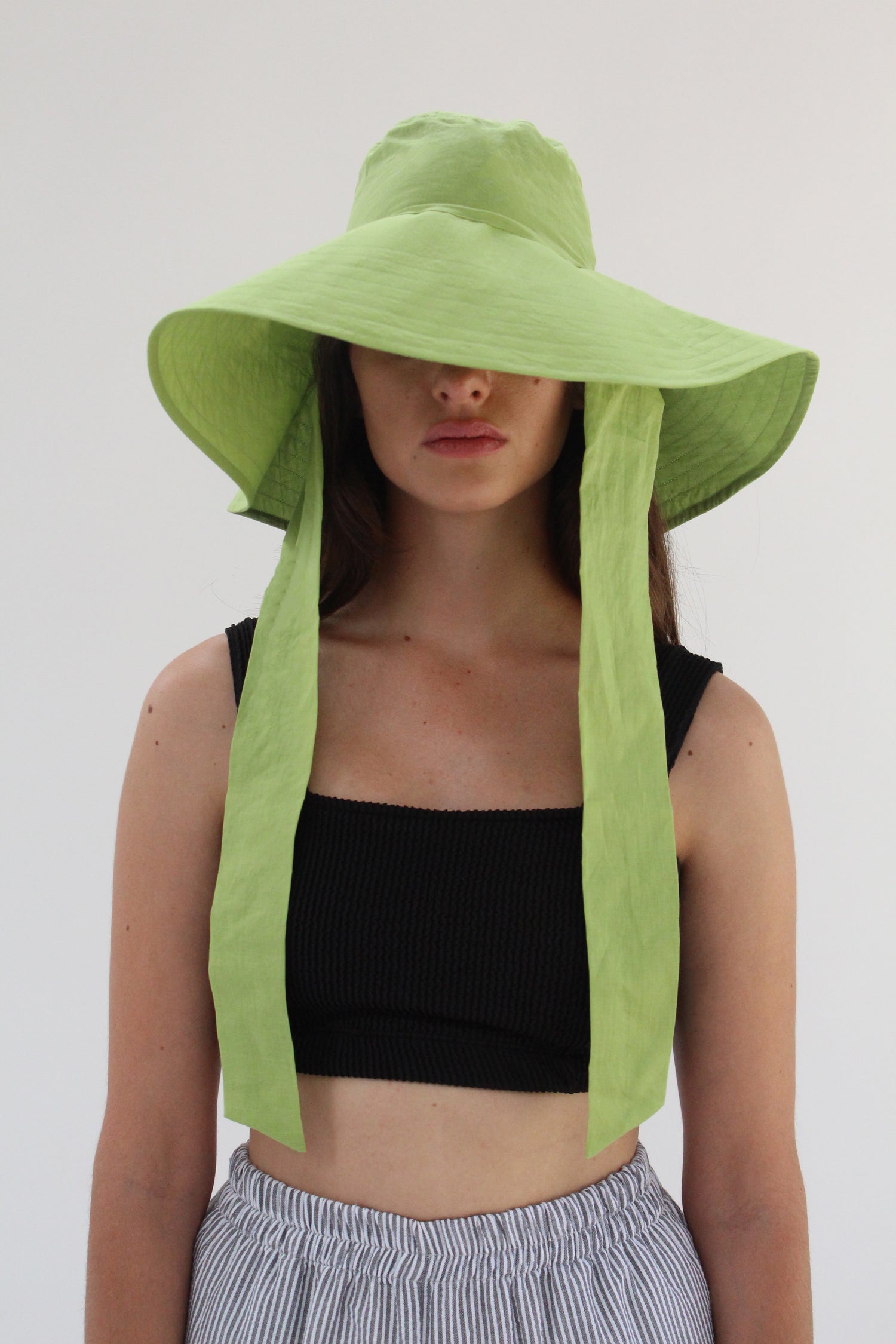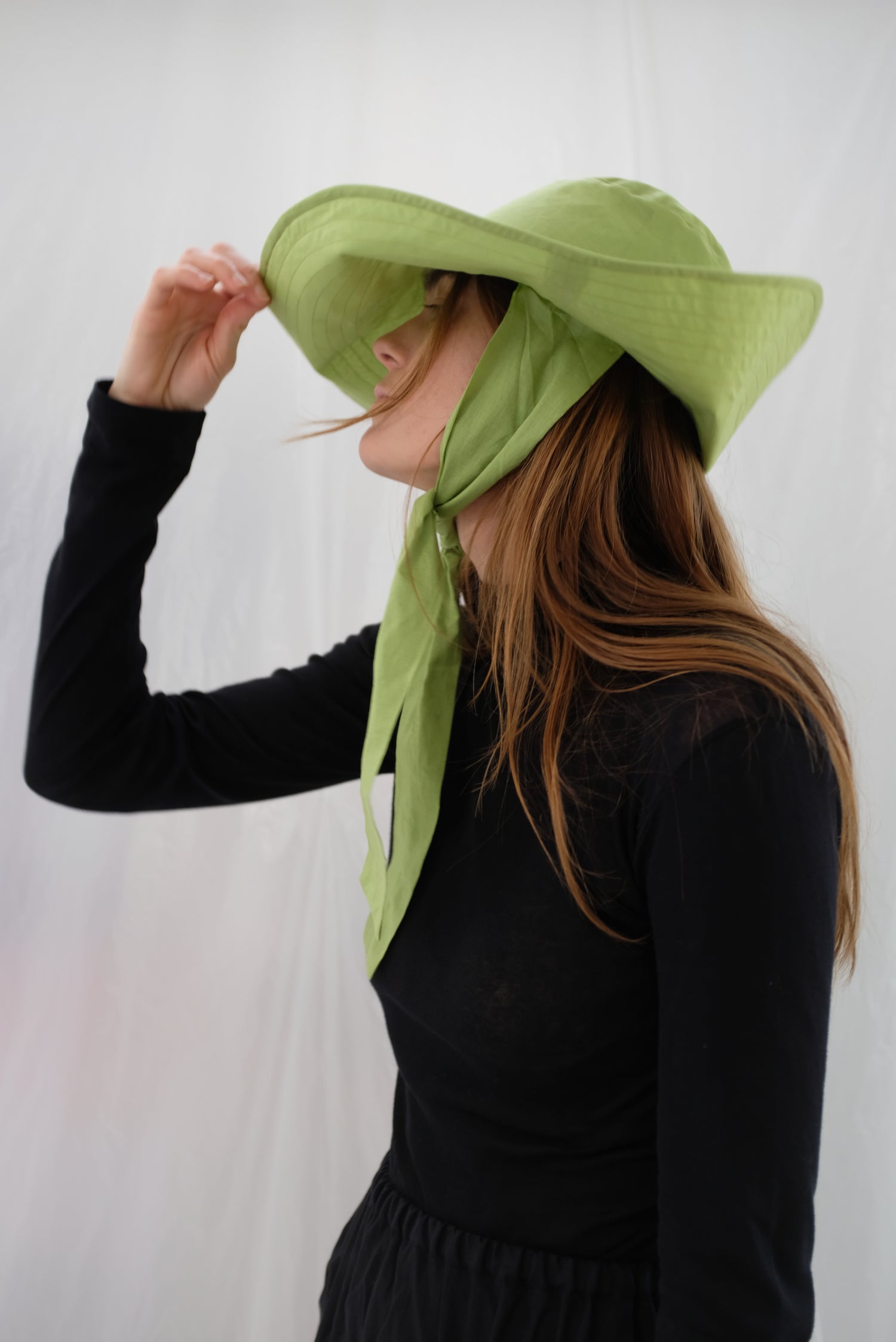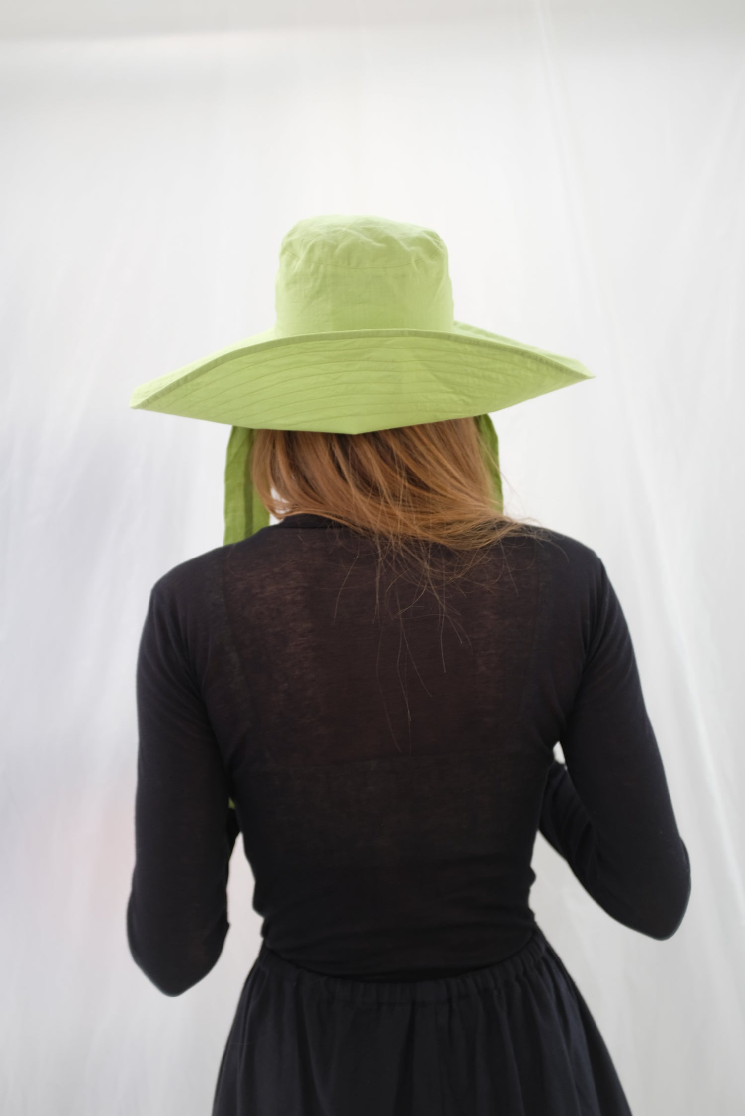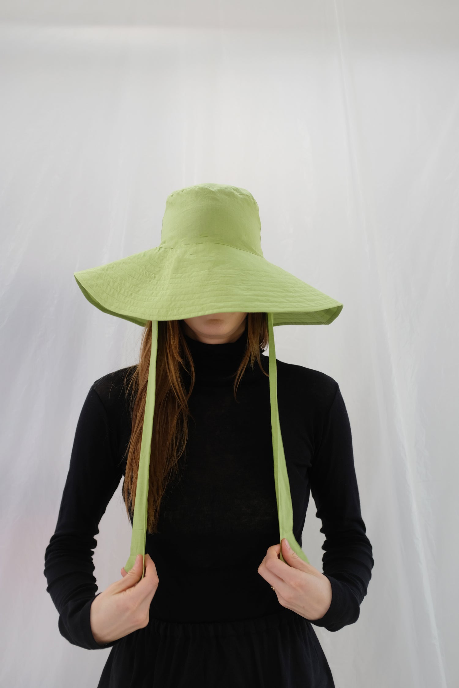 100% Cotton guaze sunhat, great shade for face, one size fits most, self tie sash for windy weather, wear tied or untied. A slightly smaller brim than our best selling Voluminoso Tie Hat. Throw in your suitcase, or trunk, takes up no room. Travels well and washable. Great sun protection.