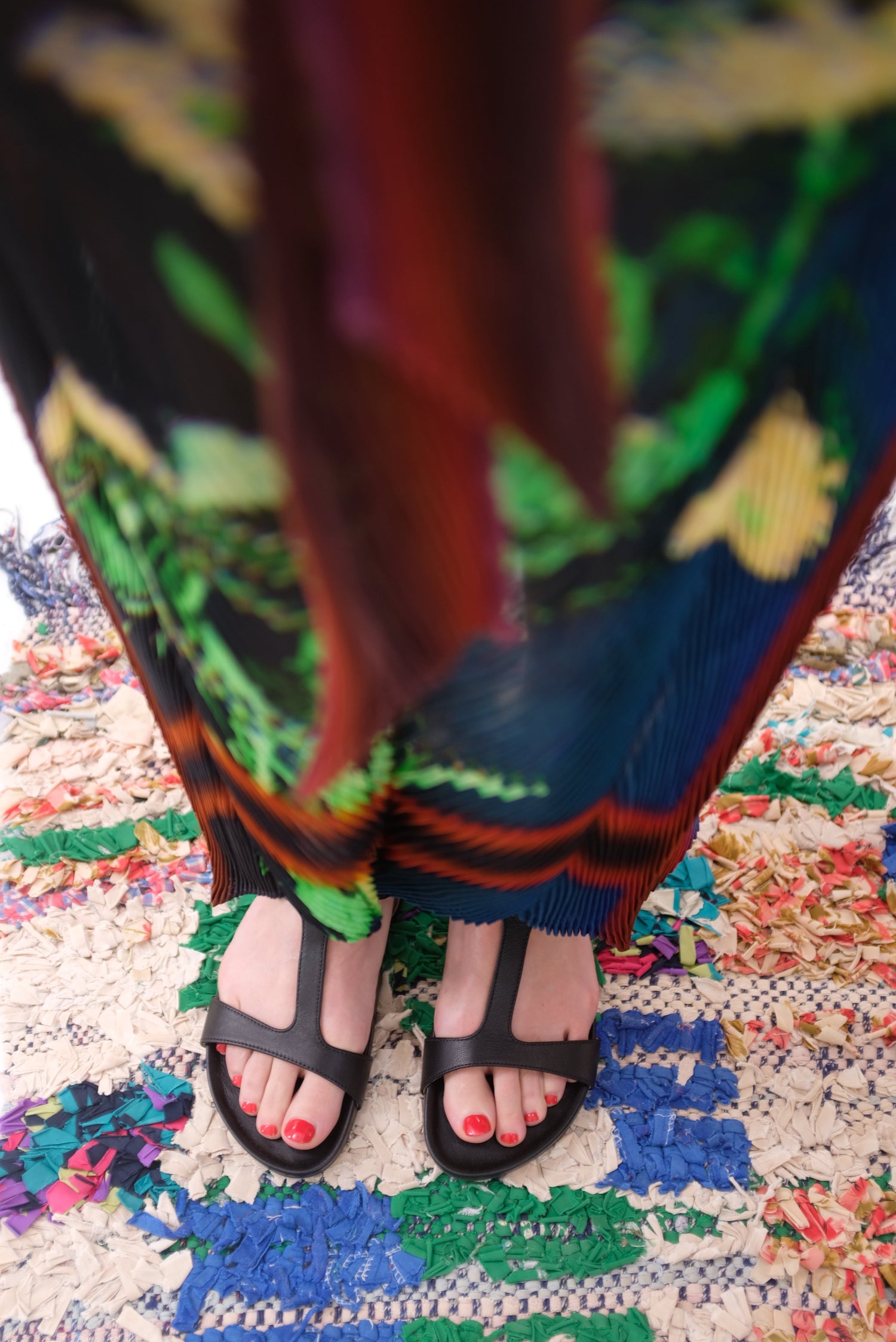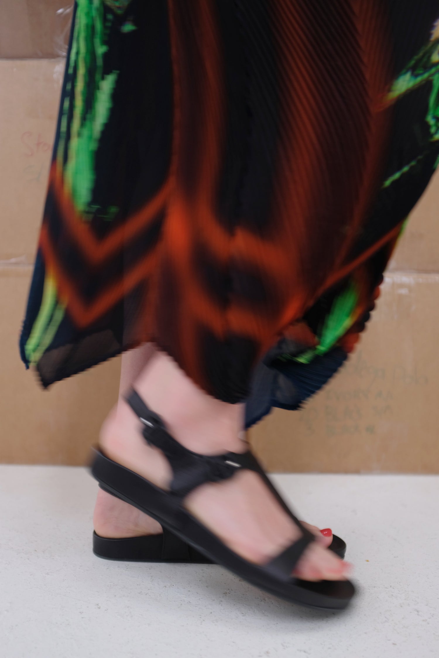 Ultra comfy luxurious cushioned walking shoe, molds to your feet. Adjustable fit with leather wrapped buckles. 100% soft Italian leather.