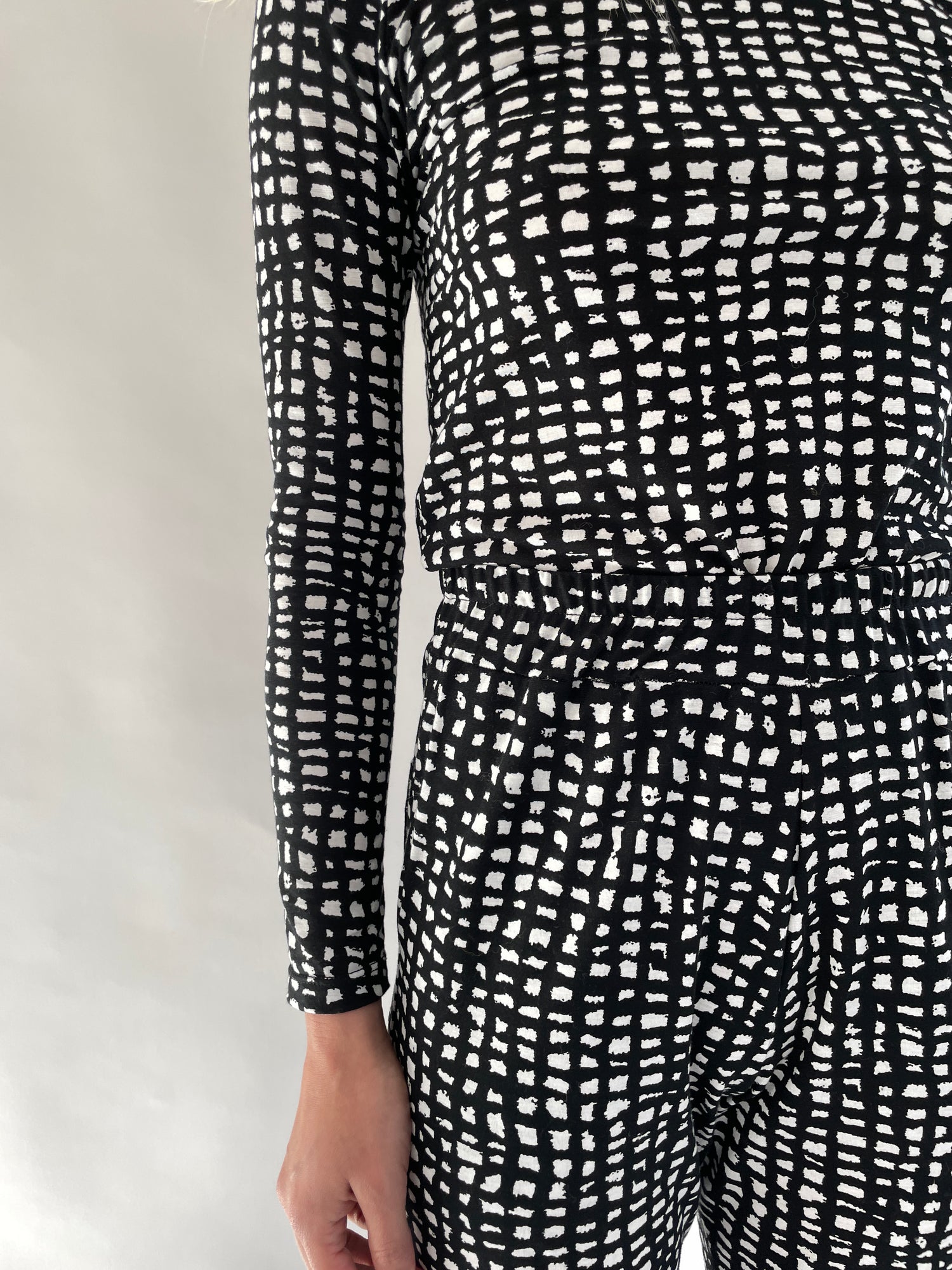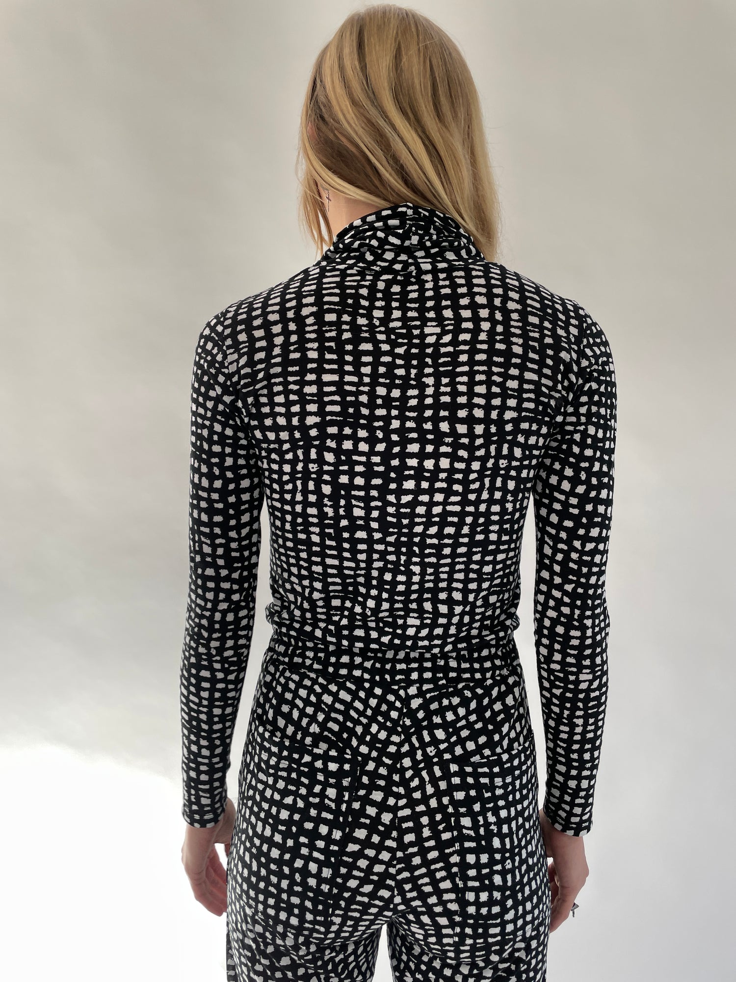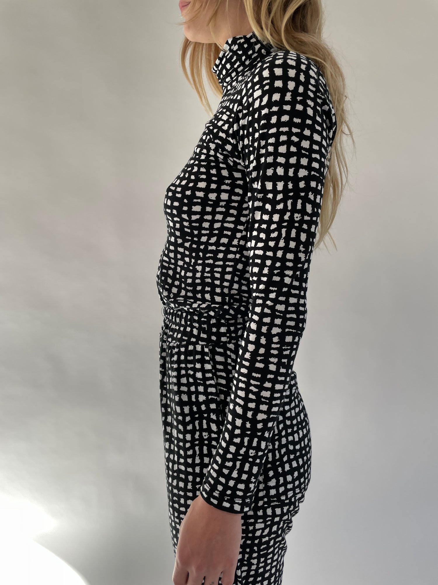 100% Organic cotton jersey from Japan. Long sleeve turtleneck, medium weight jersey, not sheer. 8" high neck.