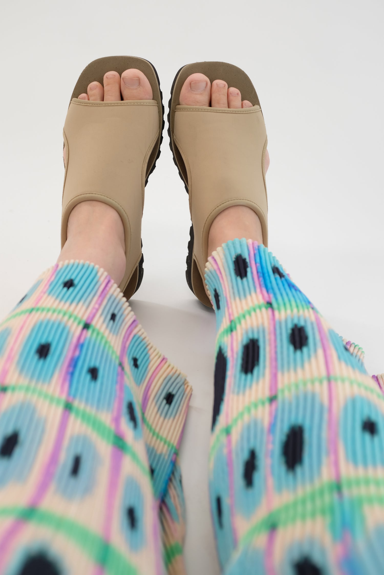 Neoprene upper, 1.5” heel height, tread bottoms. Super comfortable and soft. Great for the pool or beach, or walking all day. Water resistant. We made these with traveling in mind.