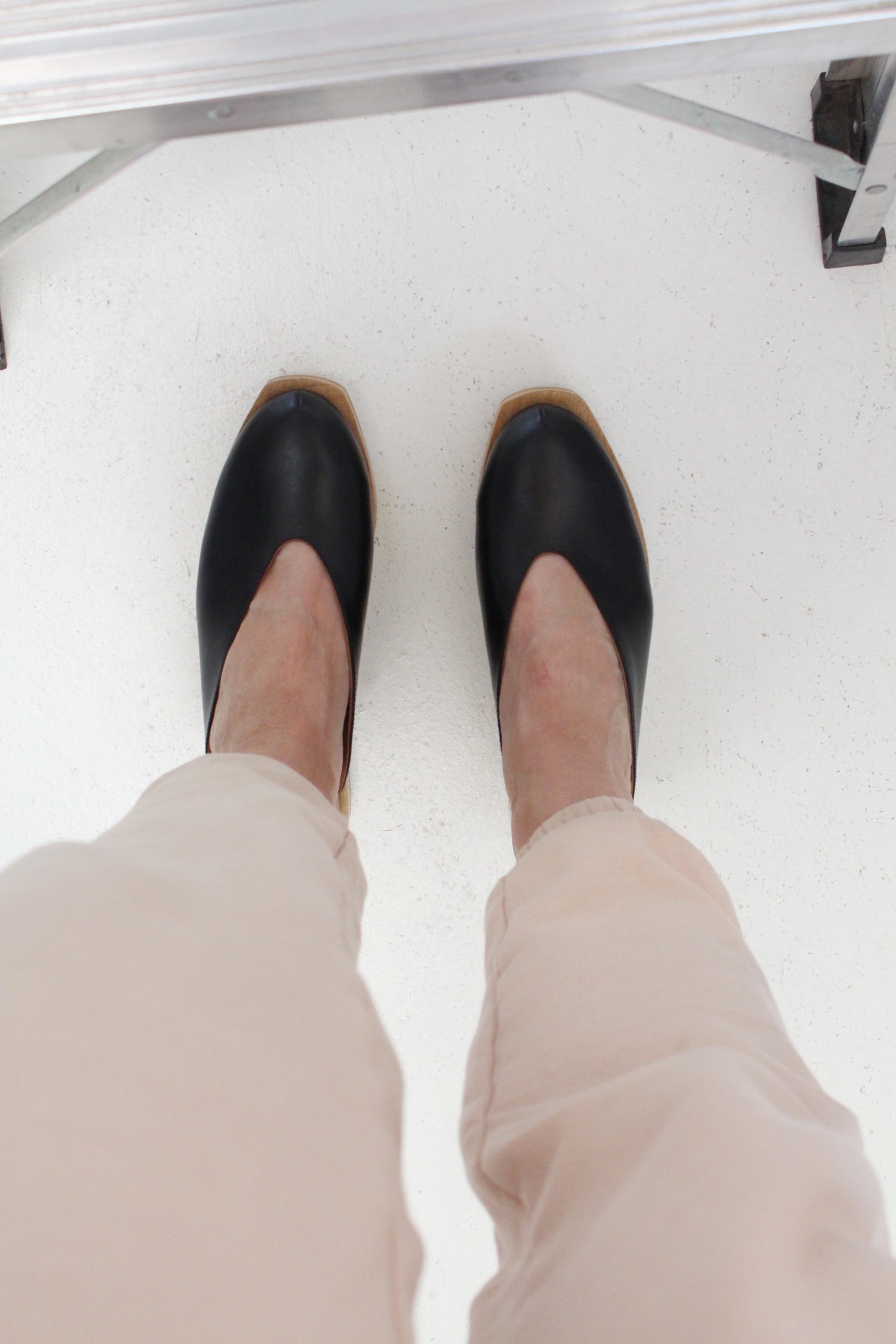 Beautiful mid-height hand carved wooden wedge clog, with a leather upper, and leather lined. Total heel height is 1 1/2".