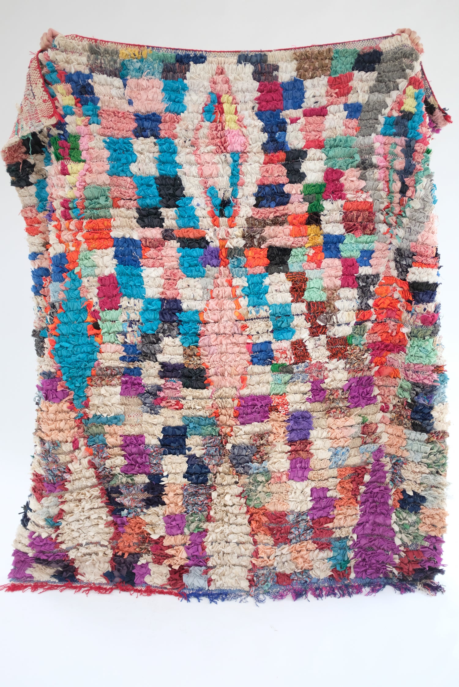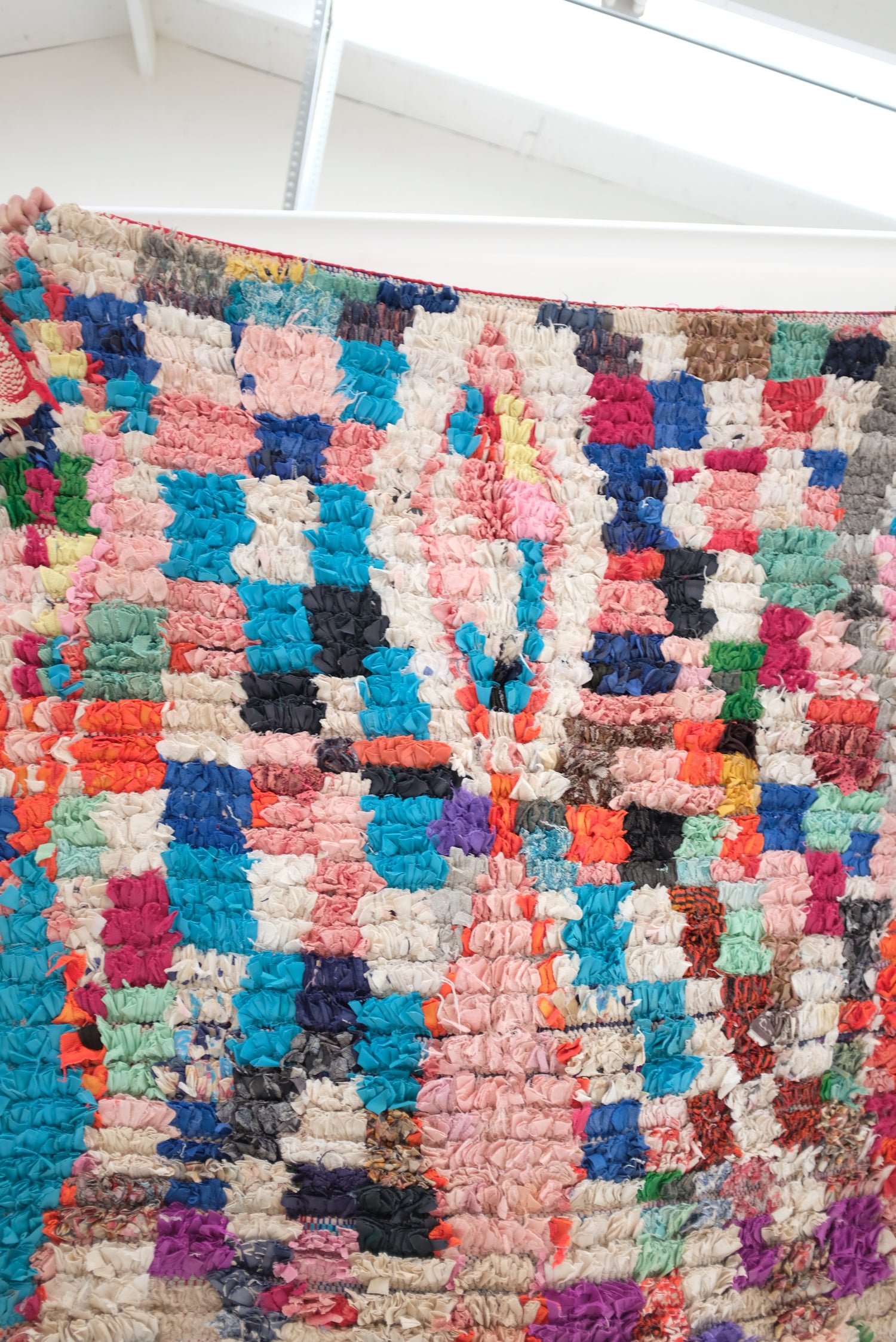 Morocco's Berber craft Boucherouite rugs. Can also be hung on walls. Authentic vintage rugs that make a colorful and warm statement. Made from sustainable materials by local artisans – including cotton, nylon and wool. Each is one of a kind.