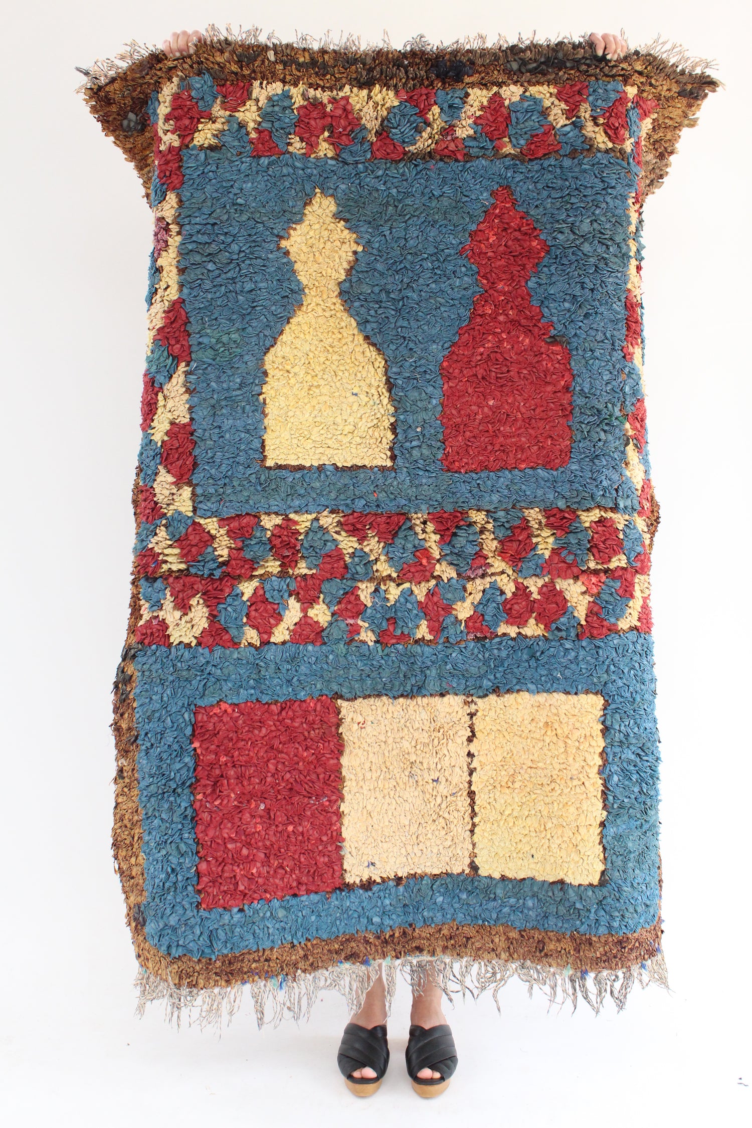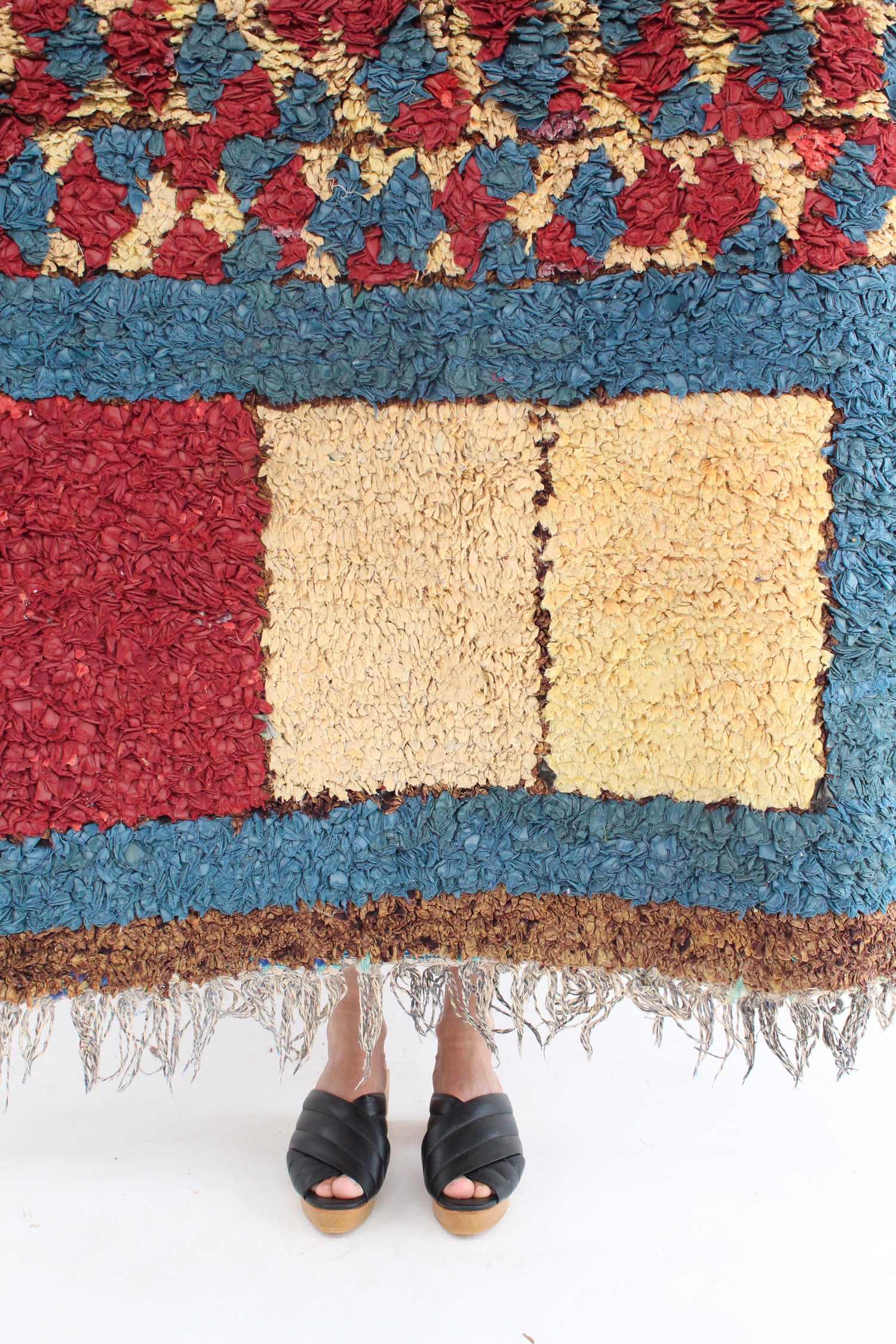 Morocco's Berber craft Boucherouite rugs. Can also be hung on walls. Authentic vintage rugs that make a colorful and warm statement. Made from sustainable materials by local artisans – including cotton, nylon and wool. Each is one of a kind.