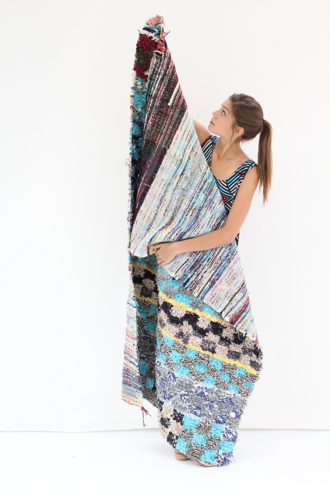 Morocco's Berber craft Boucherouite rugs. Can also be hung on walls. Authentic vintage rugs that make a colorful and warm statement. Made from sustainable materials by local artisans – including cotton, nylon and wool. Each is one of a kind.