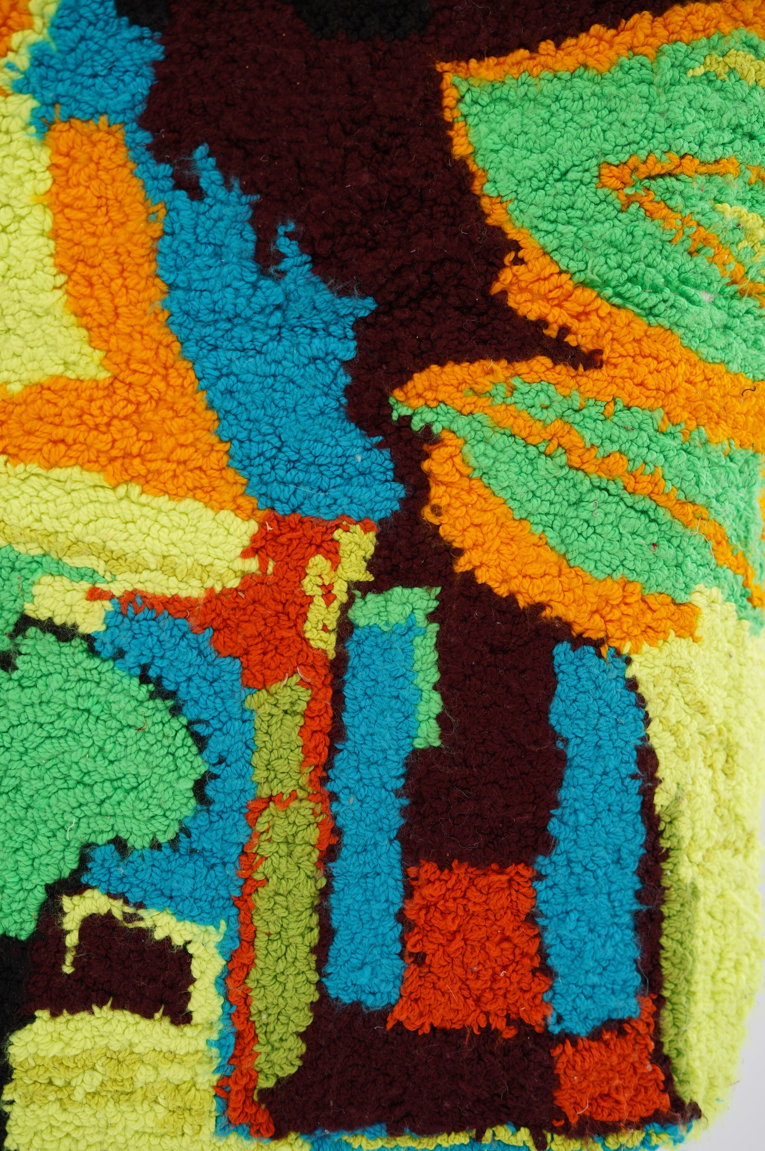 Morocco's Berber craft Boucherouite rugs. Can also be hung on walls. Authentic vintage rugs that make a colorful and warm statement. Made from sustainable materials by local artisans – including cotton, nylon and wool. Each is one of a kind.