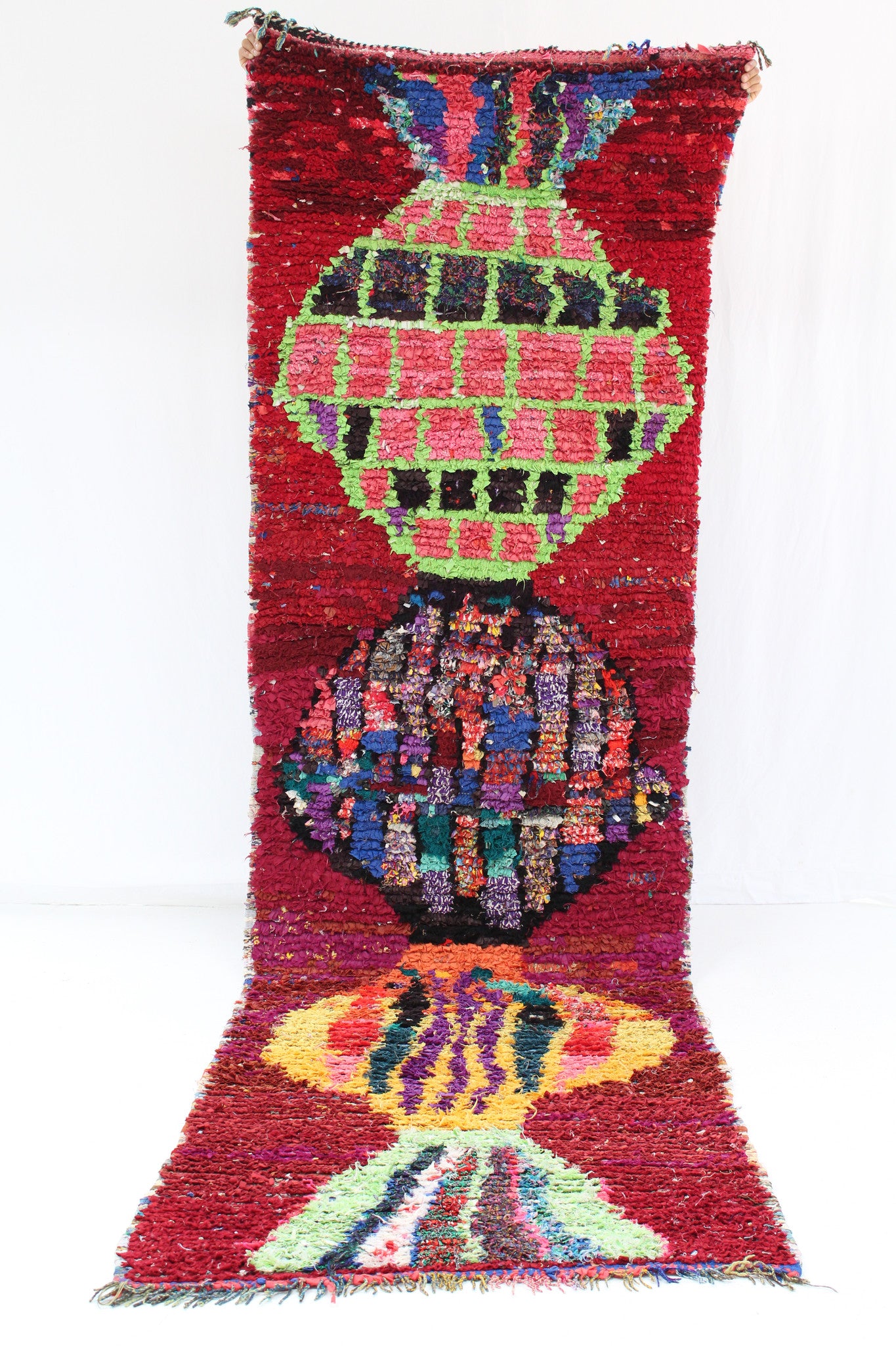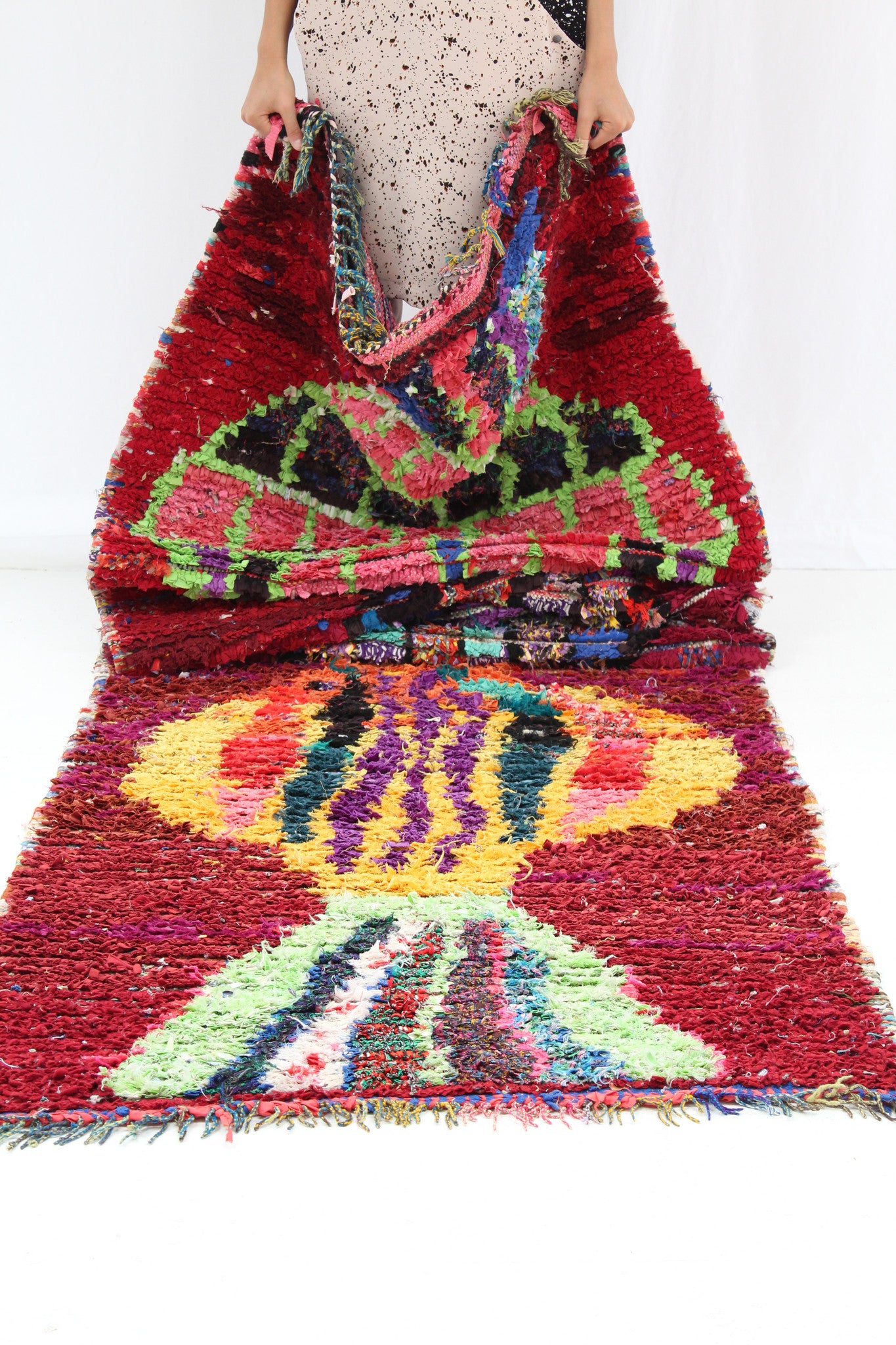 Morocco's Berber craft Boucherouite rugs. Can also be hung on walls. Authentic vintage rugs that make a colorful and warm statement. Made from sustainable materials by local artisans – including cotton, nylon and wool. Each is one of a kind and collectable.