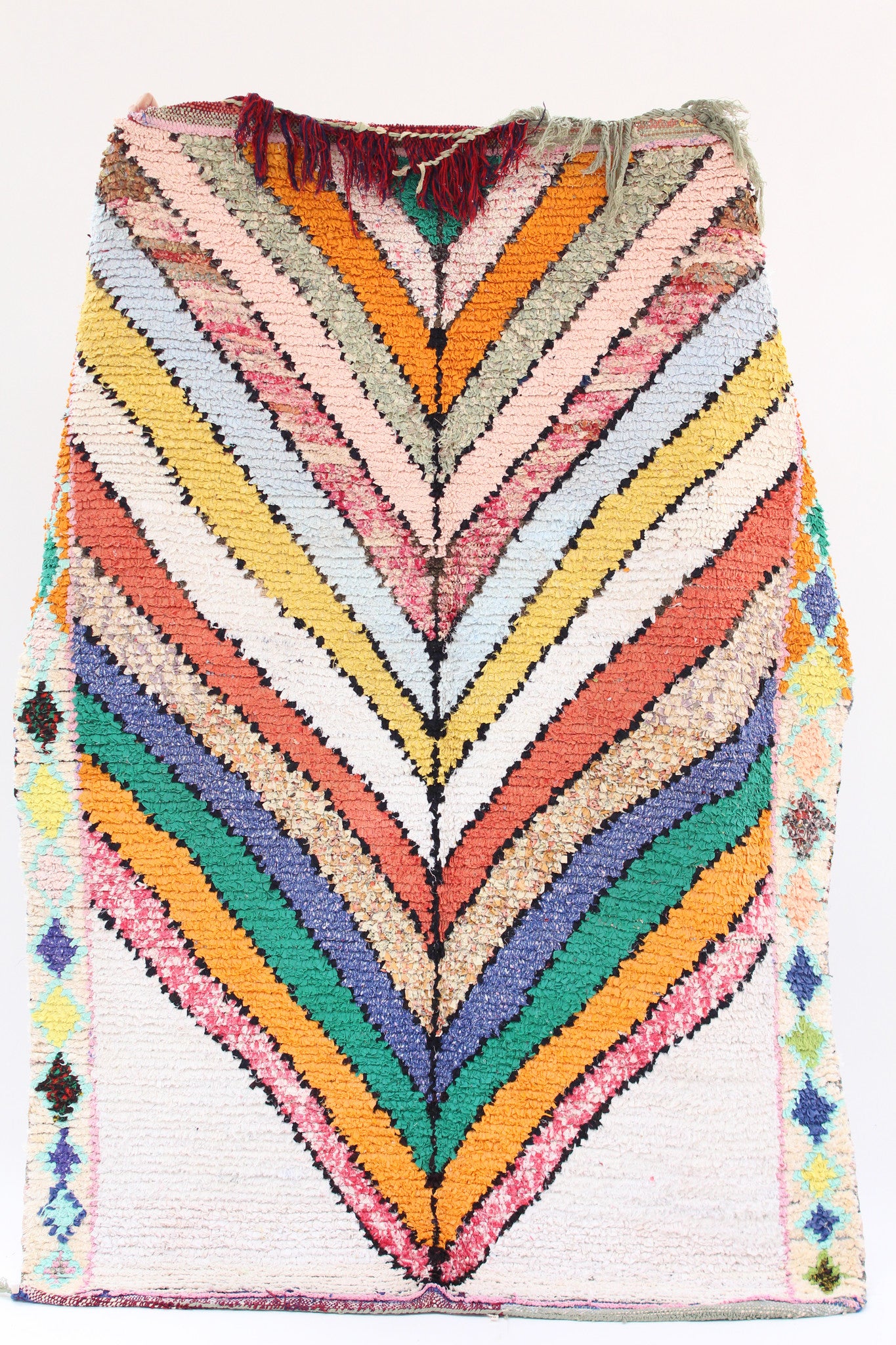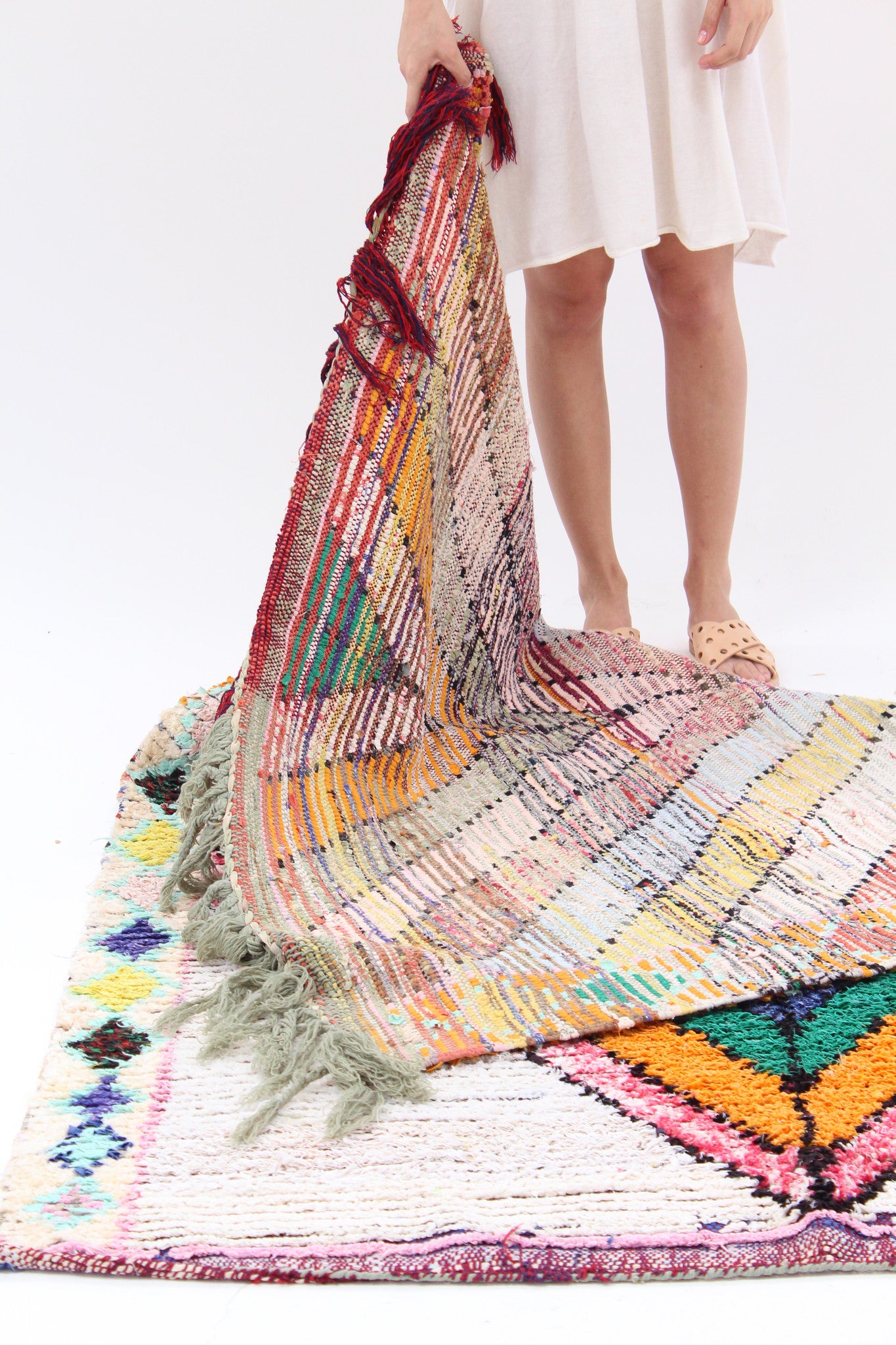 Morocco's Berber craft Boucherouite rugs. Can also be hung on walls. Authentic vintage rugs that make a colorful and warm statement. Made from sustainable materials by local artisans – including cotton, nylon and wool. Each is one of a kind.