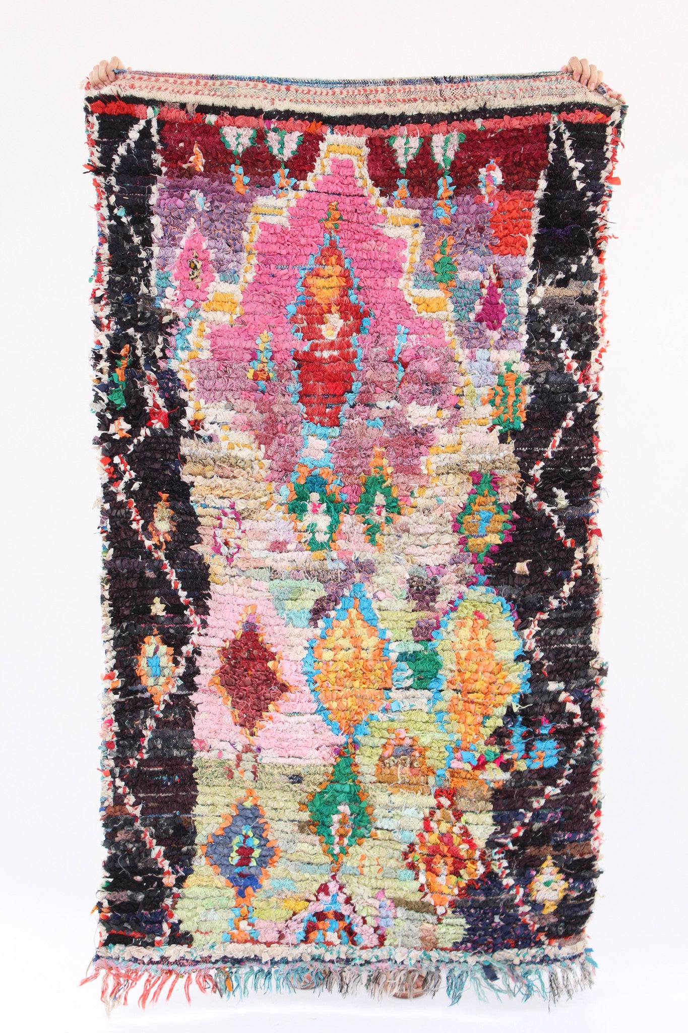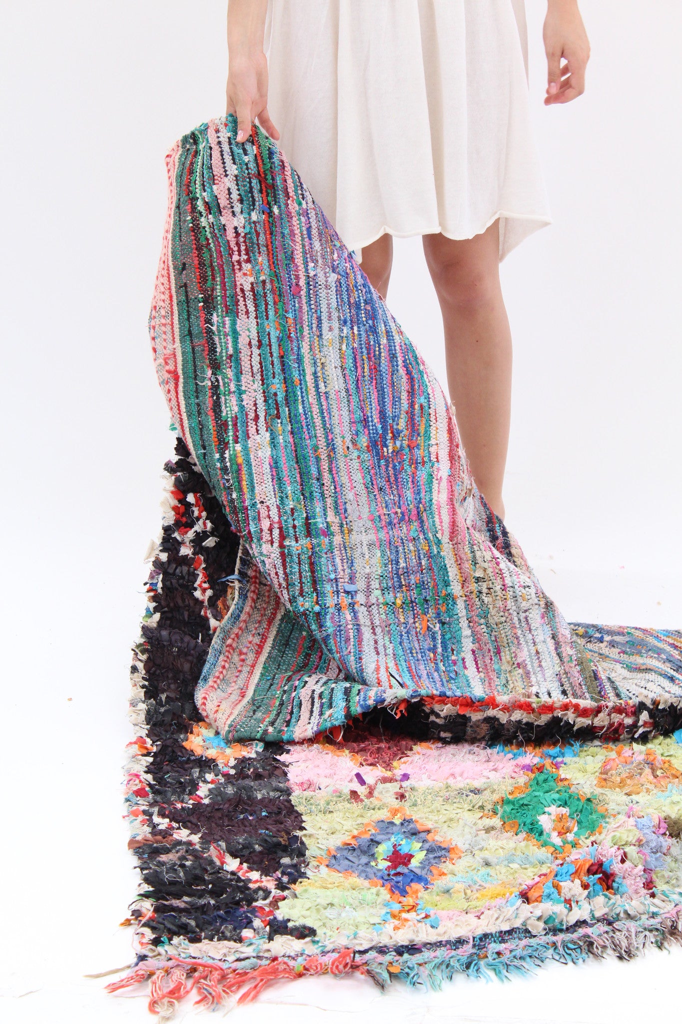 Morocco's Berber craft Boucherouite rugs. Can also be hung on walls. Authentic vintage rugs that make a colorful and warm statement. Made from sustainable materials by local artisans – including cotton, nylon and wool. Each is one of a kind.