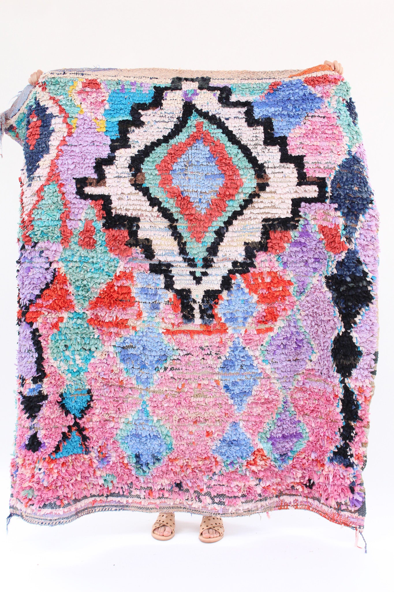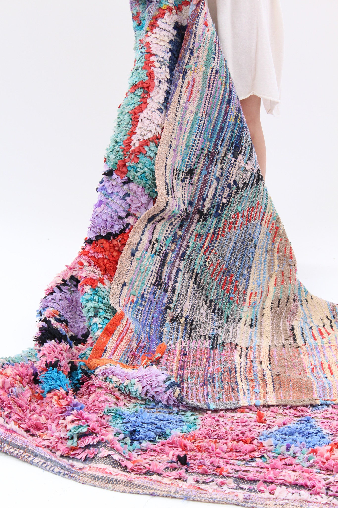 Morocco's Berber craft Boucherouite rugs. Can also be hung on walls. Authentic vintage rugs that make a colorful and warm statement. Made from sustainable materials by local artisans – including cotton, nylon and wool. Each is one of a kind.