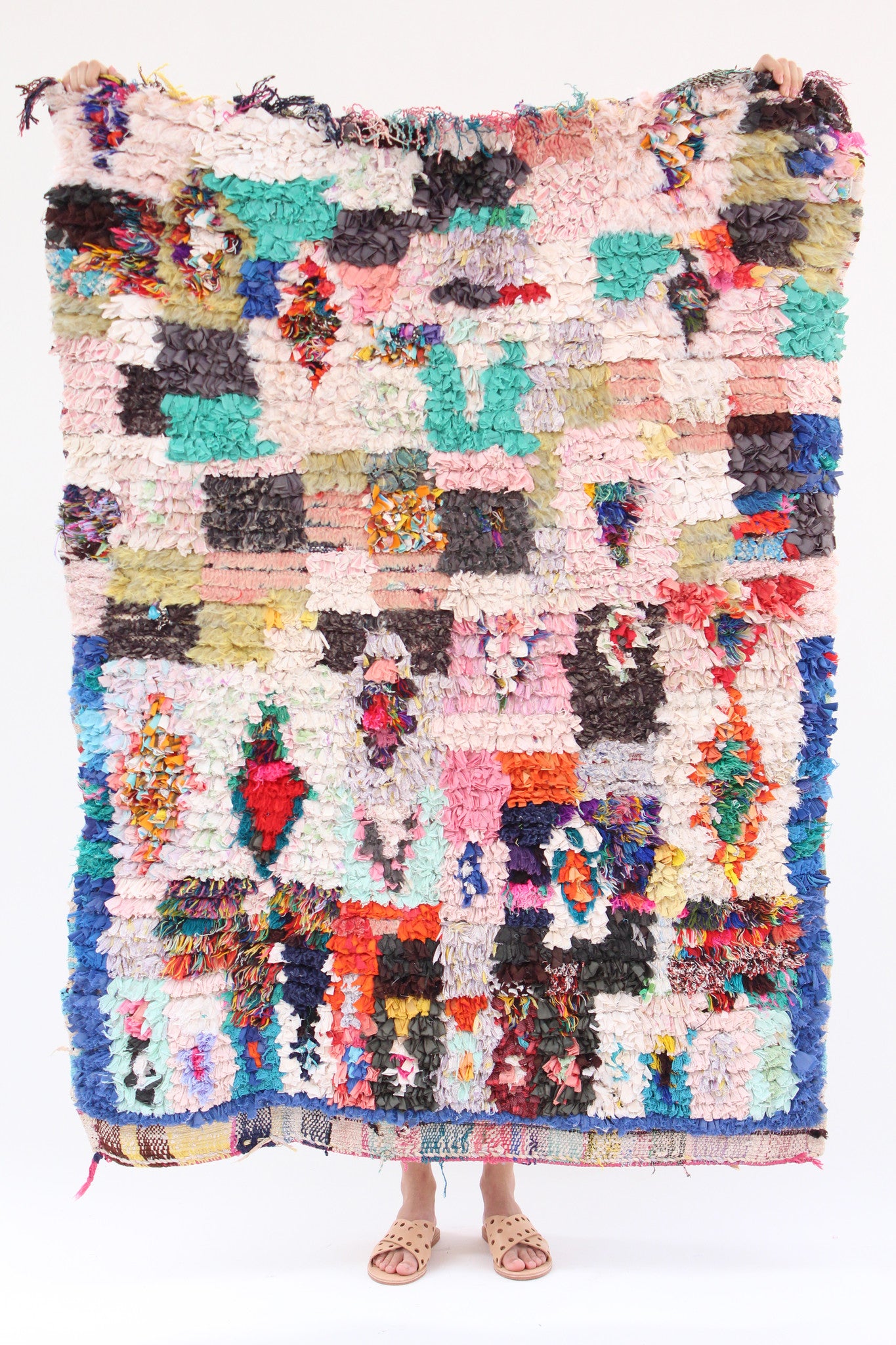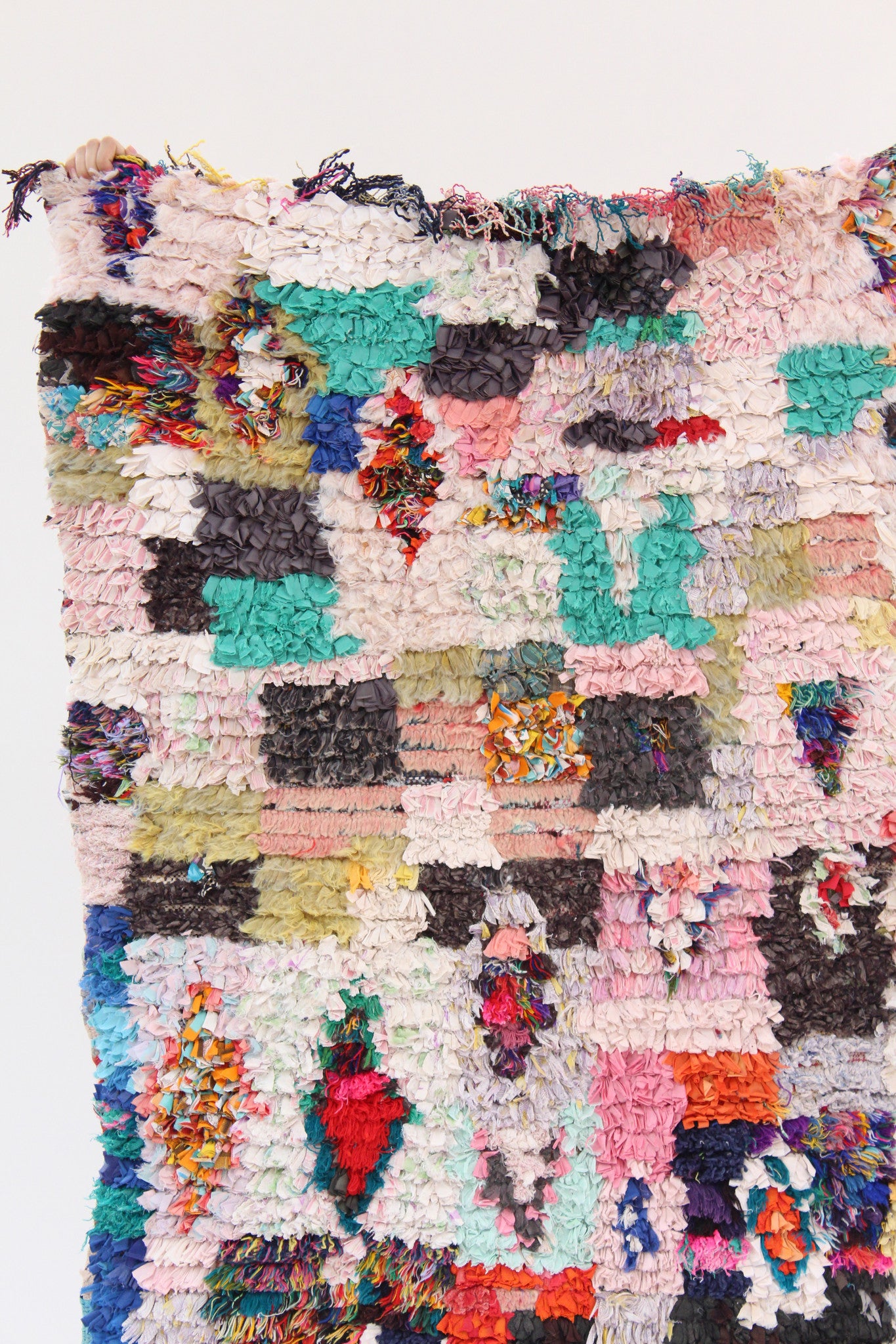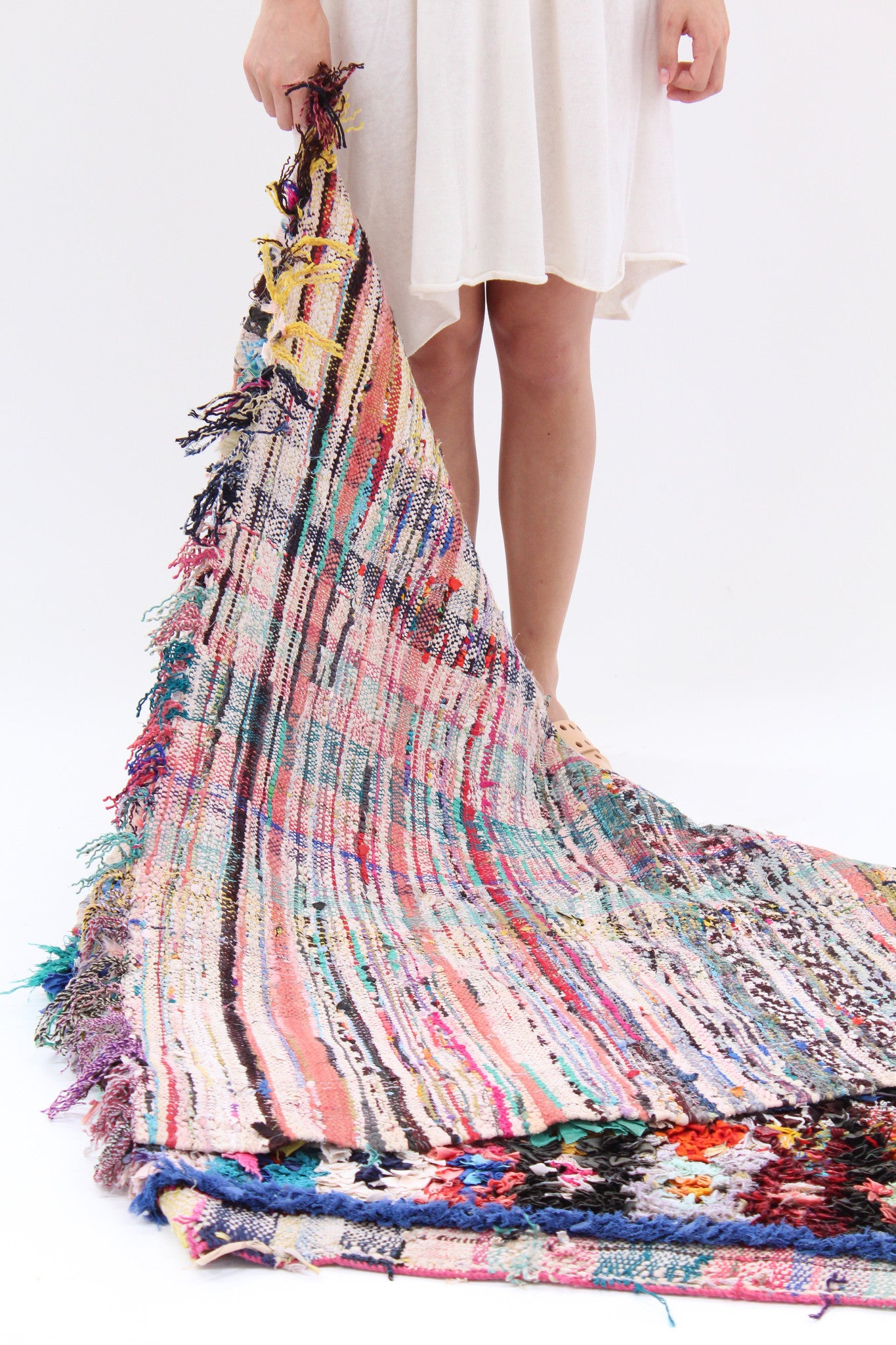 Morocco's Berber craft Boucherouite rugs. Can also be hung on walls. Authentic vintage rugs that make a colorful and warm statement. Made from sustainable materials by local artisans – including cotton, nylon and wool. Each is one of a kind.