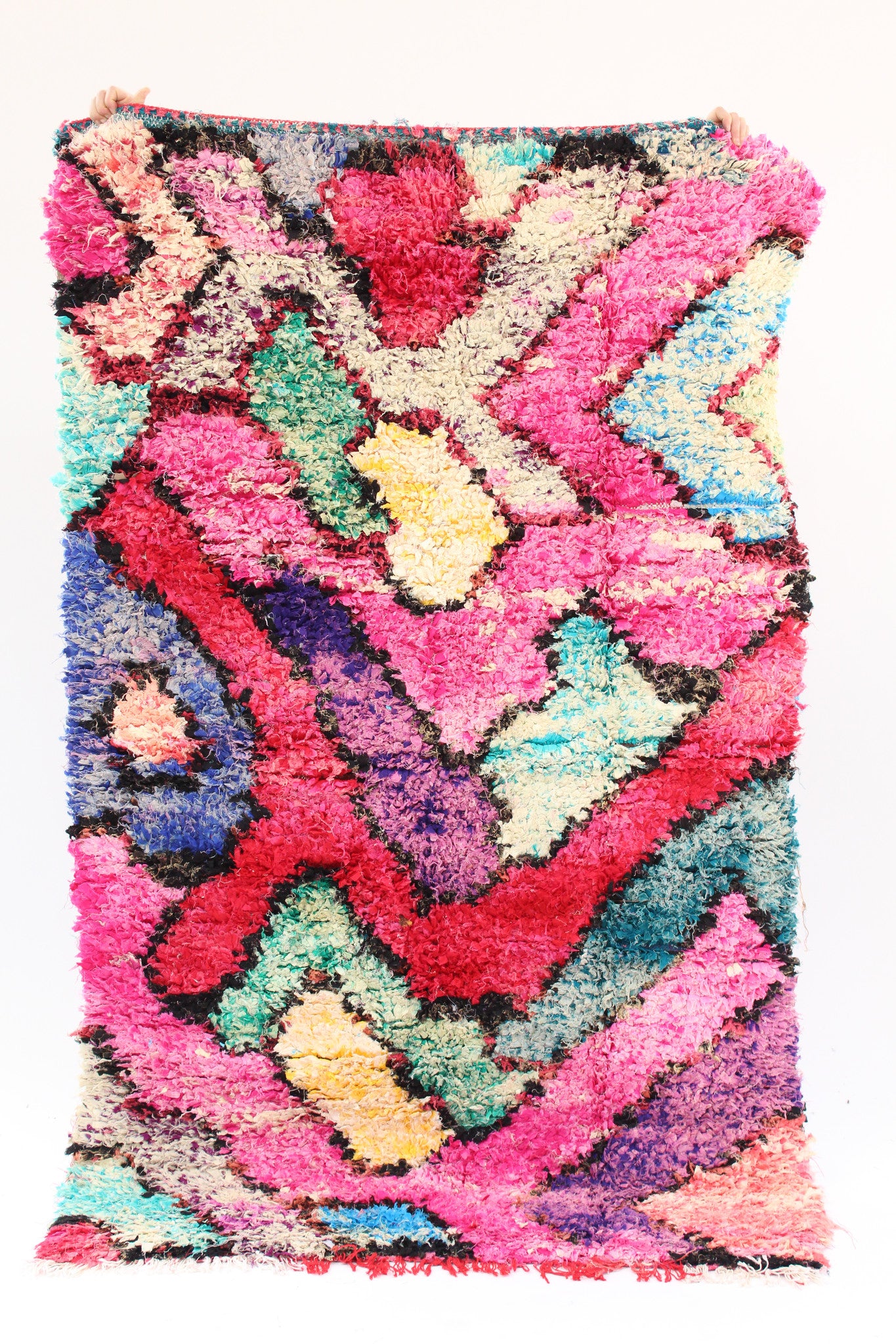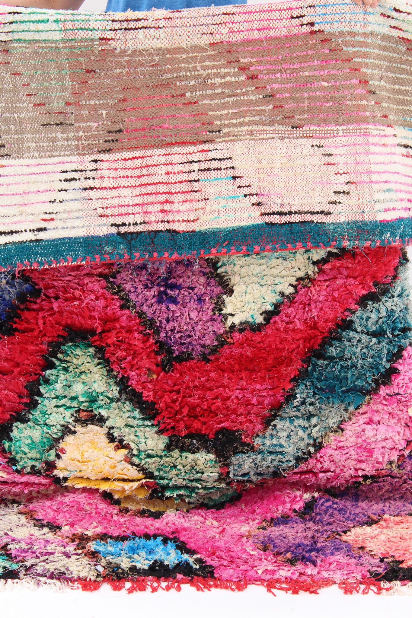 Morocco's Berber craft Boucherouite rugs. Can also be hung on walls. Authentic vintage rugs that make a colorful and warm statement. Made from sustainable materials by local artisans – including cotton, nylon and wool. Each is one of a kind.