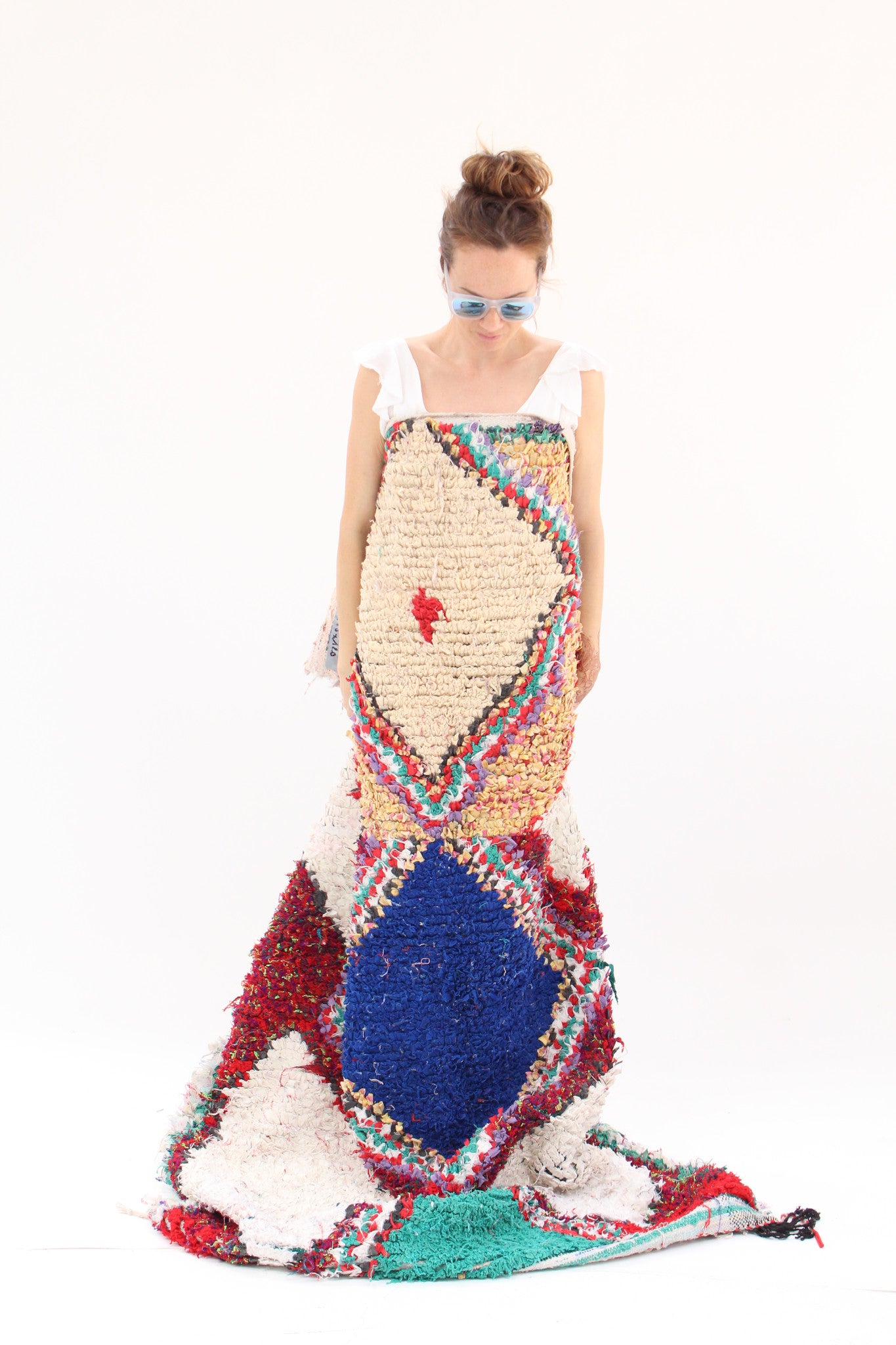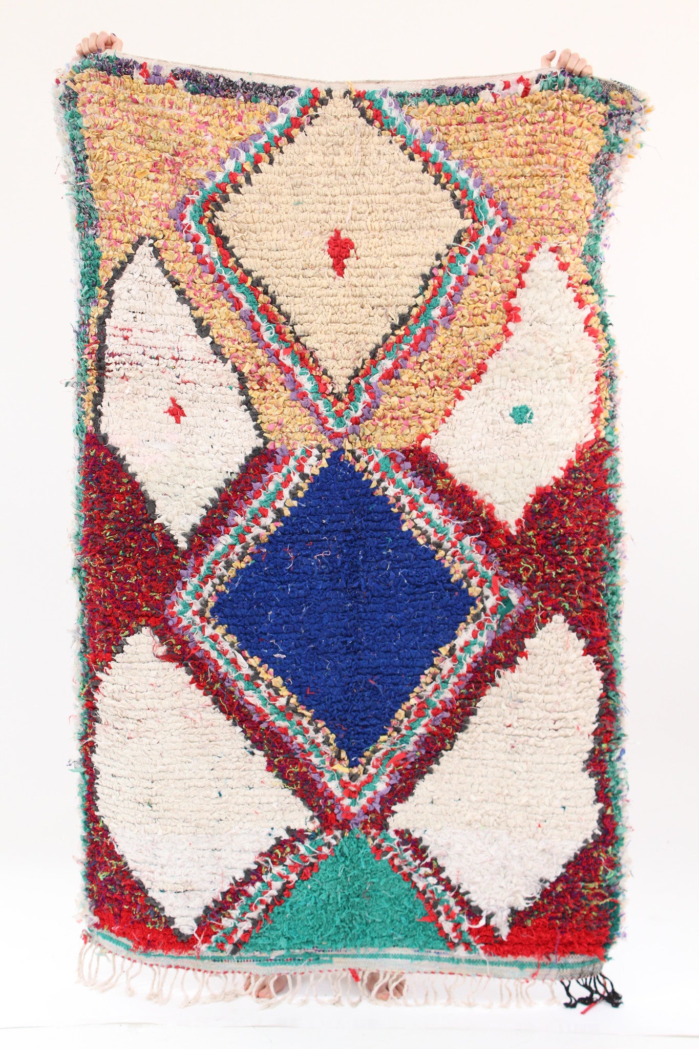 Morocco's Berber craft Boucherouite rugs. Can also be hung on walls. Authentic vintage rugs that make a colorful and warm statement. Made from sustainable materials by local artisans – including cotton, nylon and wool. Each is one of a kind.