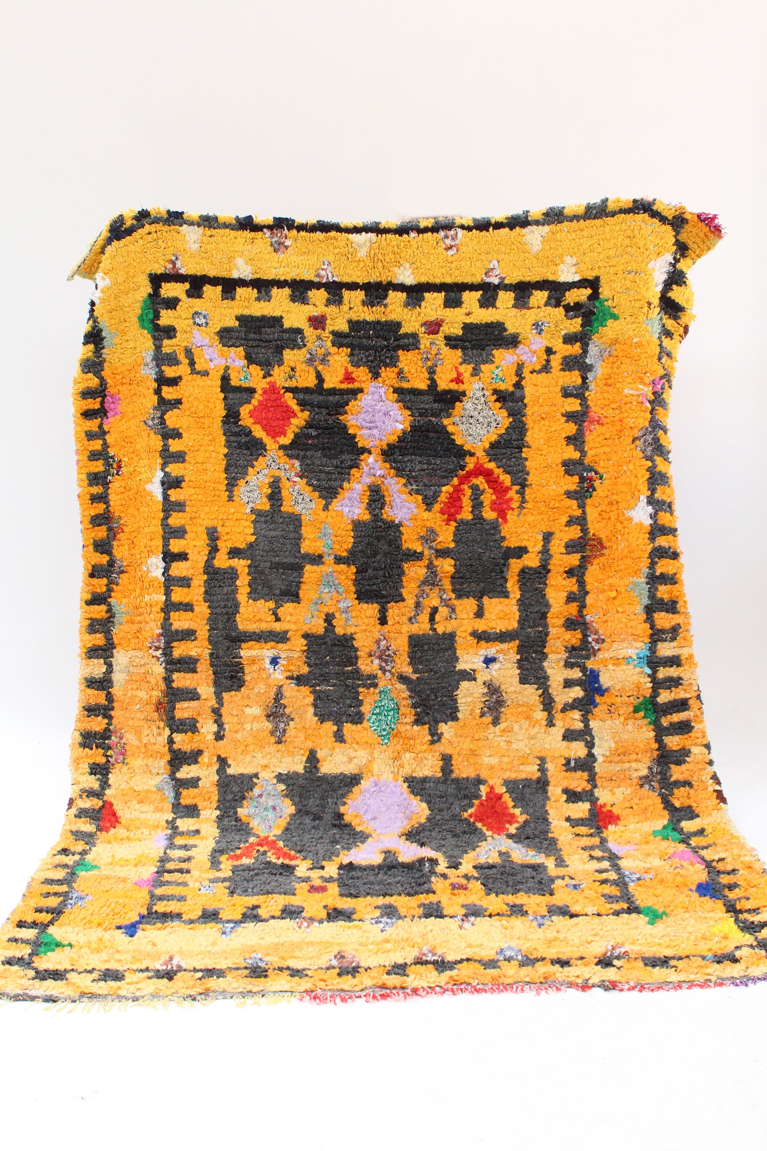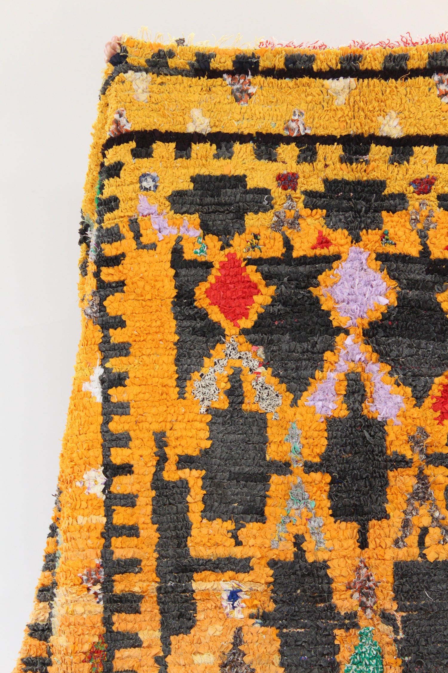 Morocco's Berber craft Boucherouite rugs. Can also be hung on walls. Authentic vintage rugs that make a colorful and warm statement. Made from sustainable materials by local artisans – including cotton, nylon and wool. Each is one of a kind.