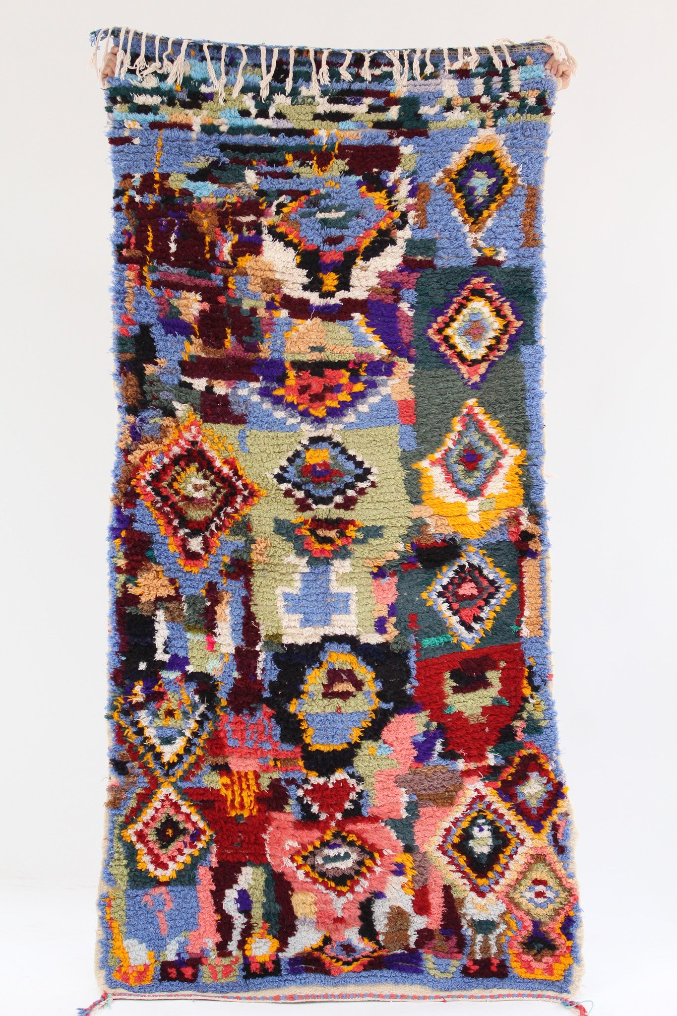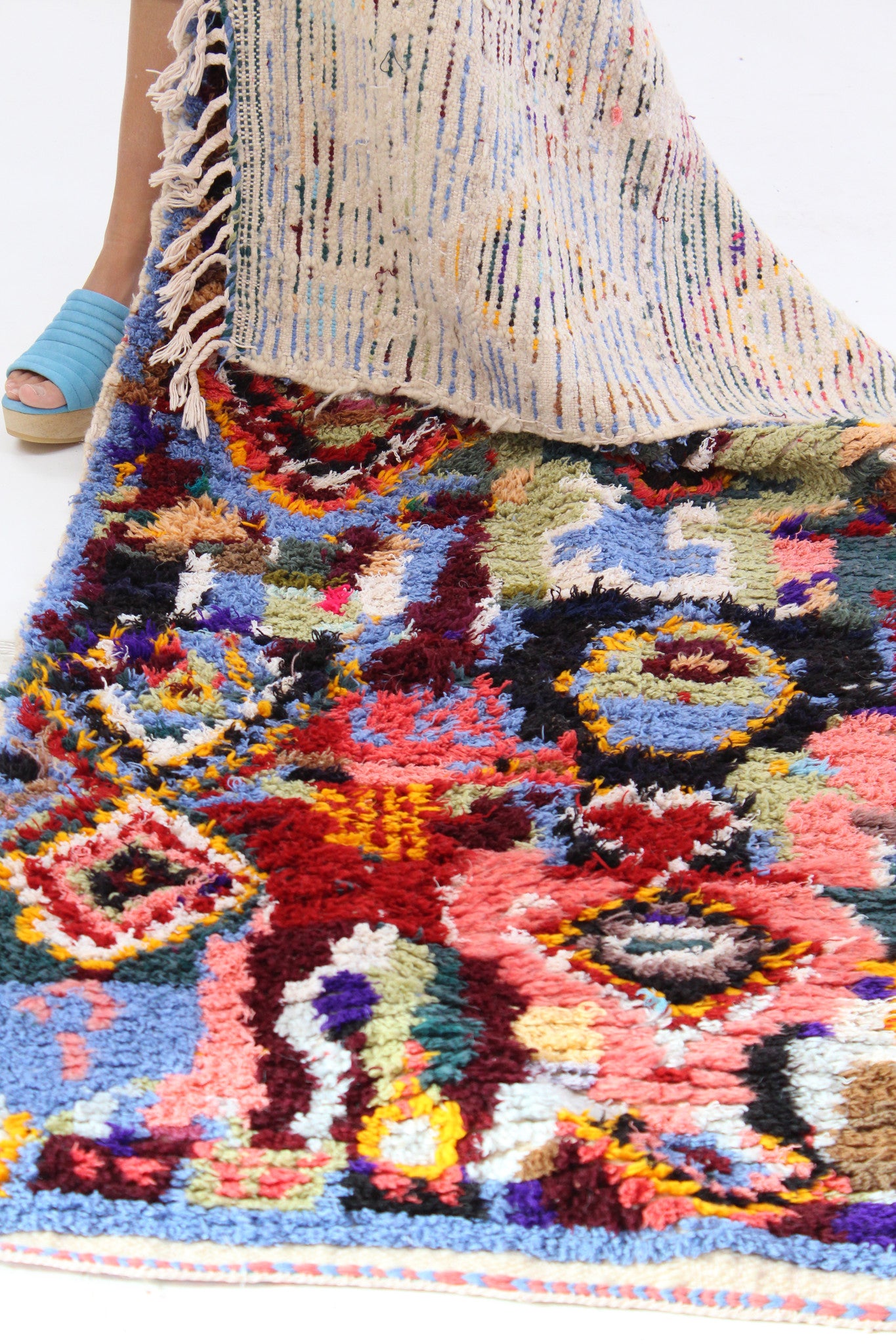 Morocco's Berber craft Boucherouite rugs. Can also be hung on walls. Authentic vintage rugs that make a colorful and warm statement. Made from sustainable materials by local artisans – including cotton, nylon and wool. Each is one of a kind.