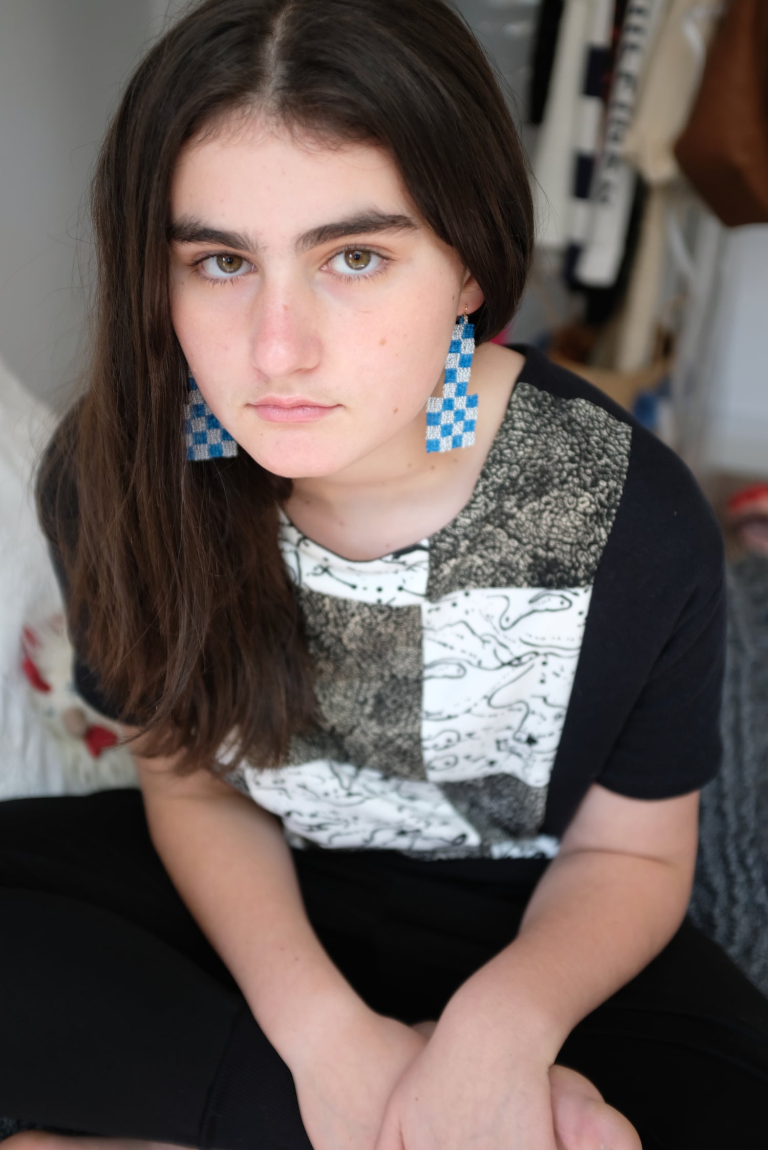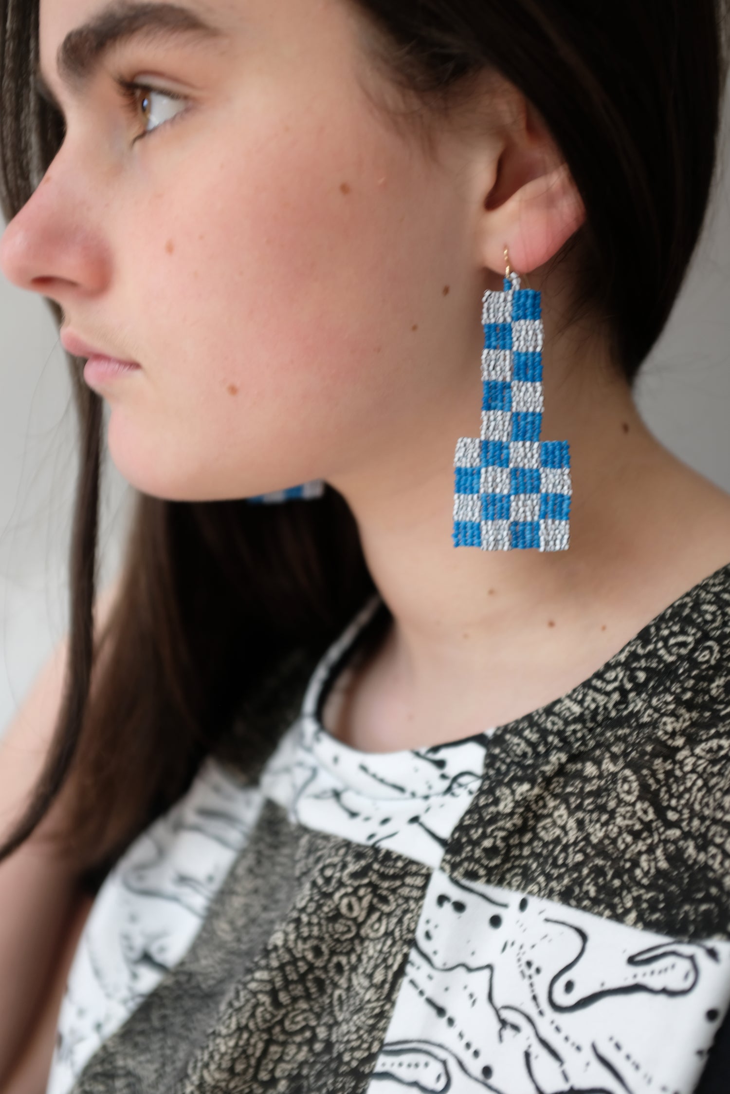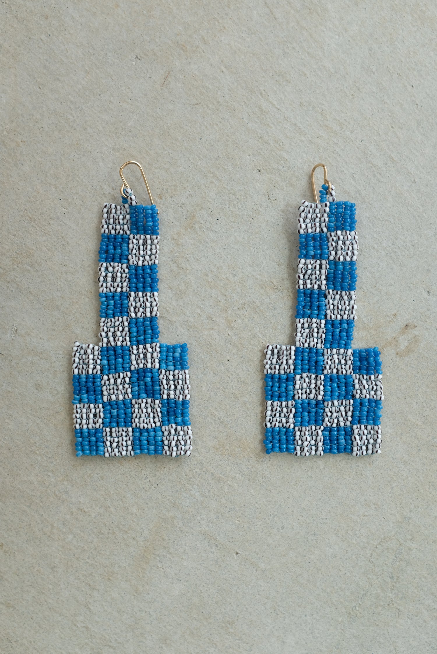 Checkerboard Beaded Earrings Blue