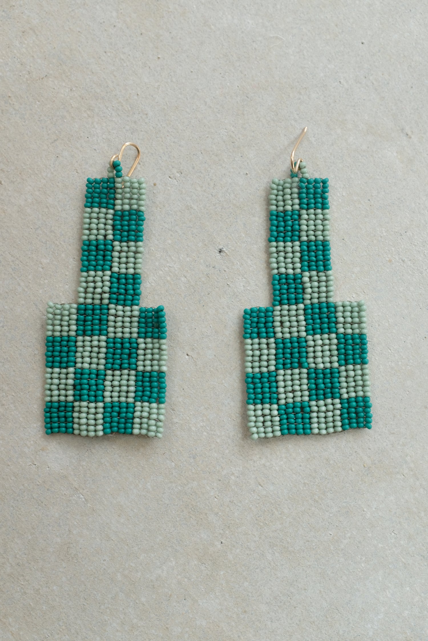 Checkerboard Beaded Earrings Green