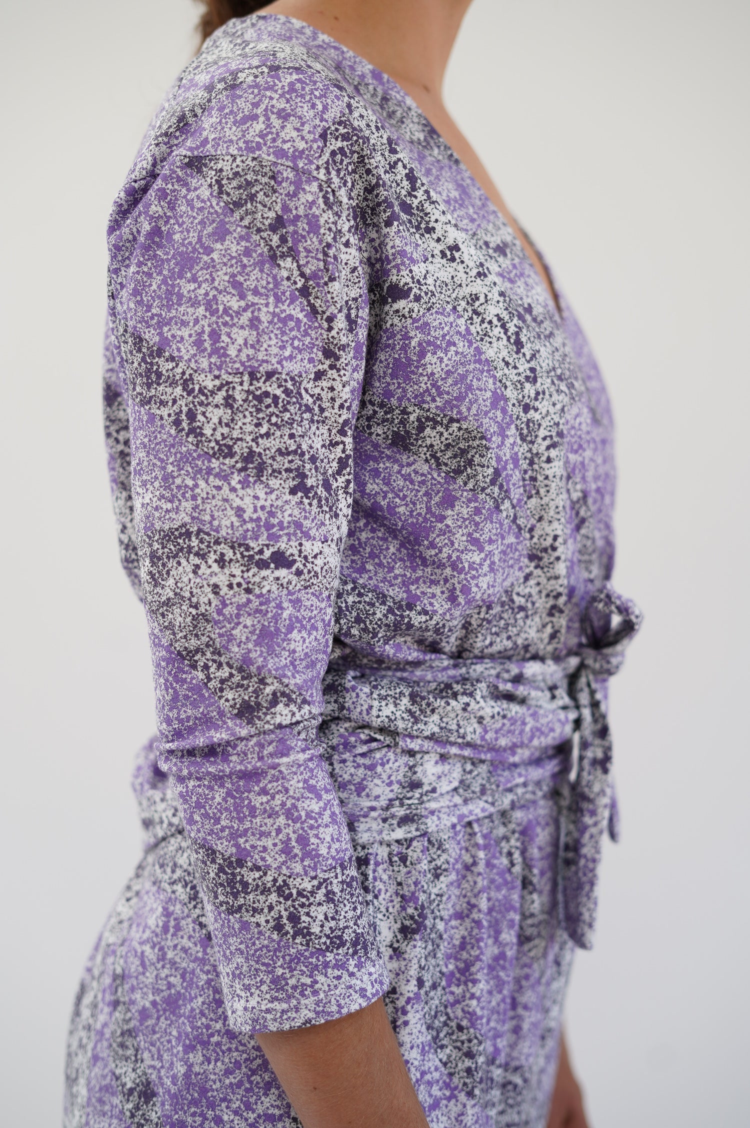Organic Japanese cotton, hand dyed in small batches. Versatile wearings, tie in front, back, wear fitted or loose, or open. 3/4 sleeve, wear to the office or the gym!