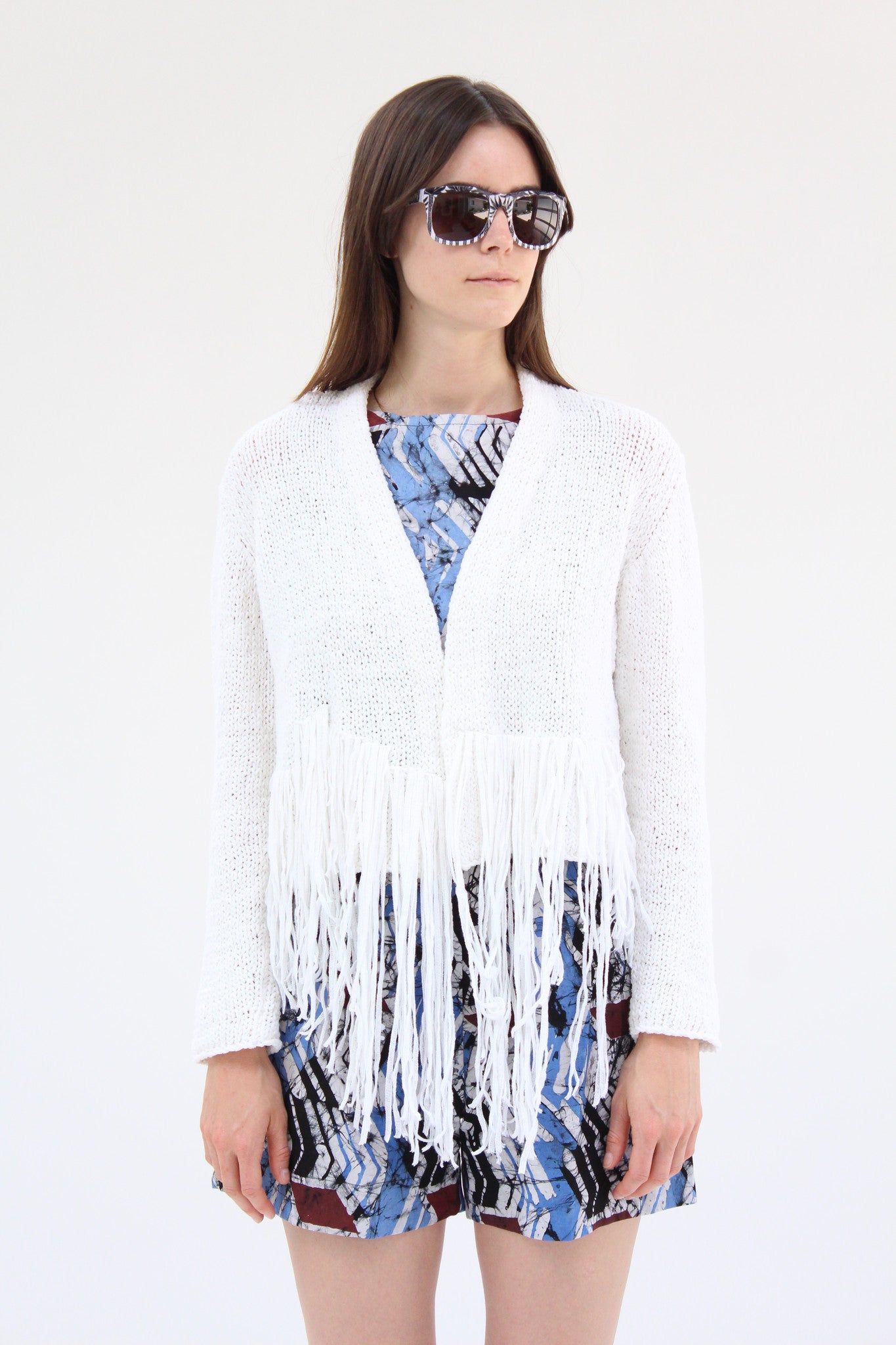 OMG we're crazy for this knit summer jacket. 100% Organic cotton, handknit, amazingly gorgeous, fringe front hem, cropped back hem. One size fits most. Exclusive to Beklina.
