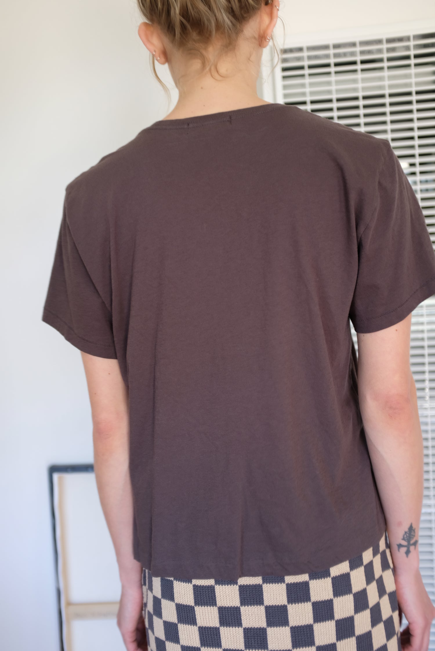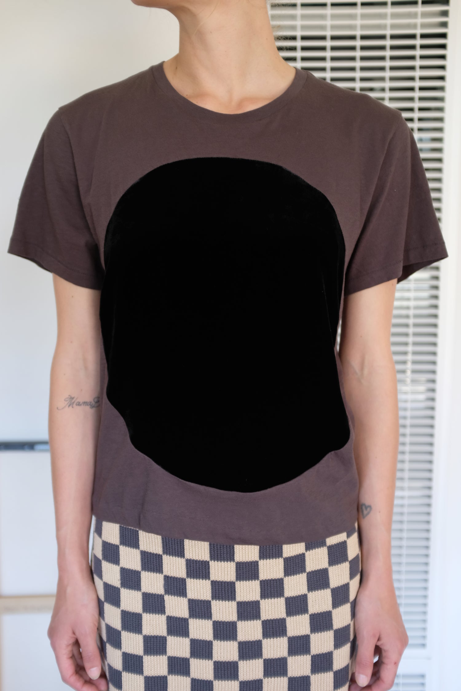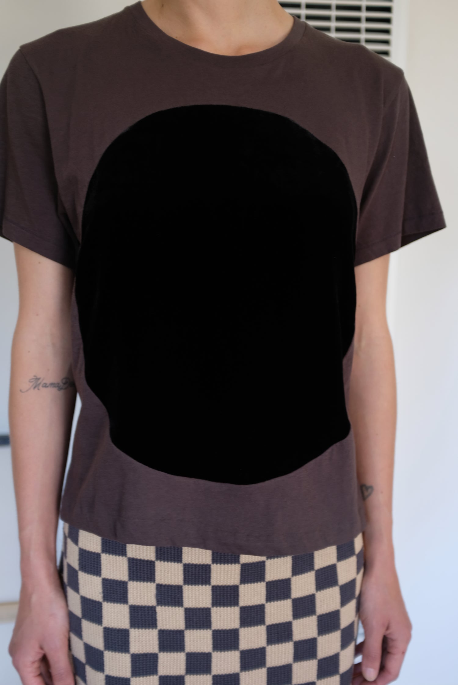 Beklina exclusive, slightly cropped version made just for us. 100% Cotton, jersey boxy fitting tee with hand sewn velvet detail. Unisex.