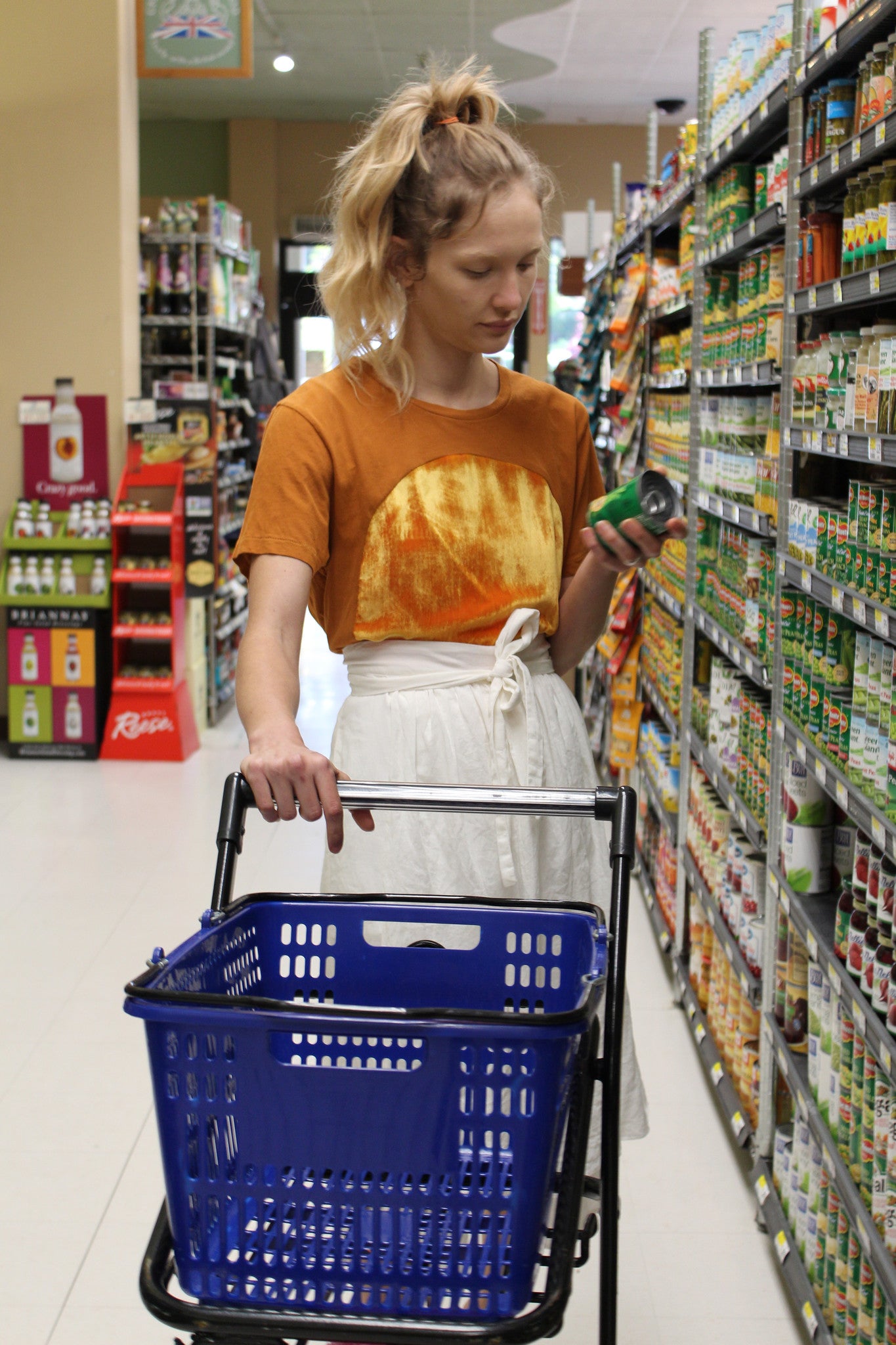 100% Cotton, jersey boxy fitting tee with hand sewn velvet detail. Unisex
