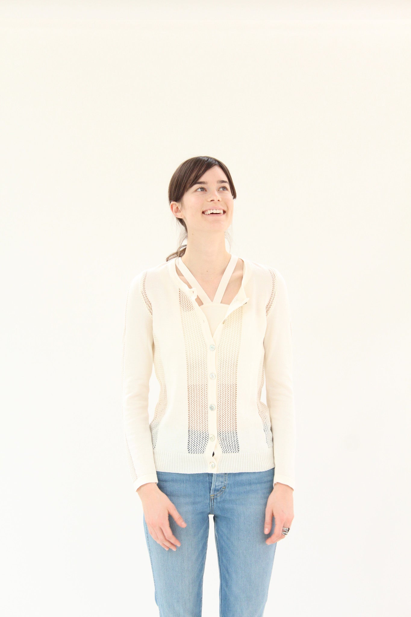 Classic cardigan, lace panel design. 100% Egyptian organic cotton. Amazing soft.