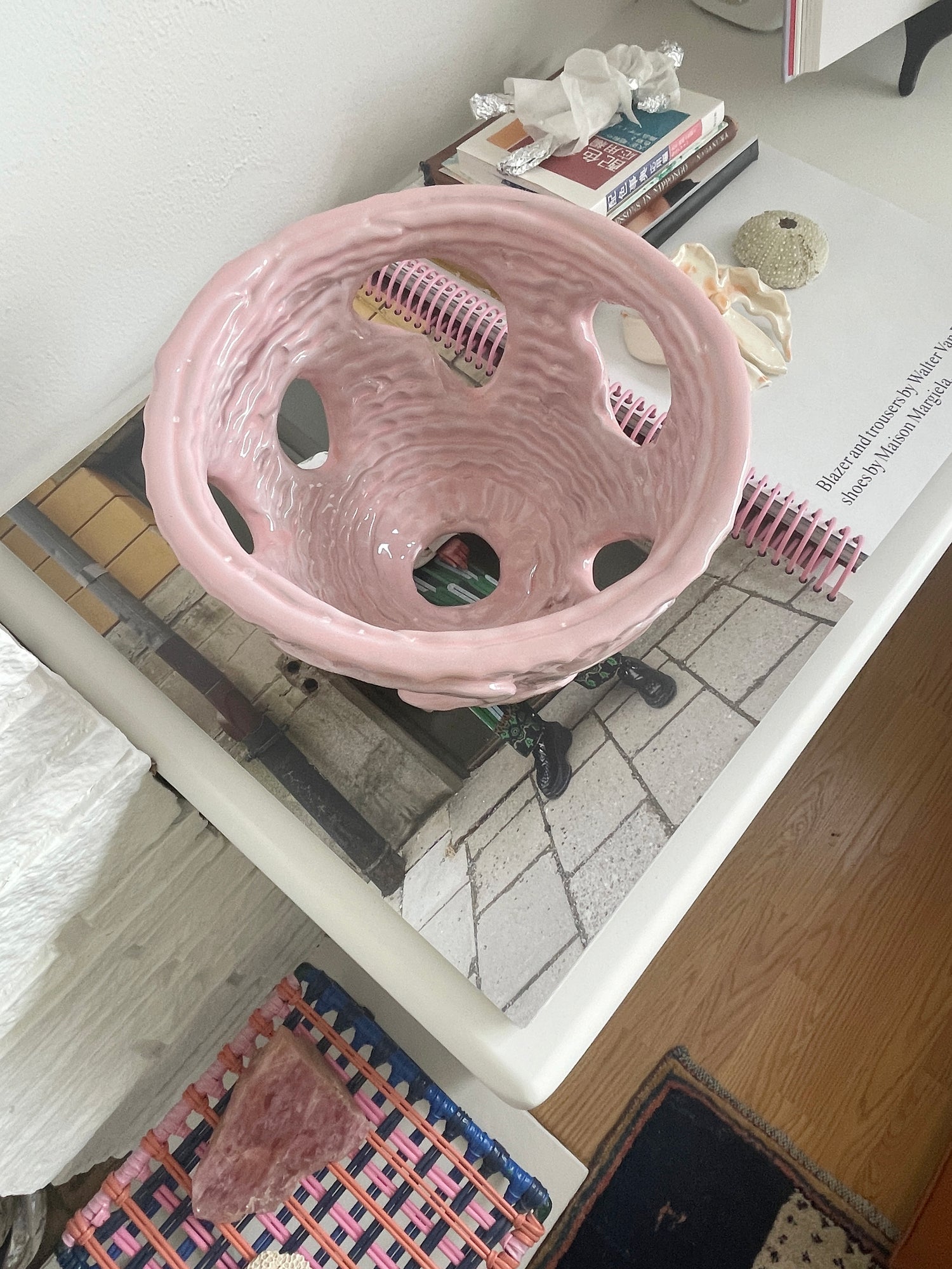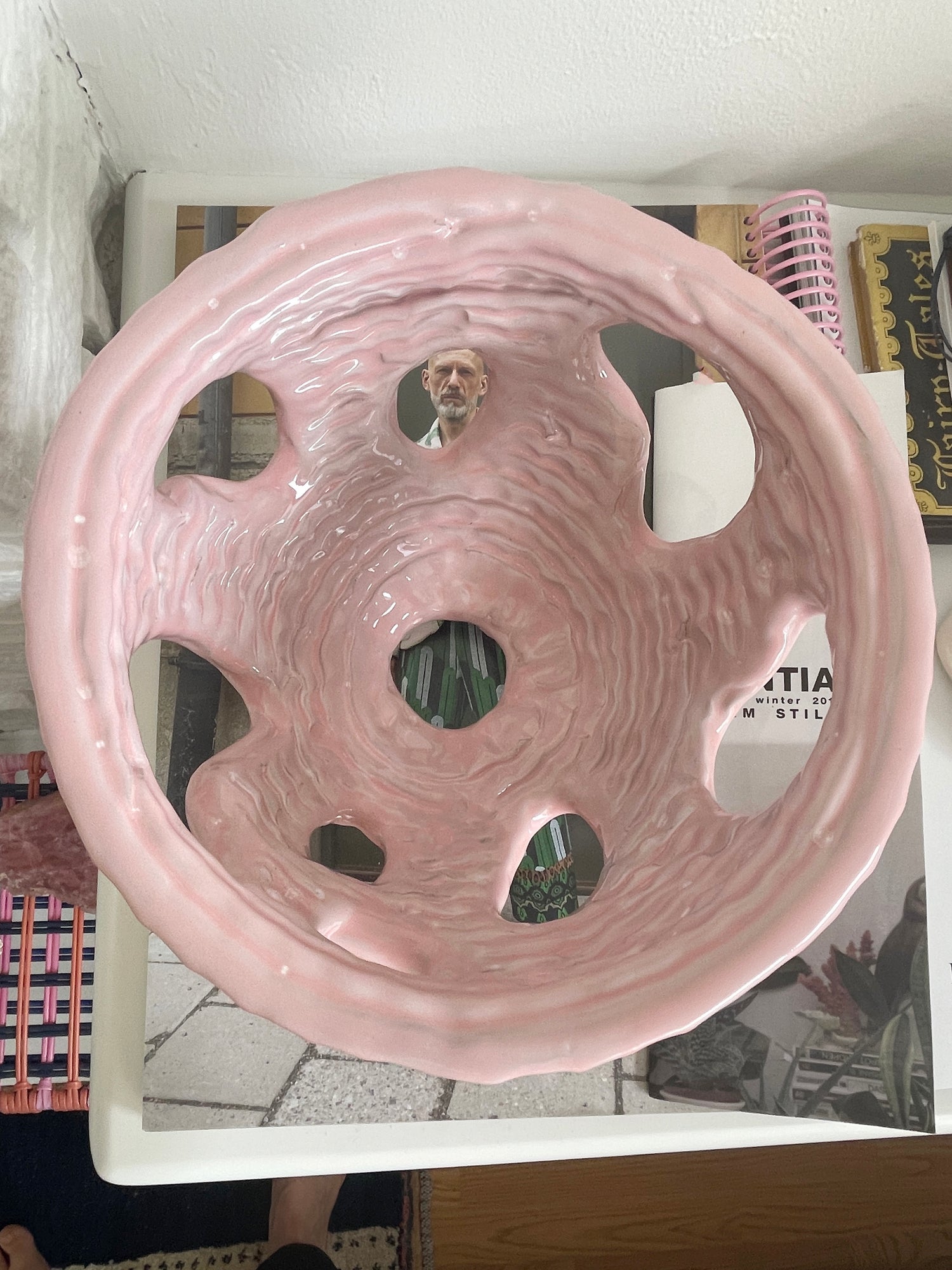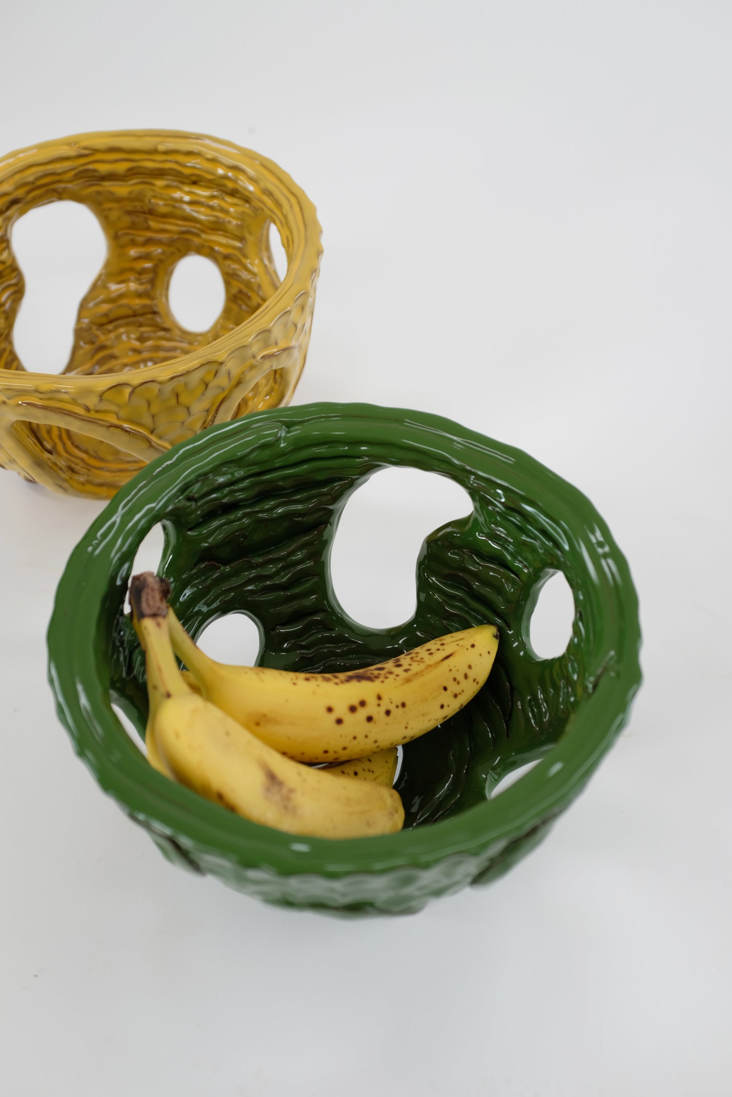 Large fruit bowl, glaze on clay. Size varies slightly as each bowl is hand-made by the artist and one of a kind. Holds a lot of fruit!