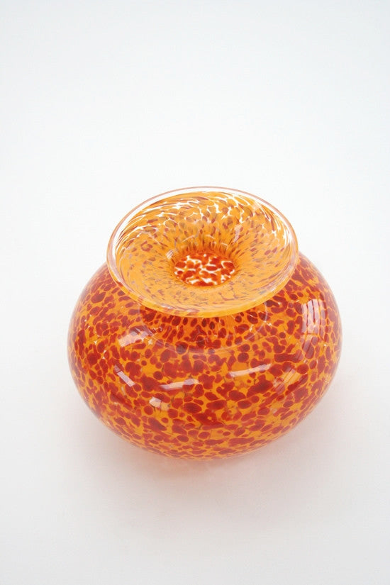 Handblown glass vase, red and orange, signed by artist and collectible. One of a kind.