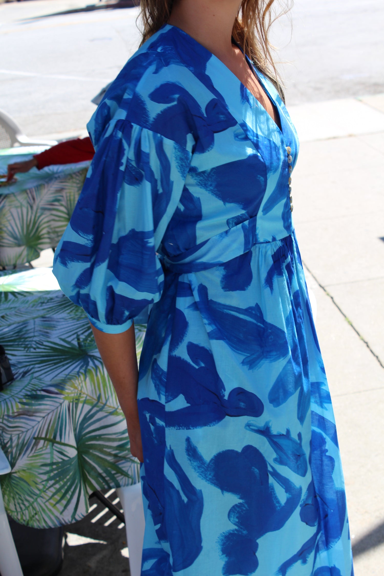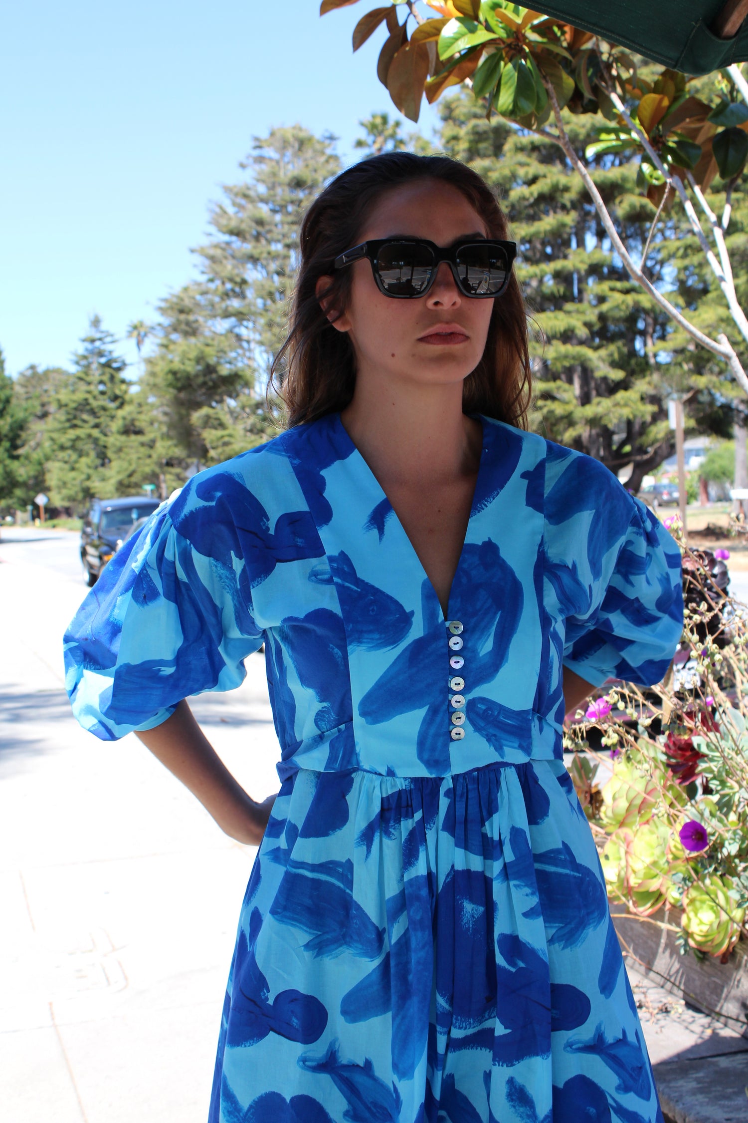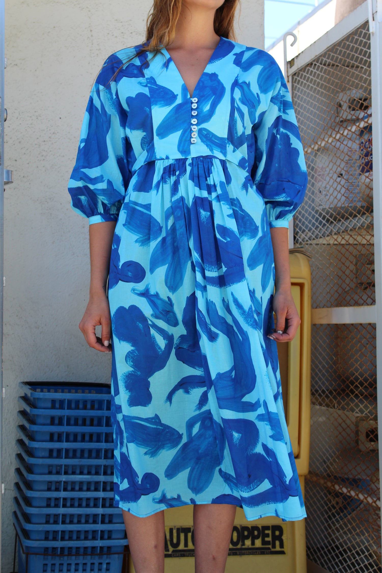 Heinui Edith Dress Aqua & Blue, Girls & Fish Print