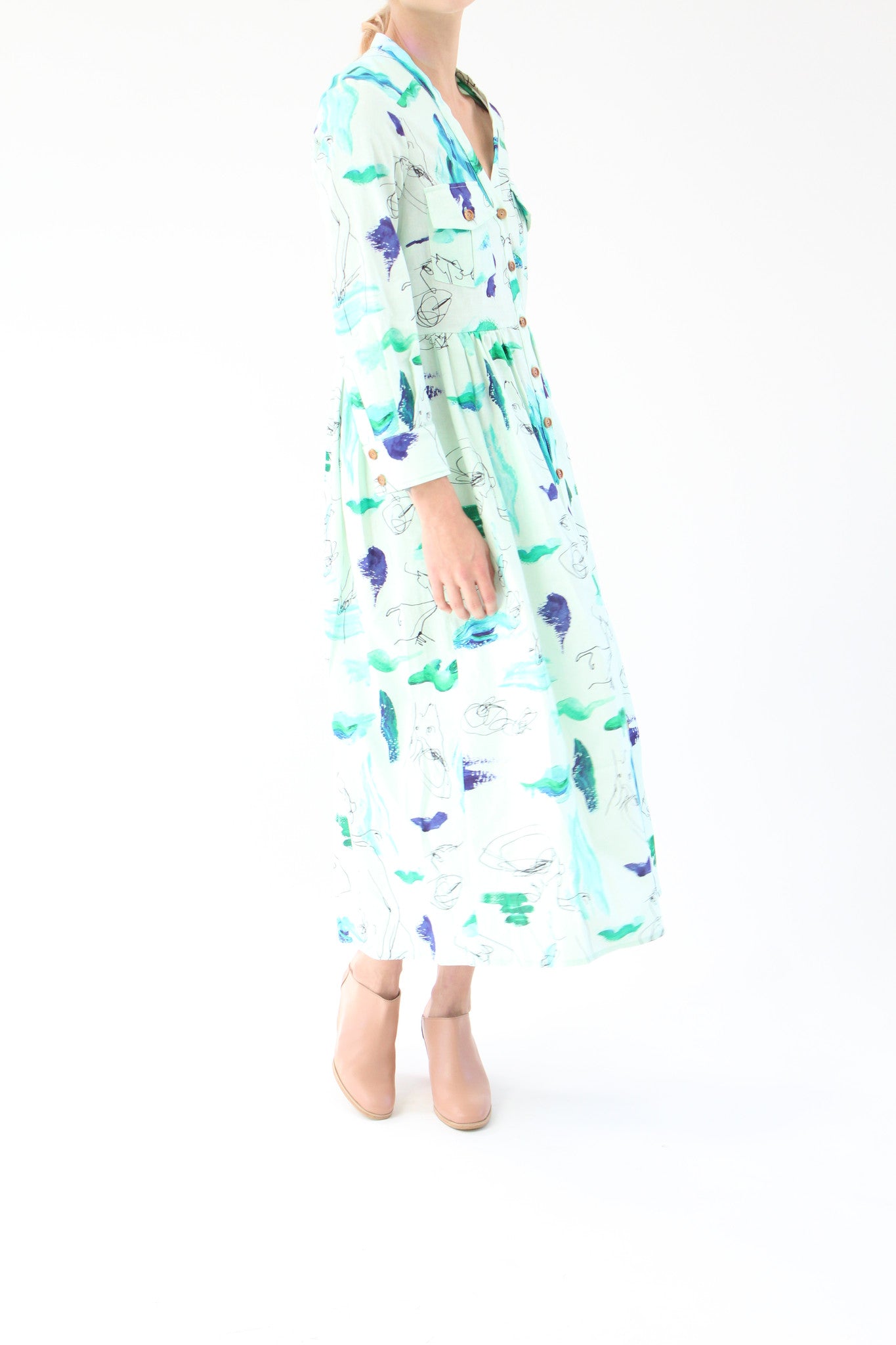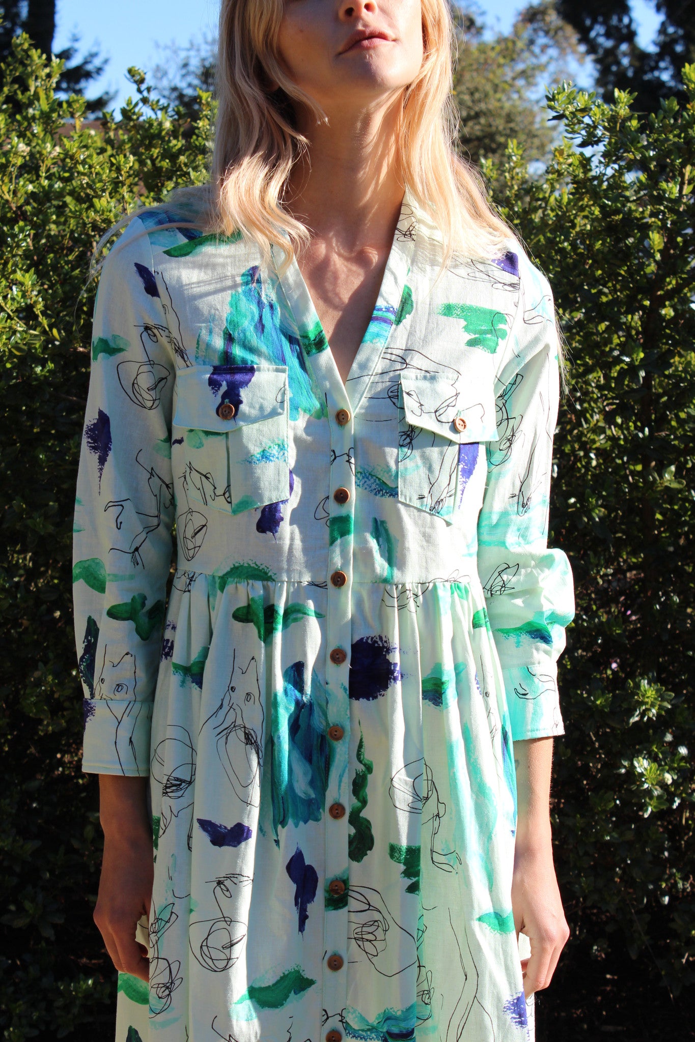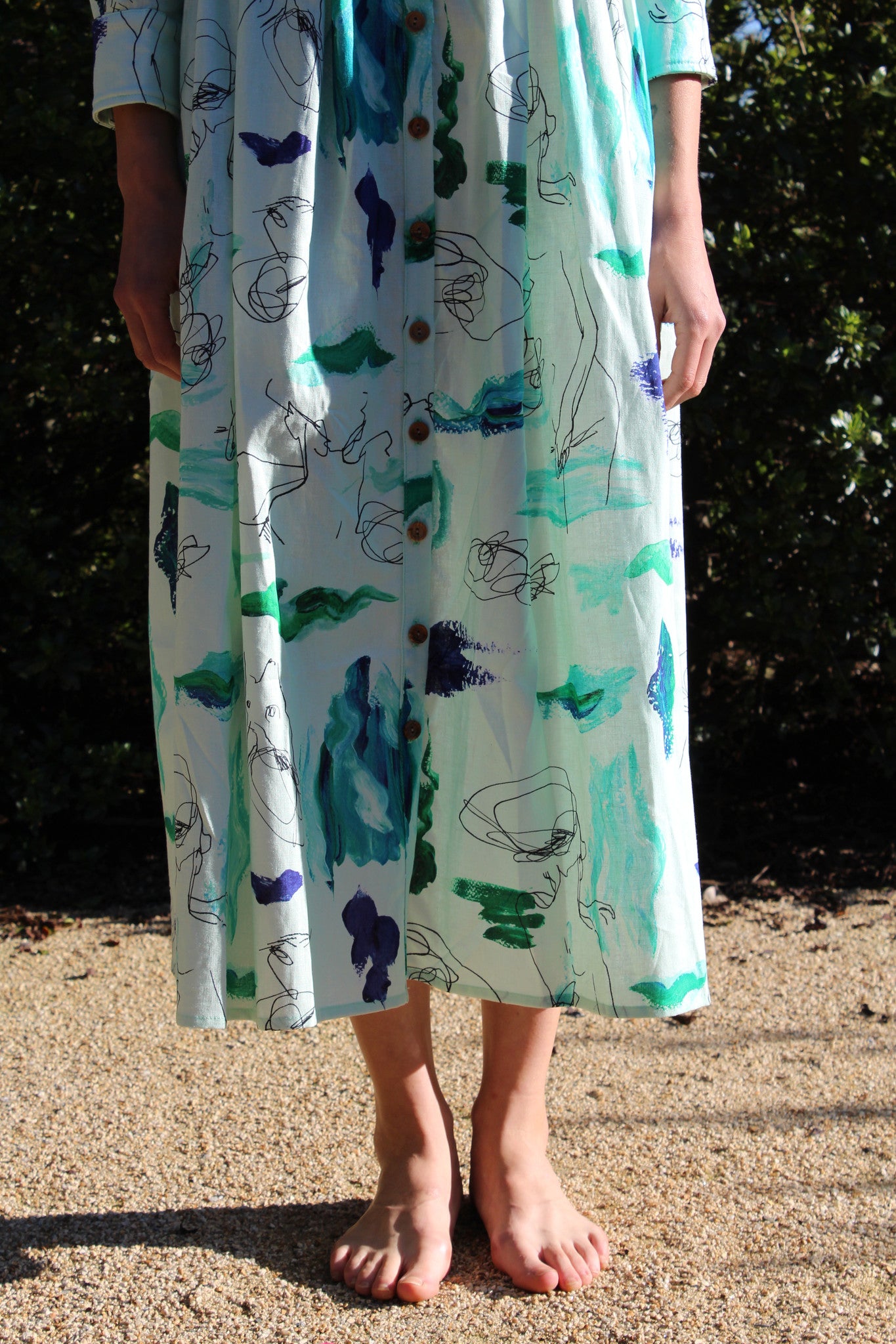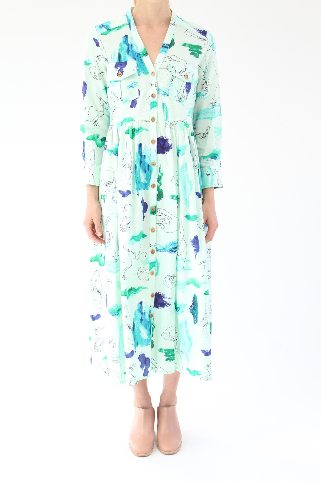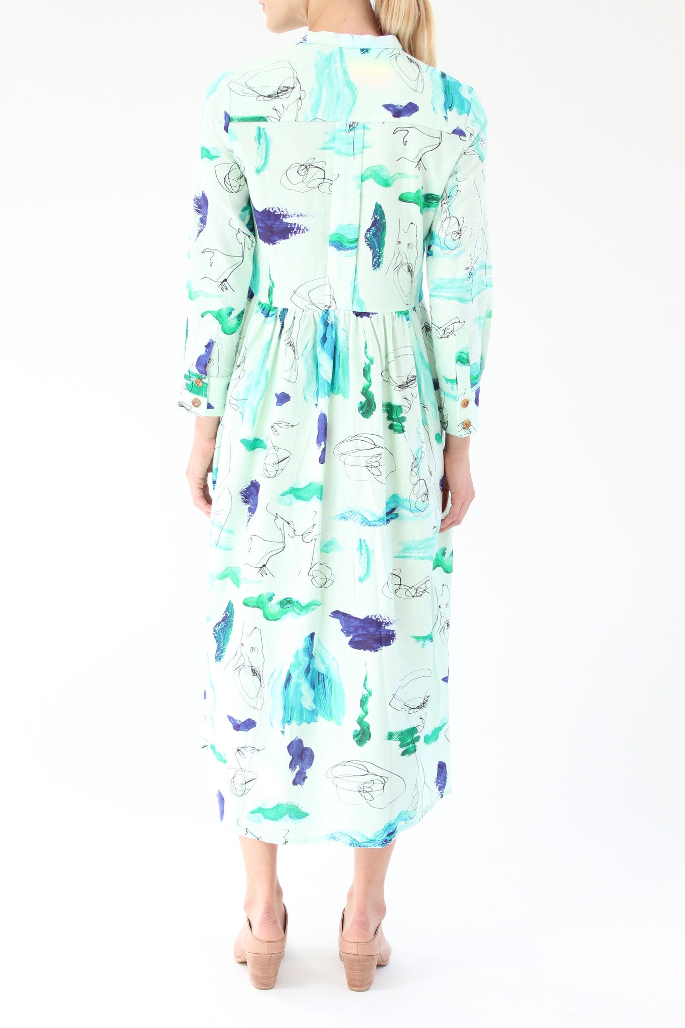 Heinui Nico Dress Mint Strokes Scribbles Print