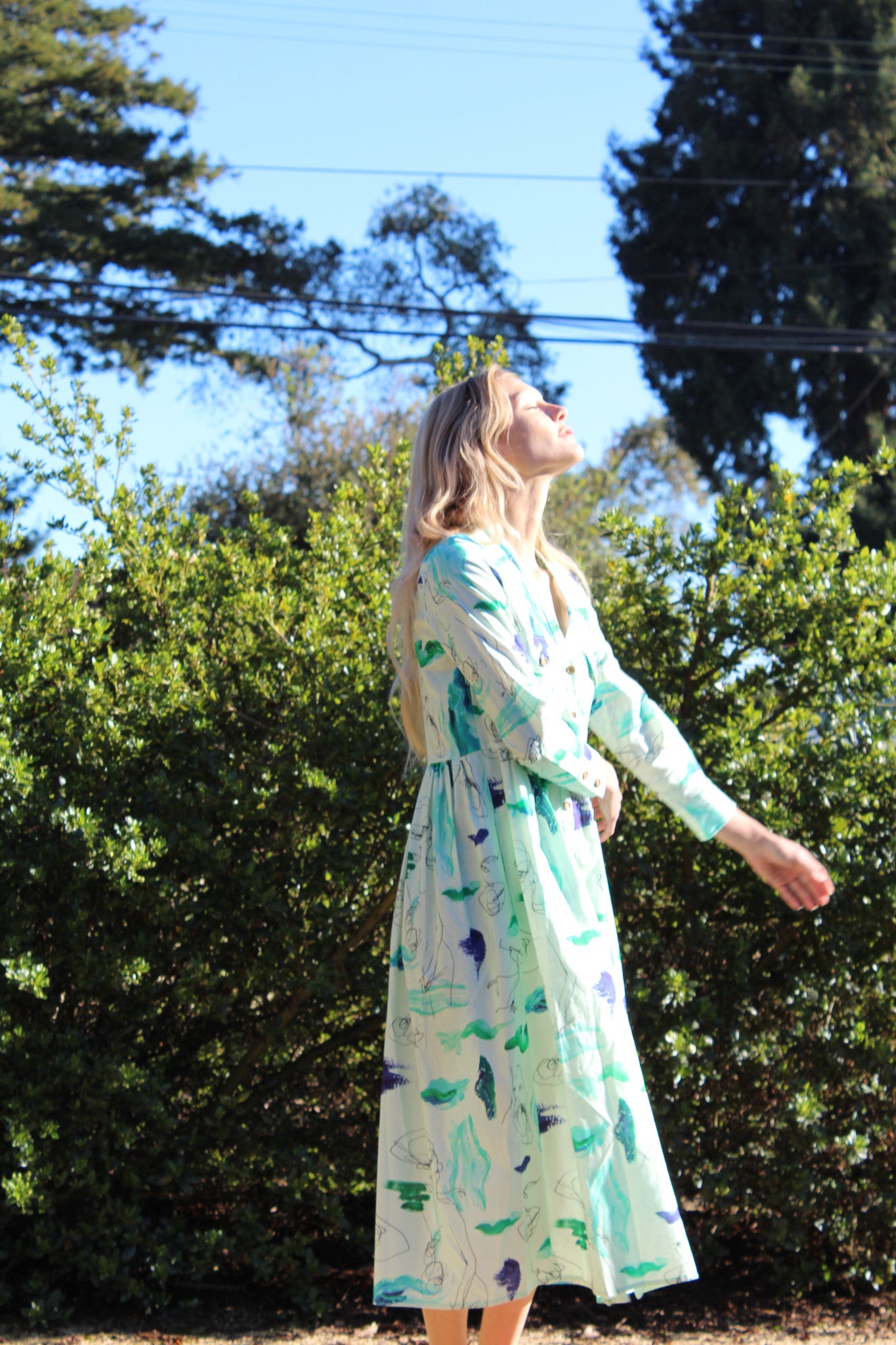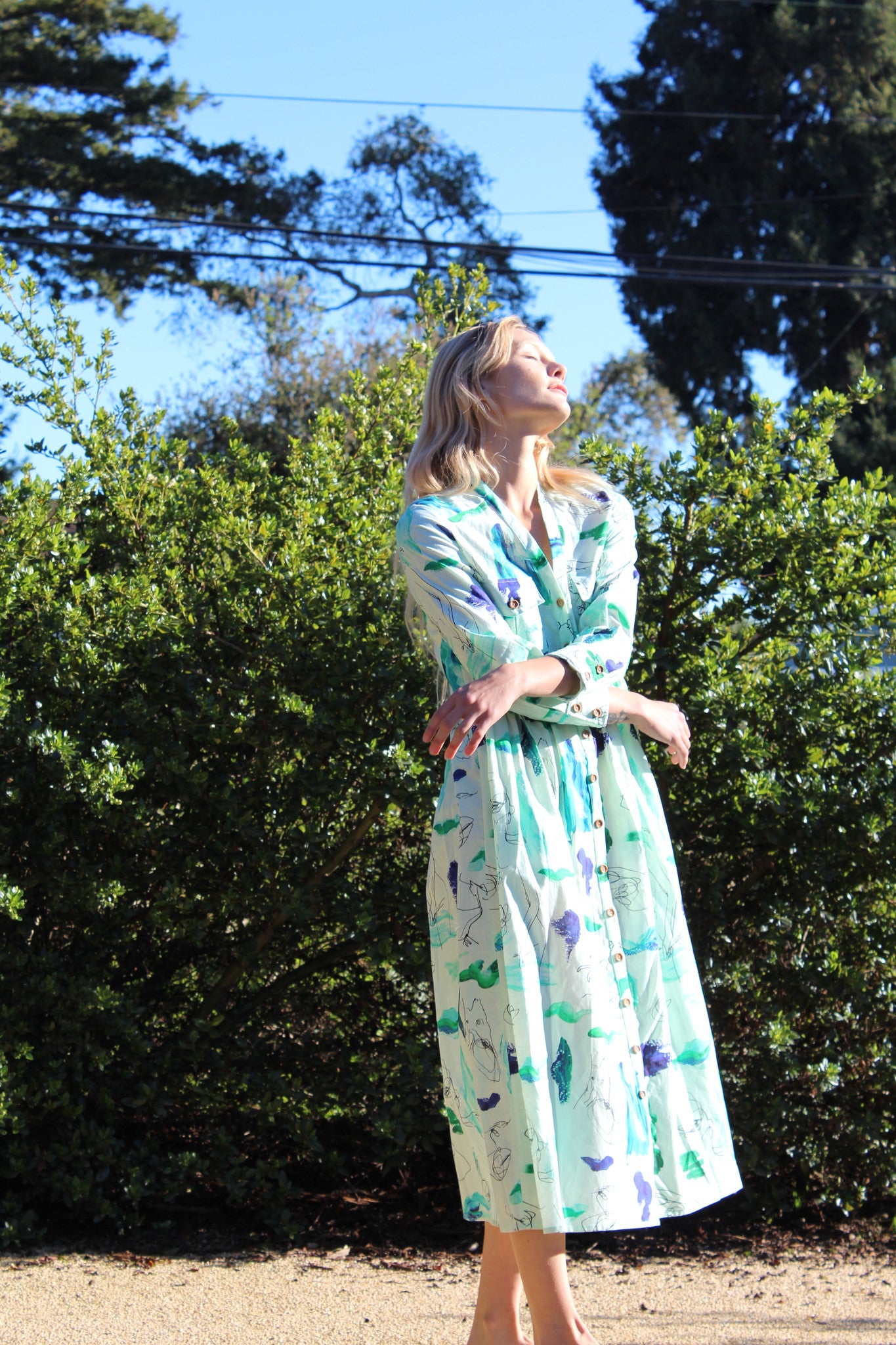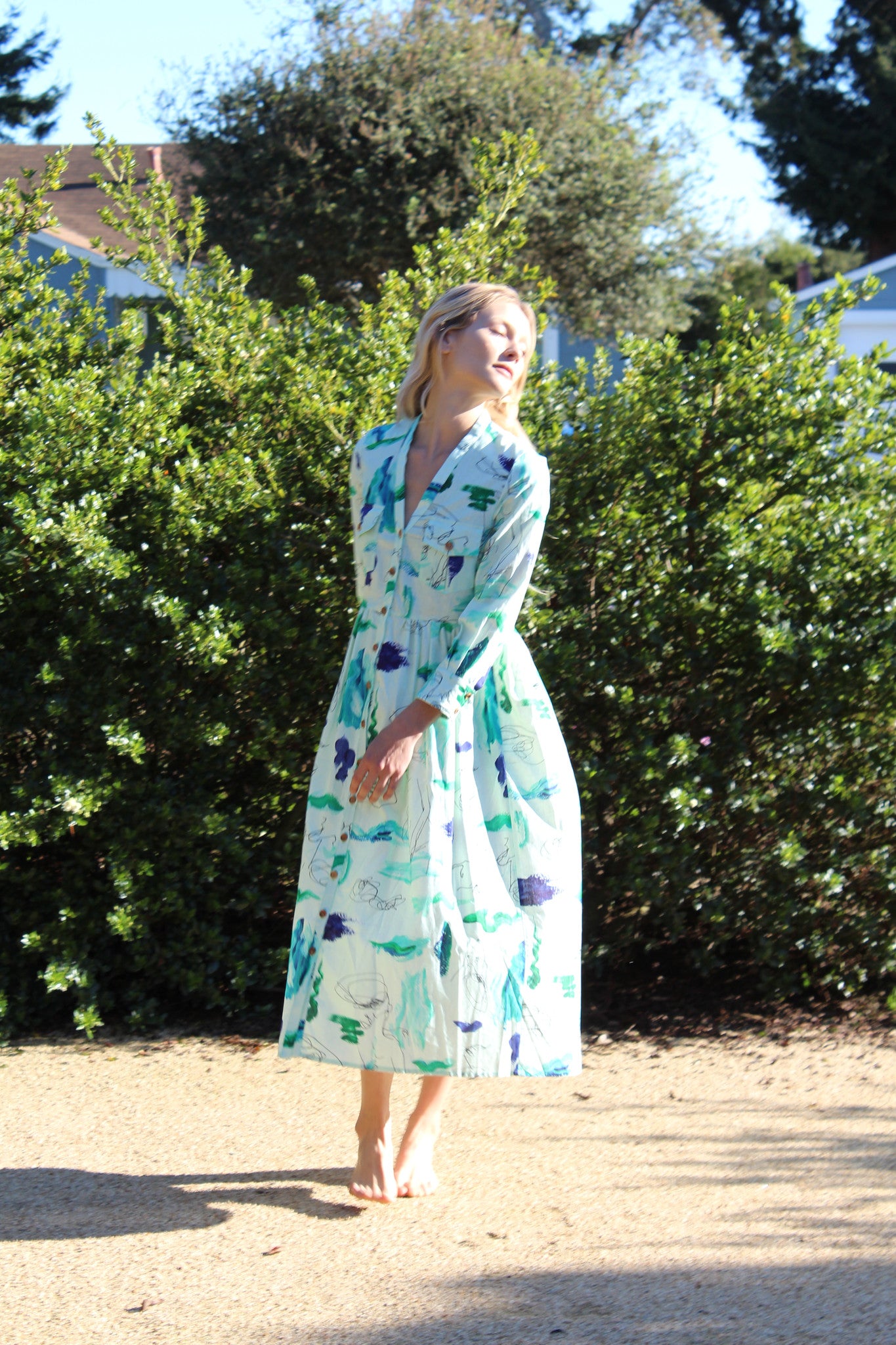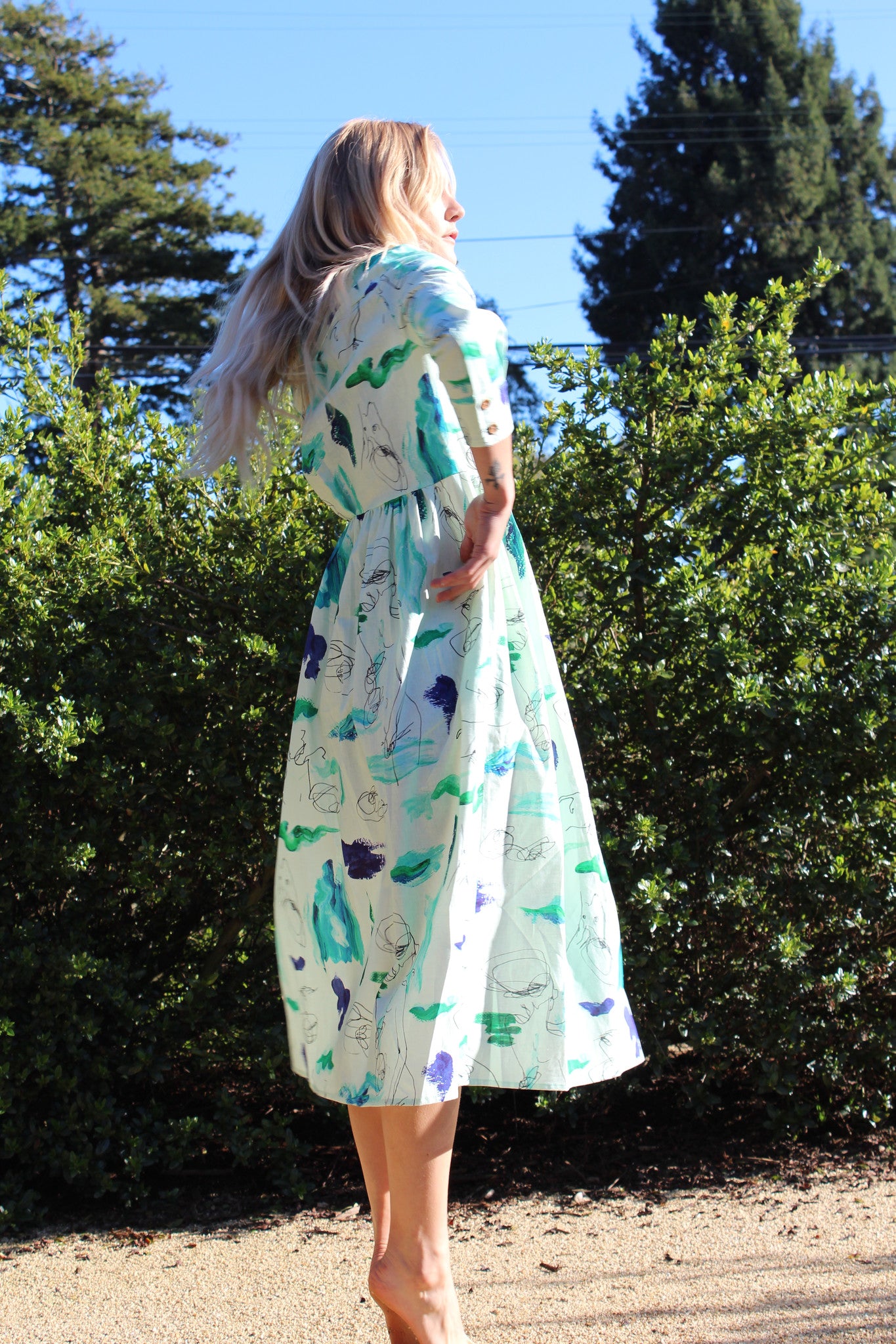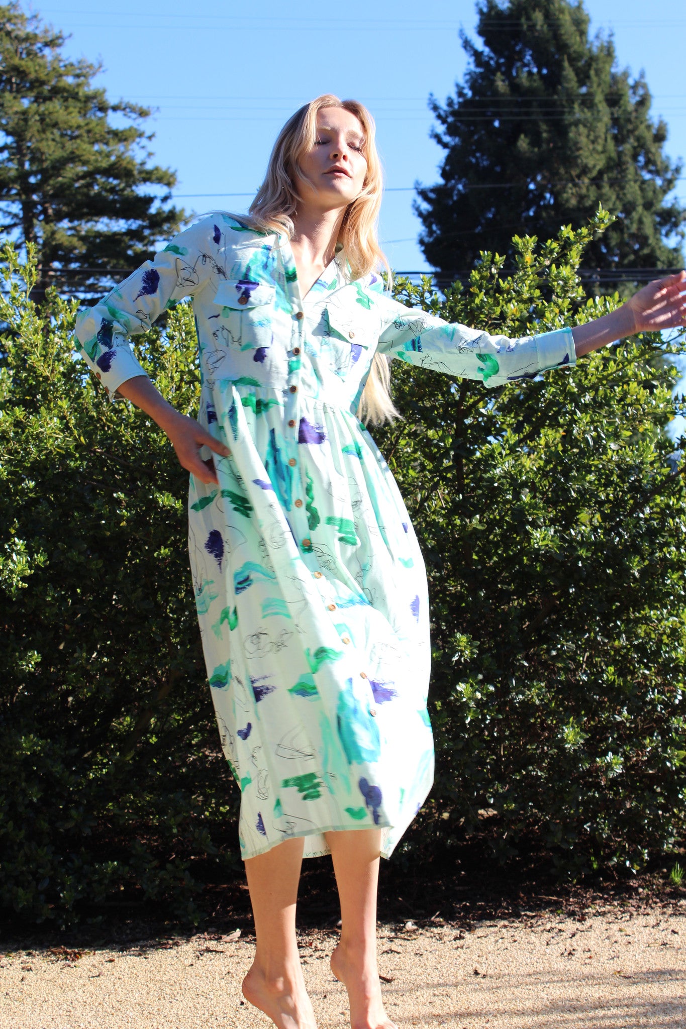Heinui Nico Dress Mint Strokes Scribbles Print