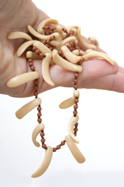 Very rare, beige tooth bone necklace. (Not real bones but vintage glass). So amazingly tribal and chic. Aprox. length 22 "