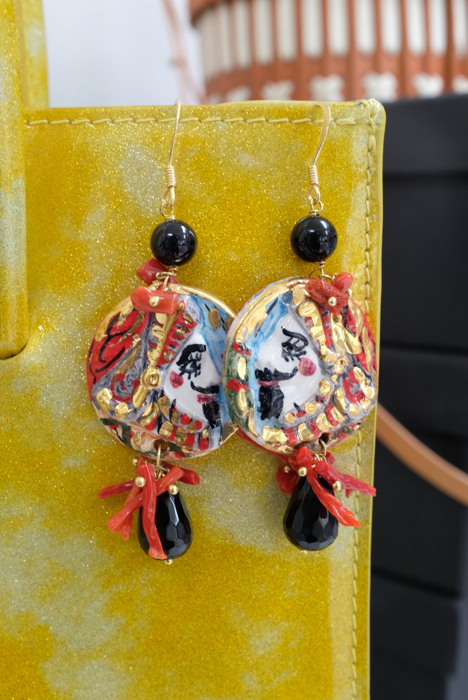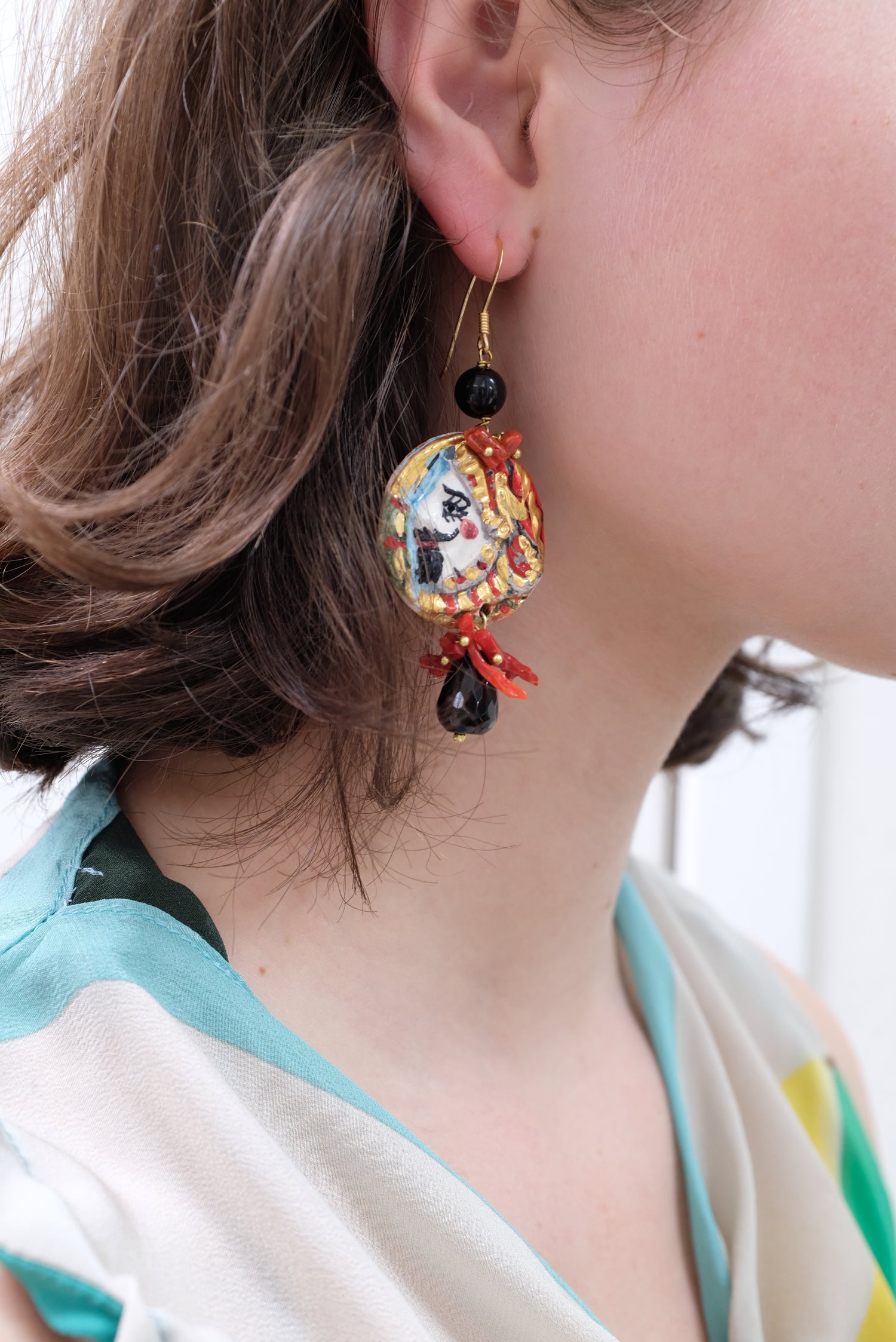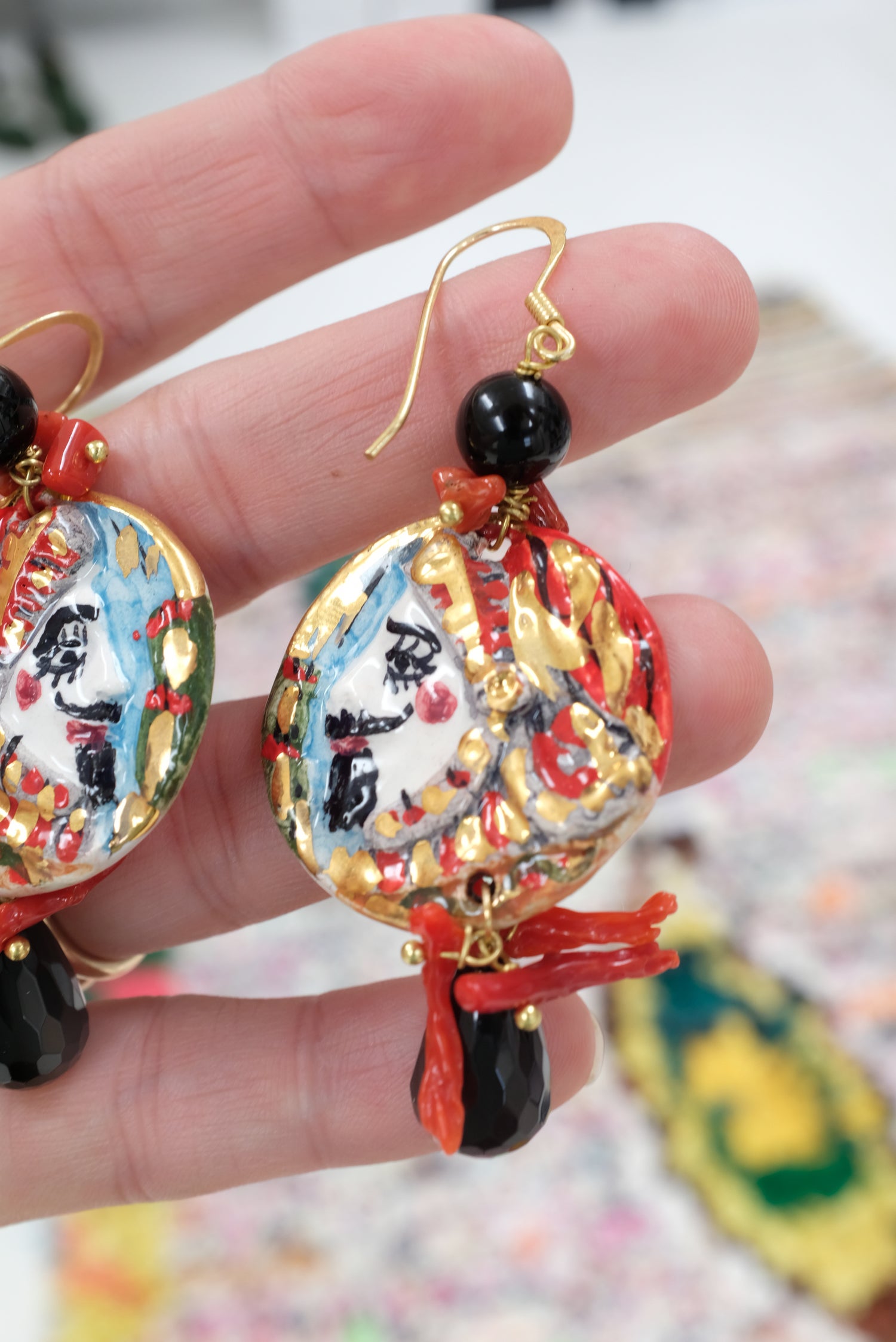 Italian Hand Painted Ceramic Earrings Faces