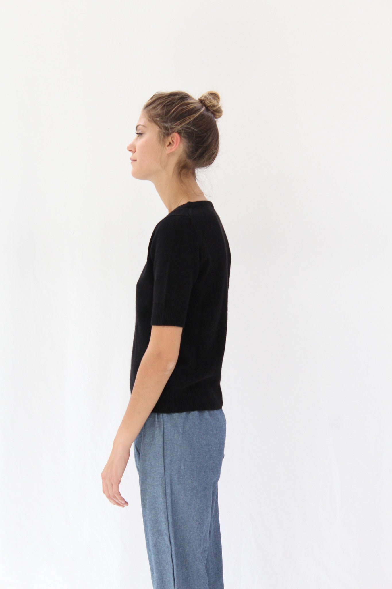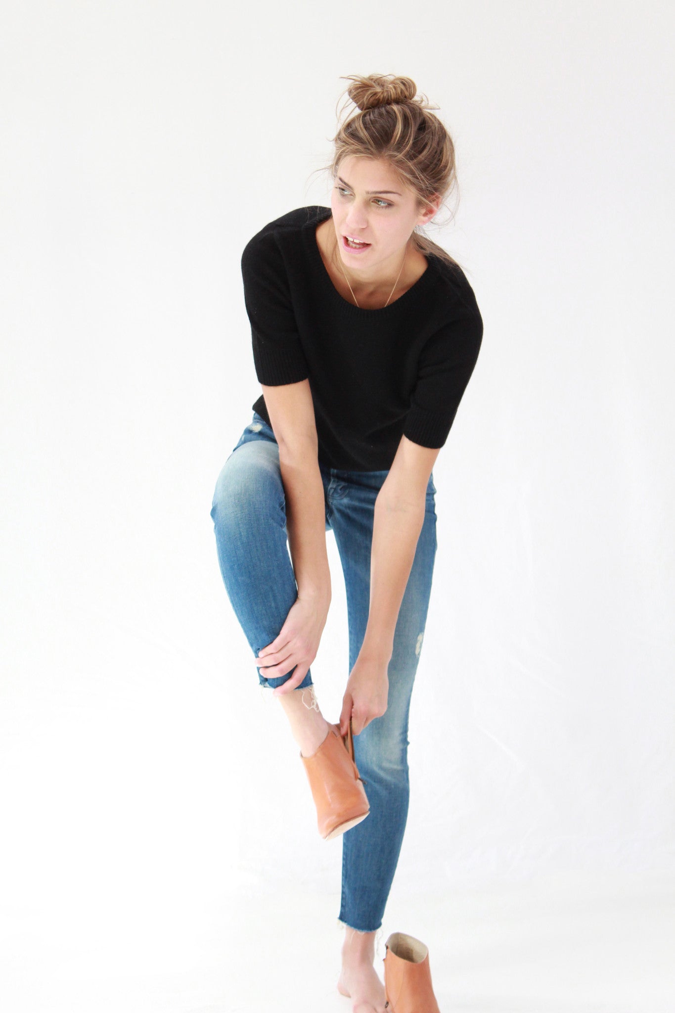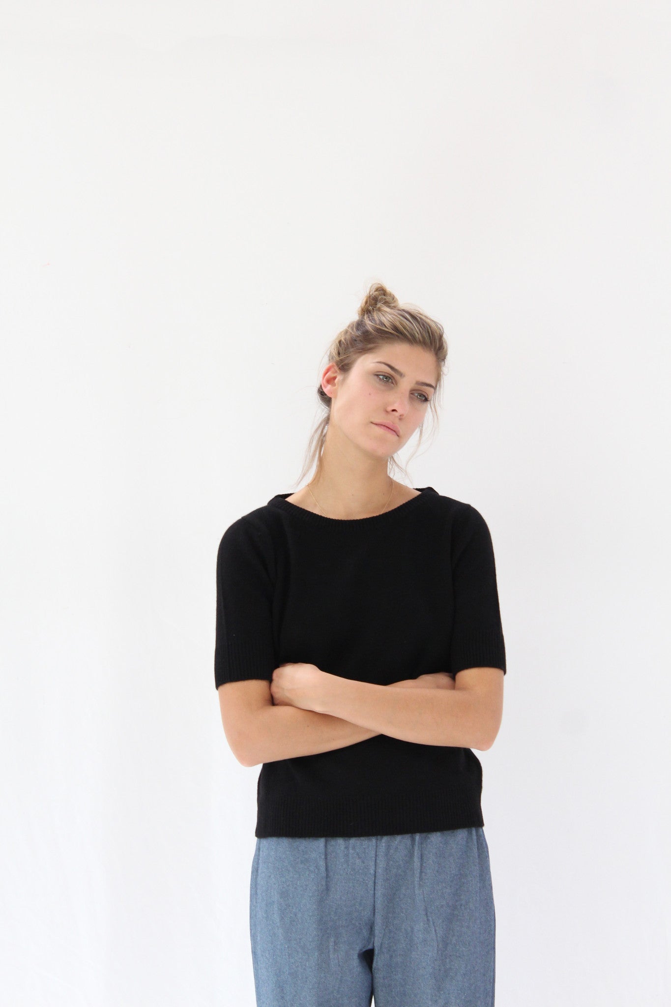 100% cashmere, nice medium weight, off the charts soft & luxurious, 3/4 sleeve, 2" cuff and hems. Exclusive to Beklina. Addy is wearing size small/medium and she is 5 10"