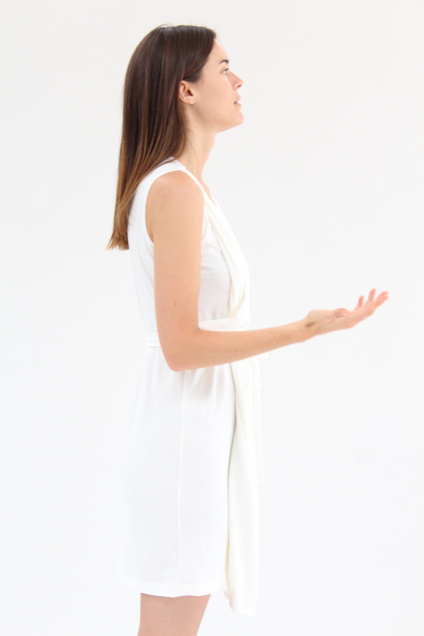 Lina Rennell Criss Cross Jersey Wrap Dress White