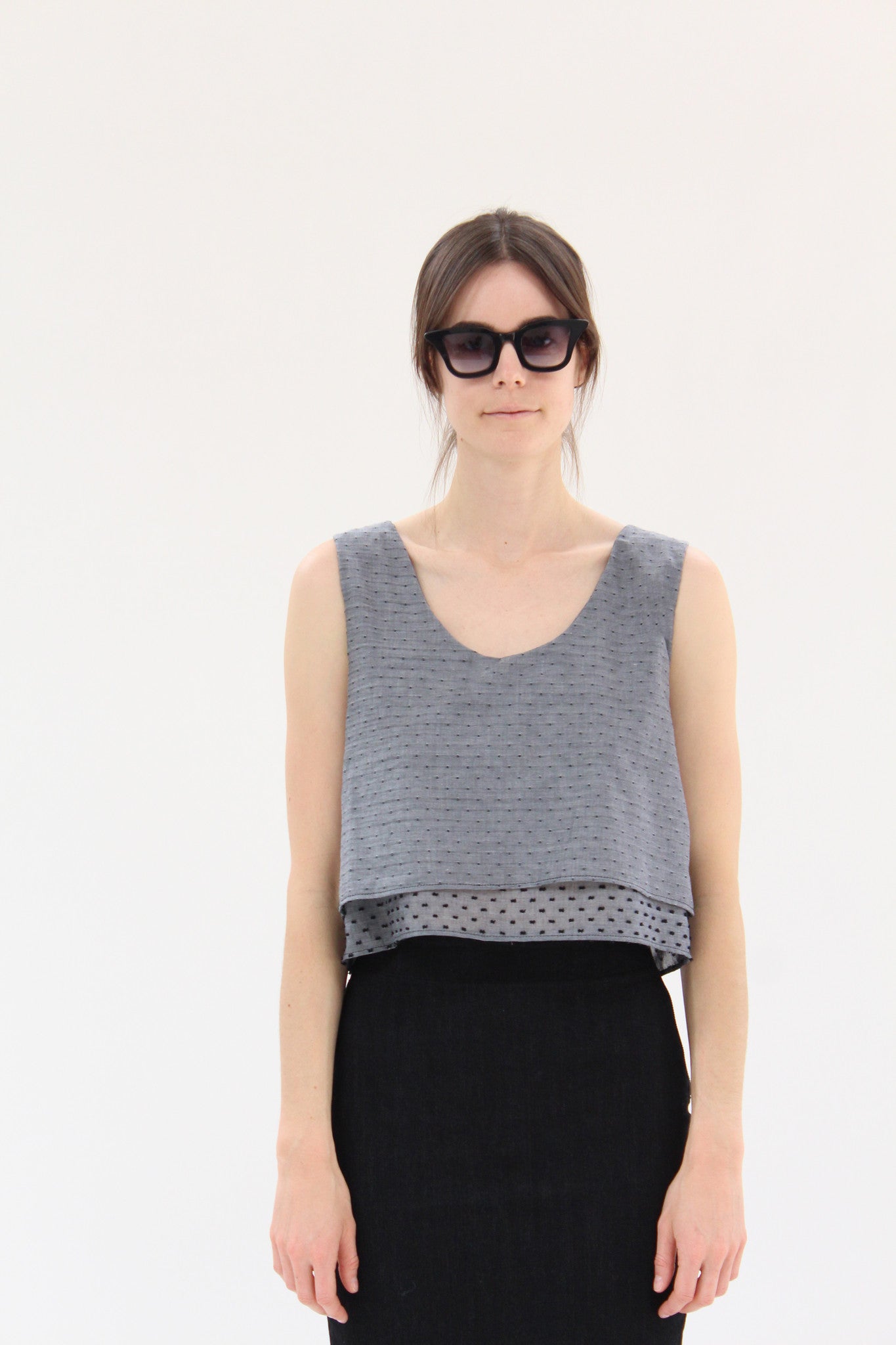 Lina Rennell Crop Double Layer Tank Swiss Dot