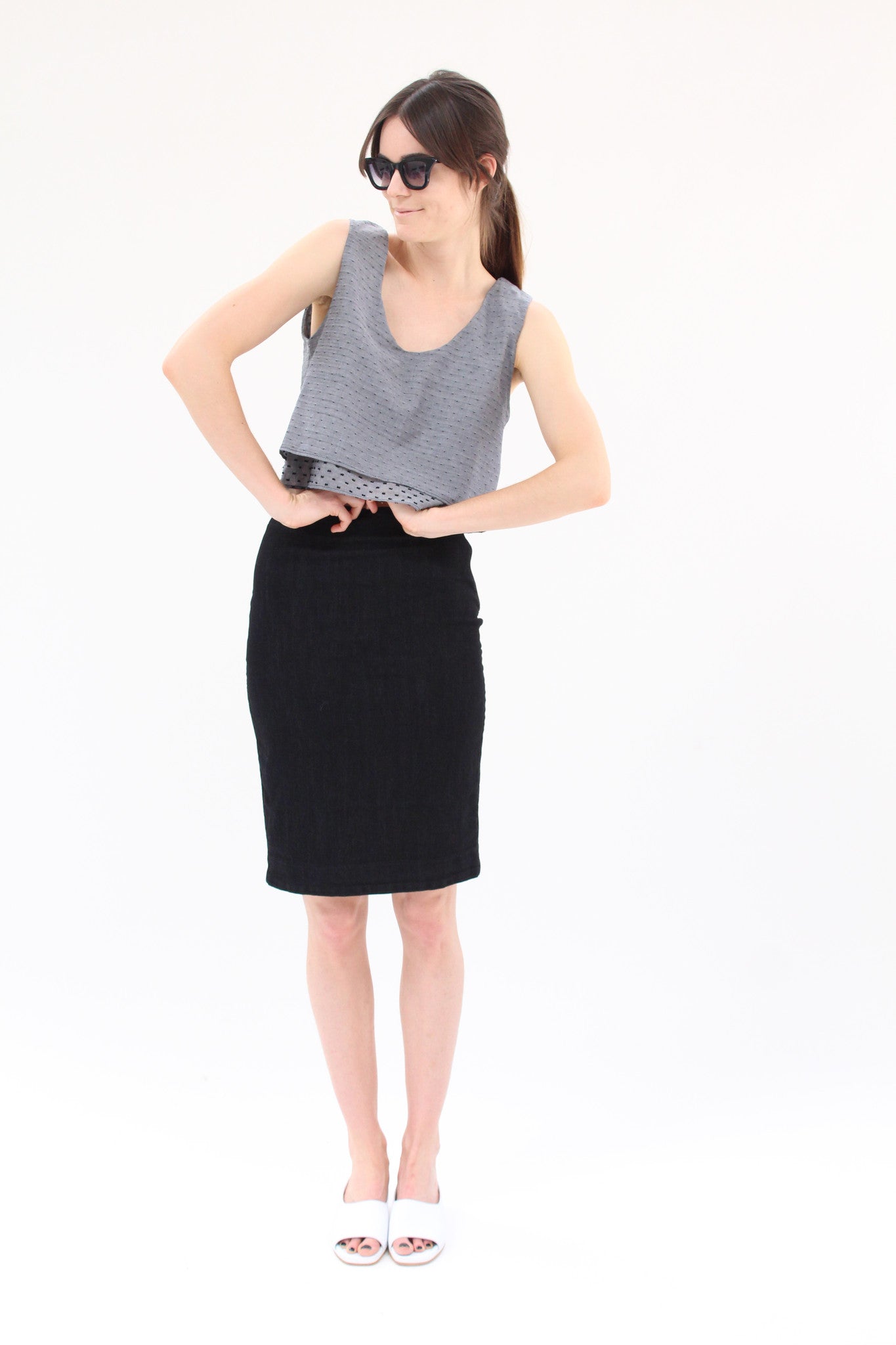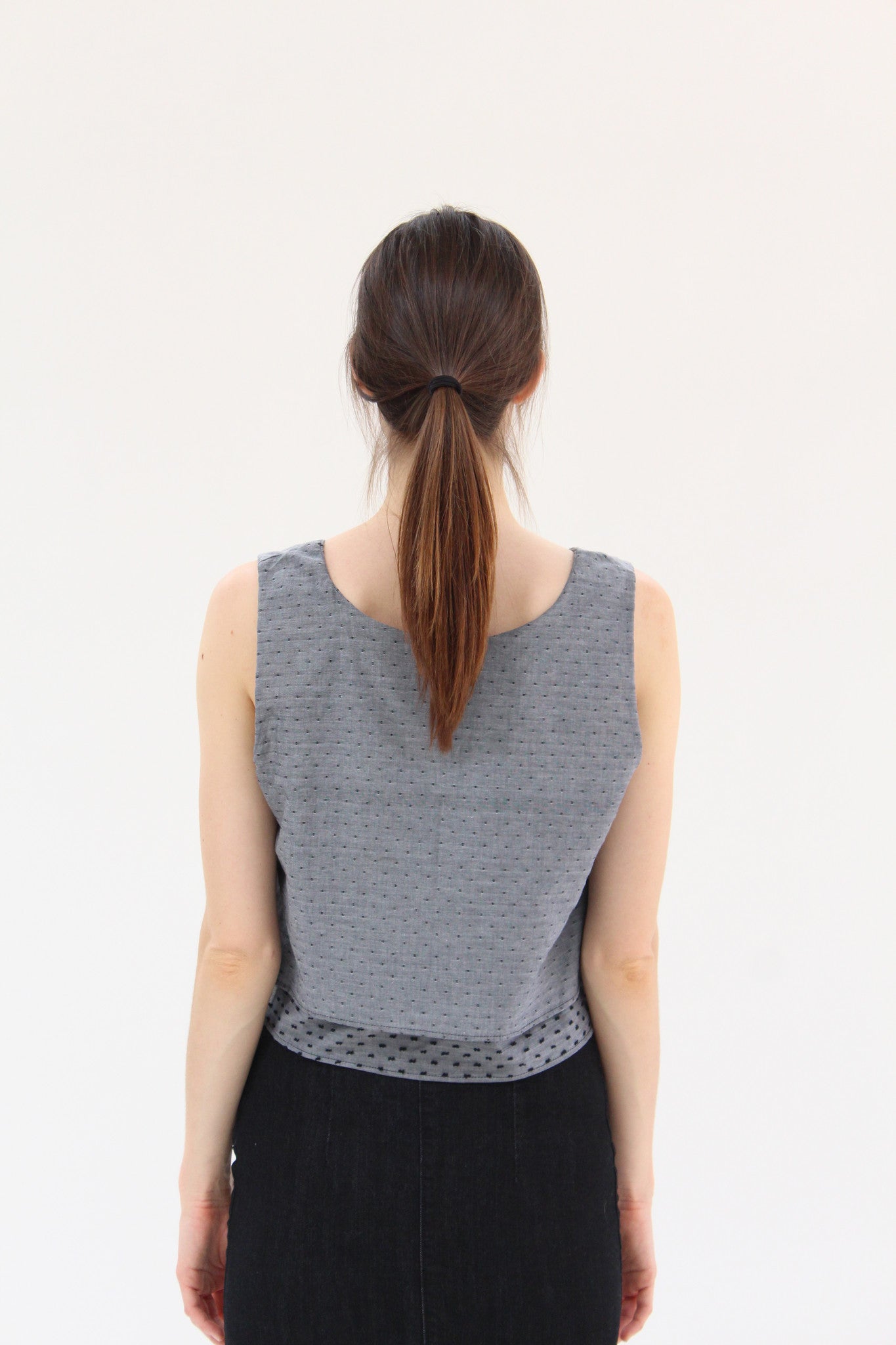Crop double layer swiss dot woven cotton tank. Perfectly pairs with all high waisted bottoms, like these. One size fits most.