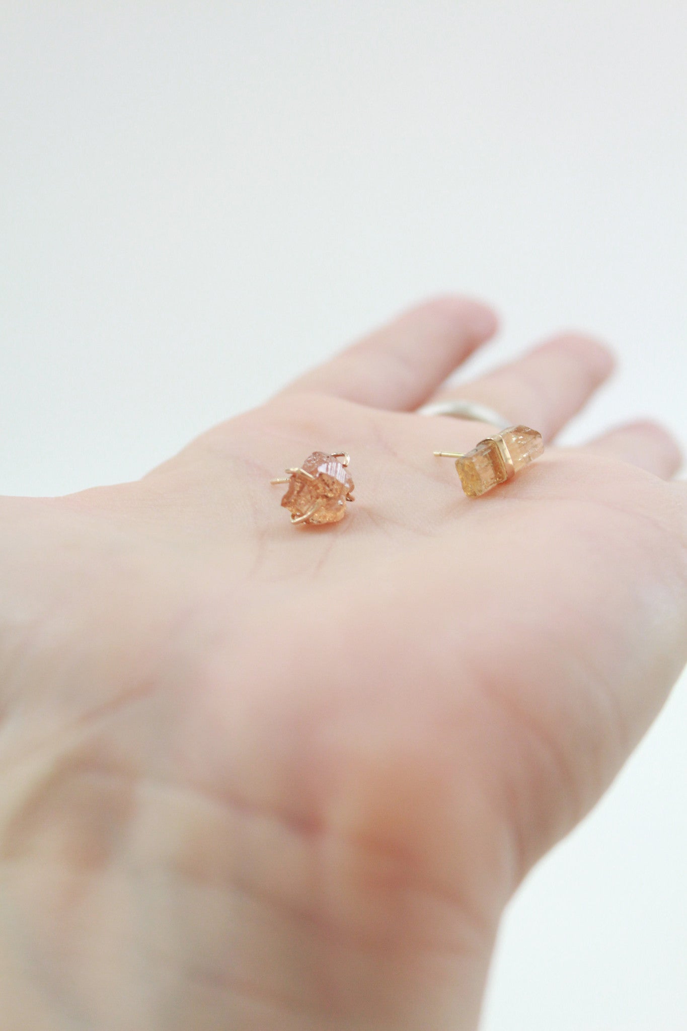 The combination of garnet and topaz imbues the wearer with emotional stability and sensuality. Recycled 14 Karat Gold. Raw Garnet Crystal, 10mm. Imperial Topaz Stick, 5x18mm