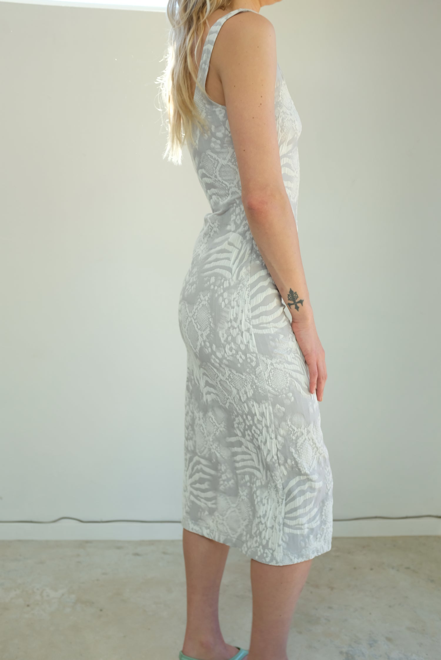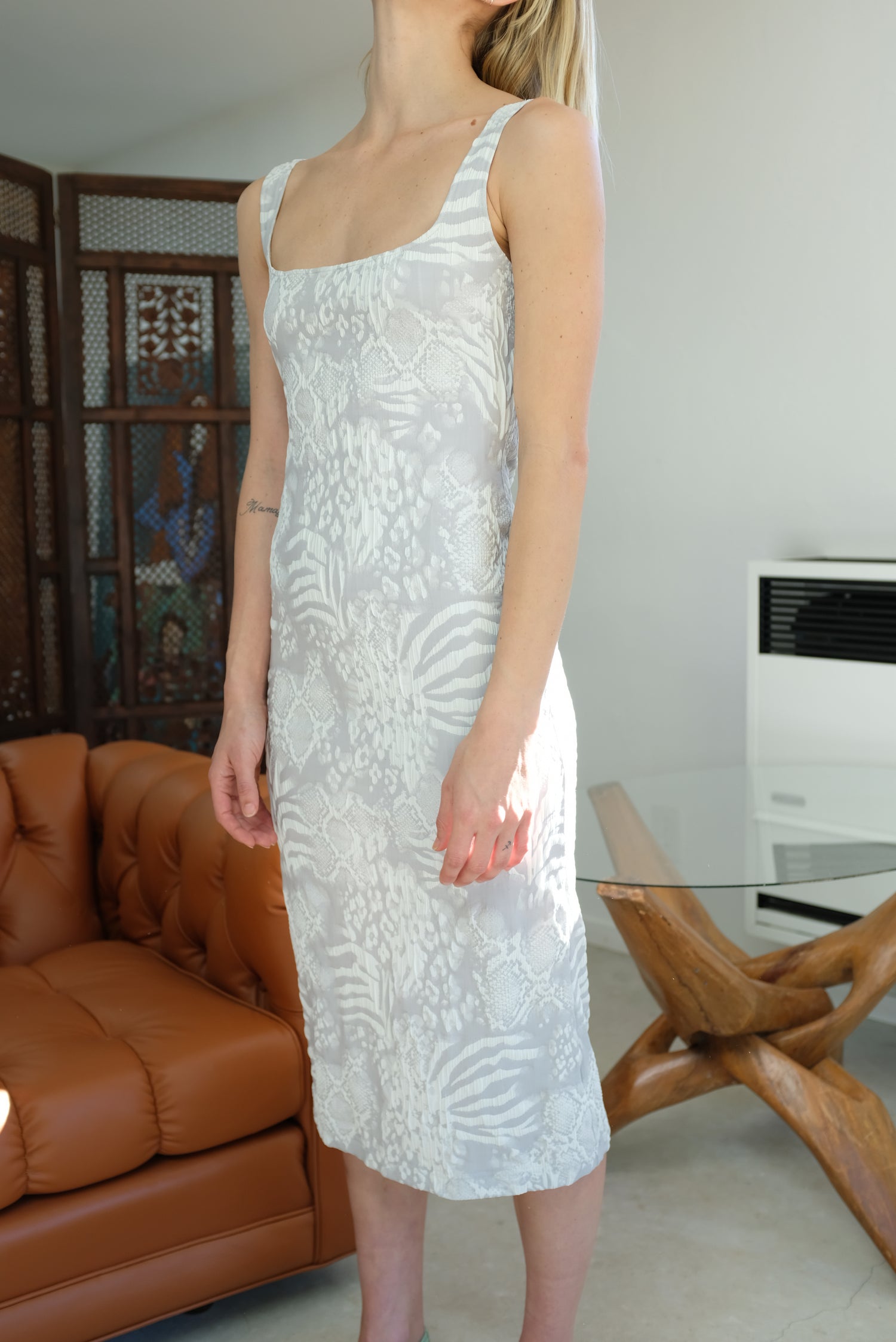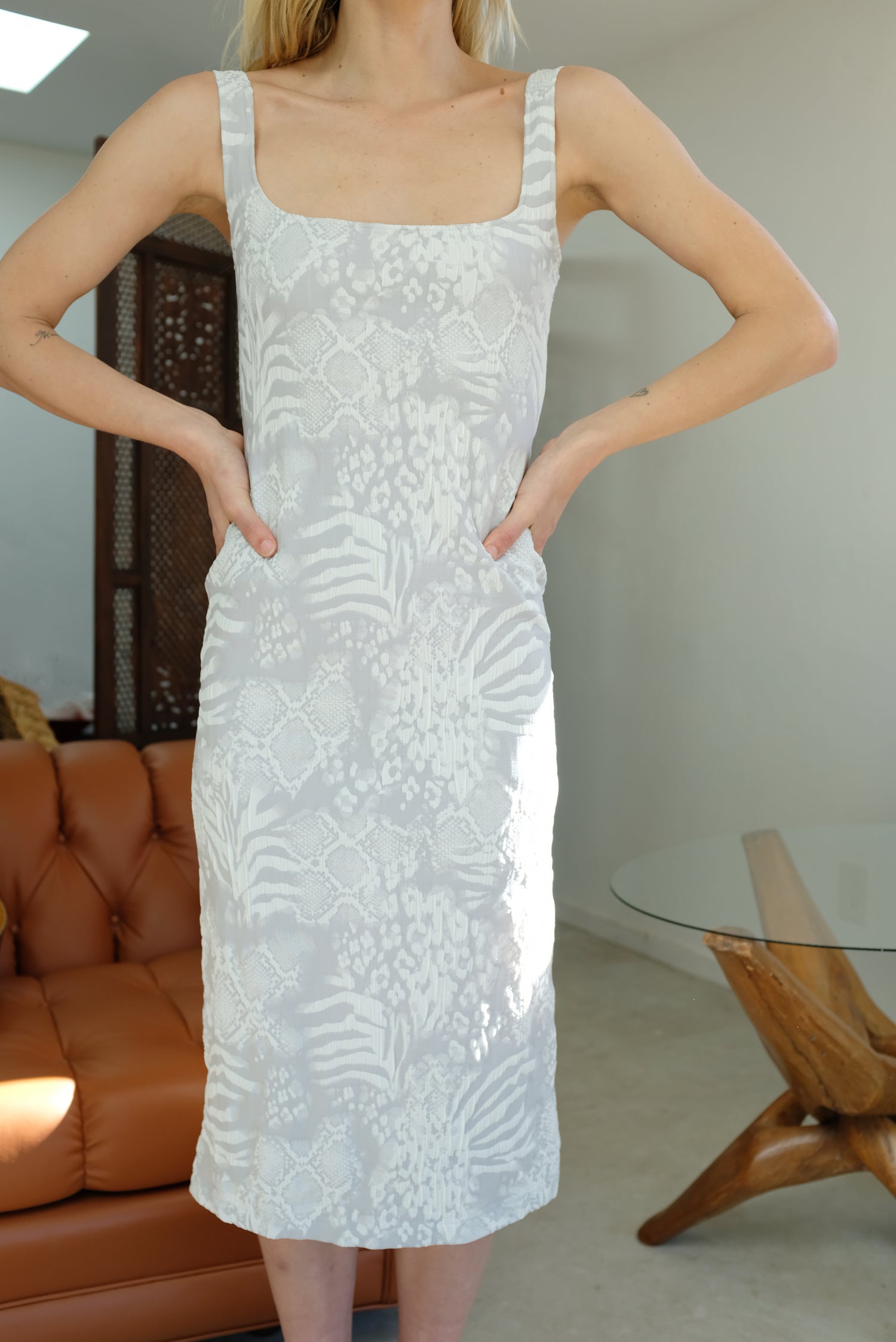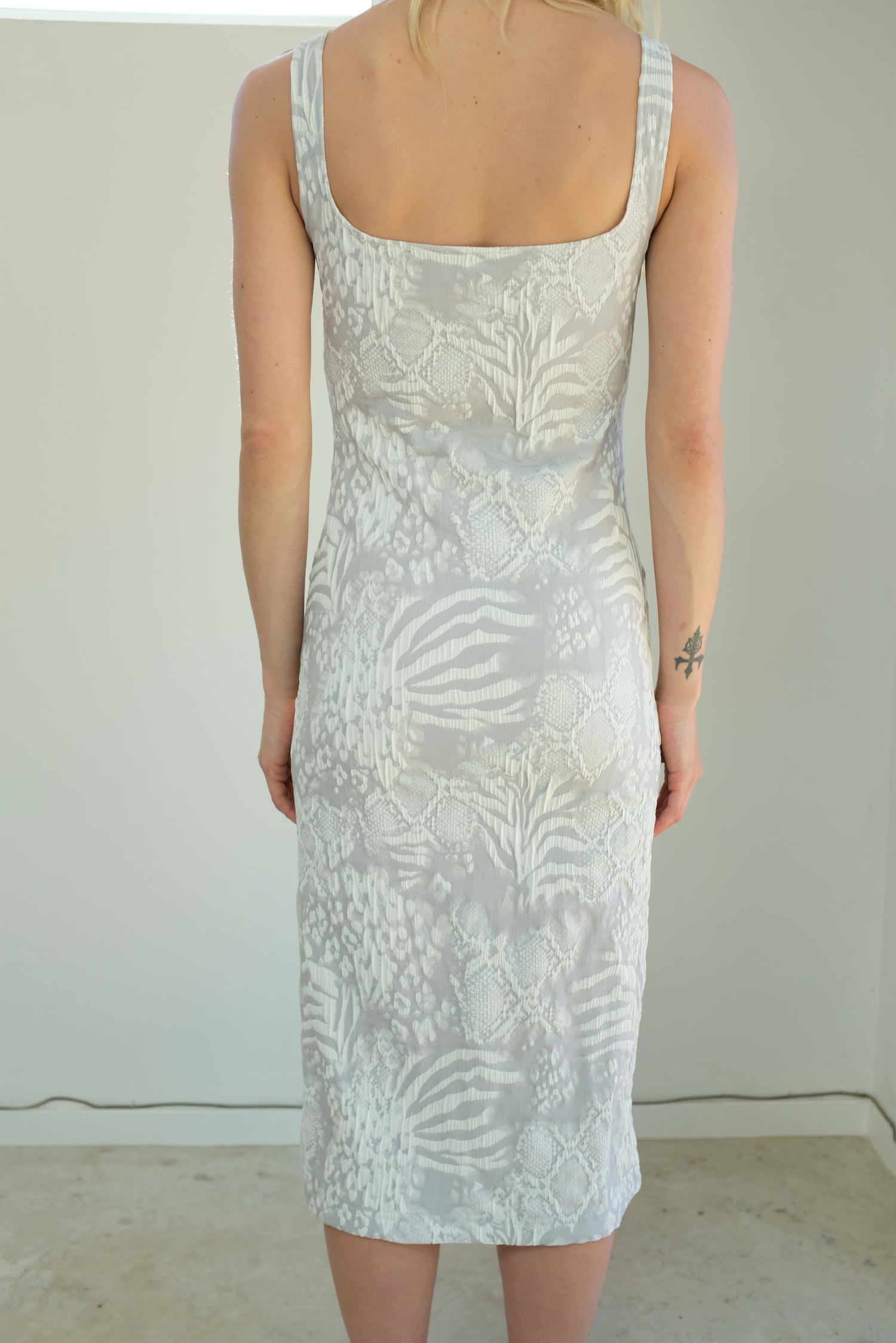 Best selling dress in new fabric. Fitted sleeveless dress with square neckline. Nice stretch.