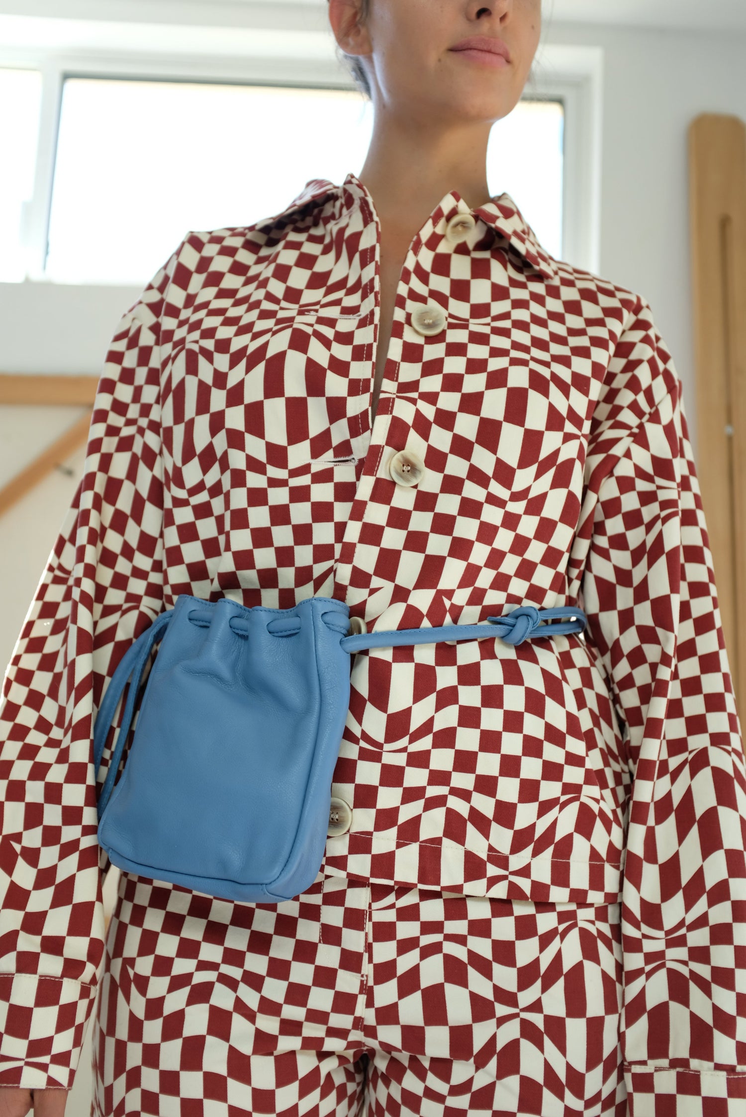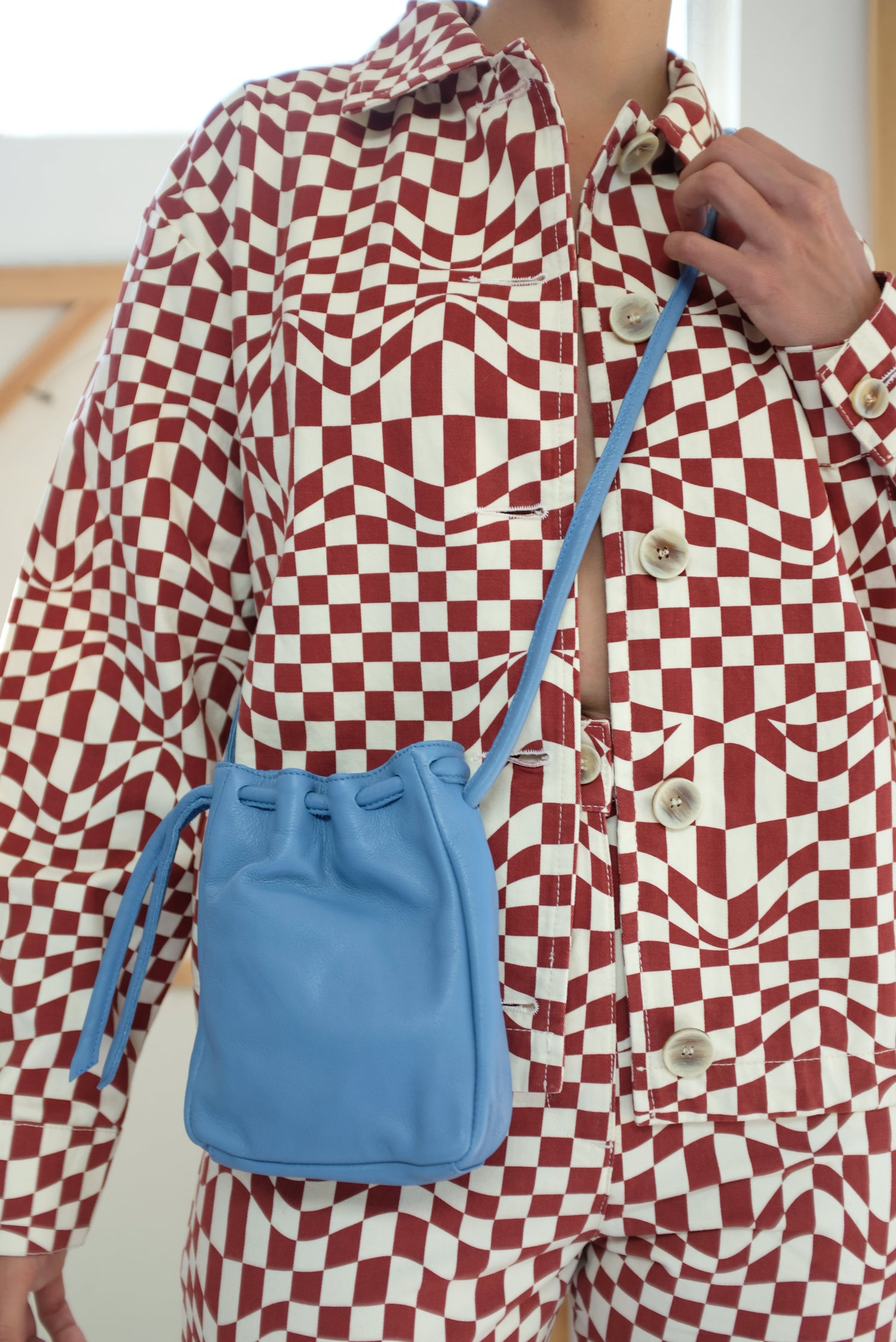 Perfect leather bag for a night out! Fits all the essentials including phone, wallet, and keys. Can be worn as a bum bag, handbag, or crossbody. Adjustable strap with knots. 100% Leather.
