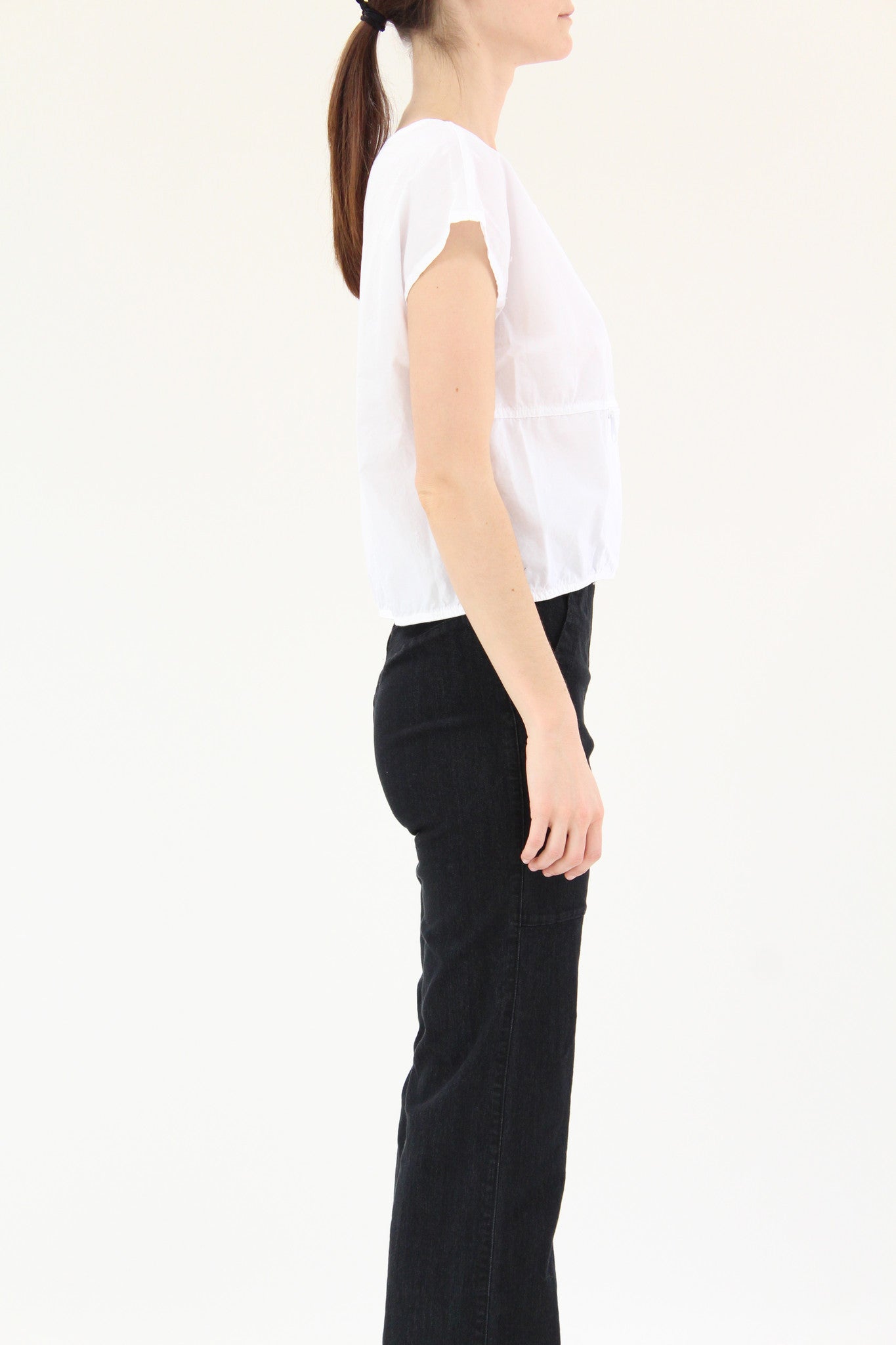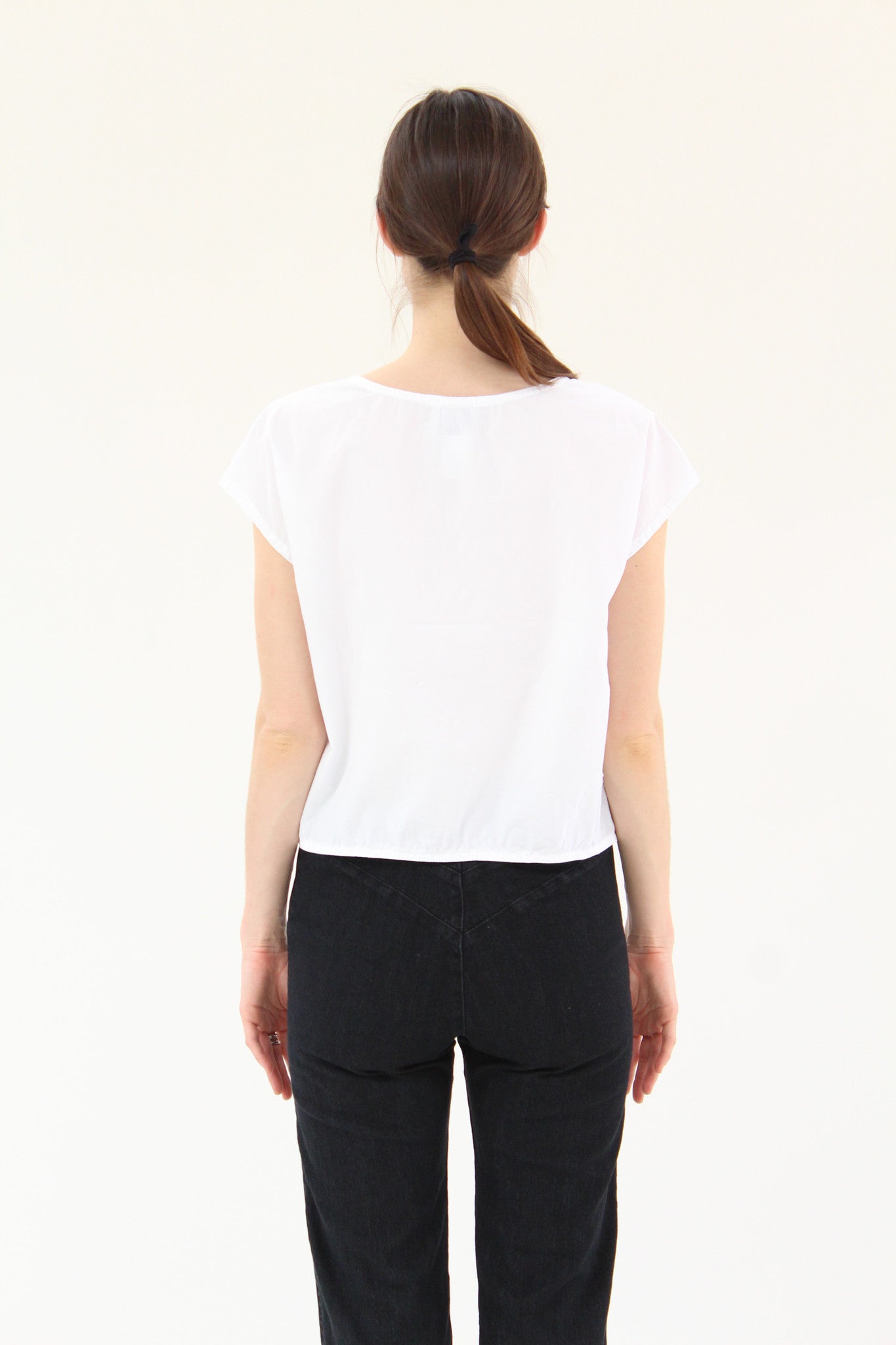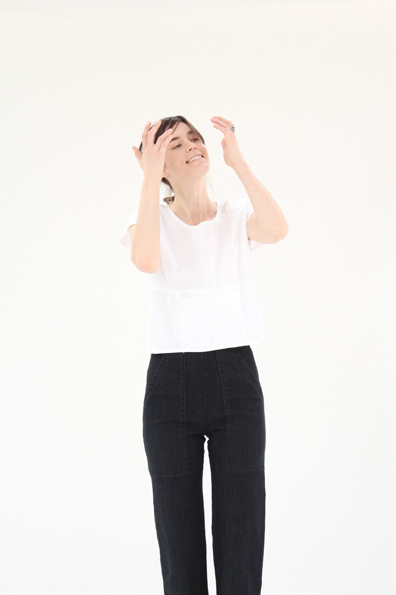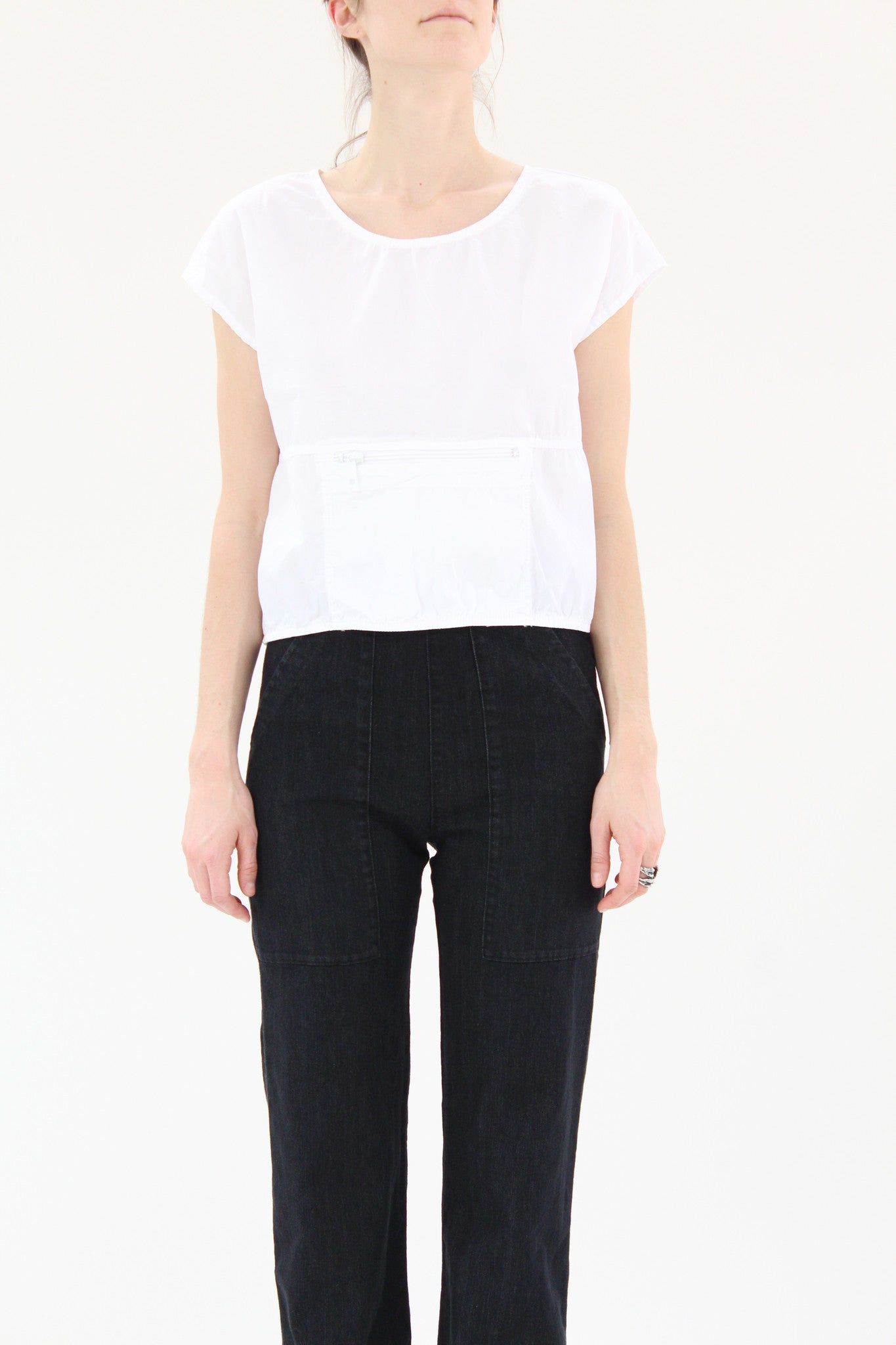 100% organic cotton cropped top, zippered pocket front detail that's perfect for stashing your credit card and ID. Scoop neck, cap sleeves and ideal for pairing with a pencil skirt and denim jacket. Runs true to size.